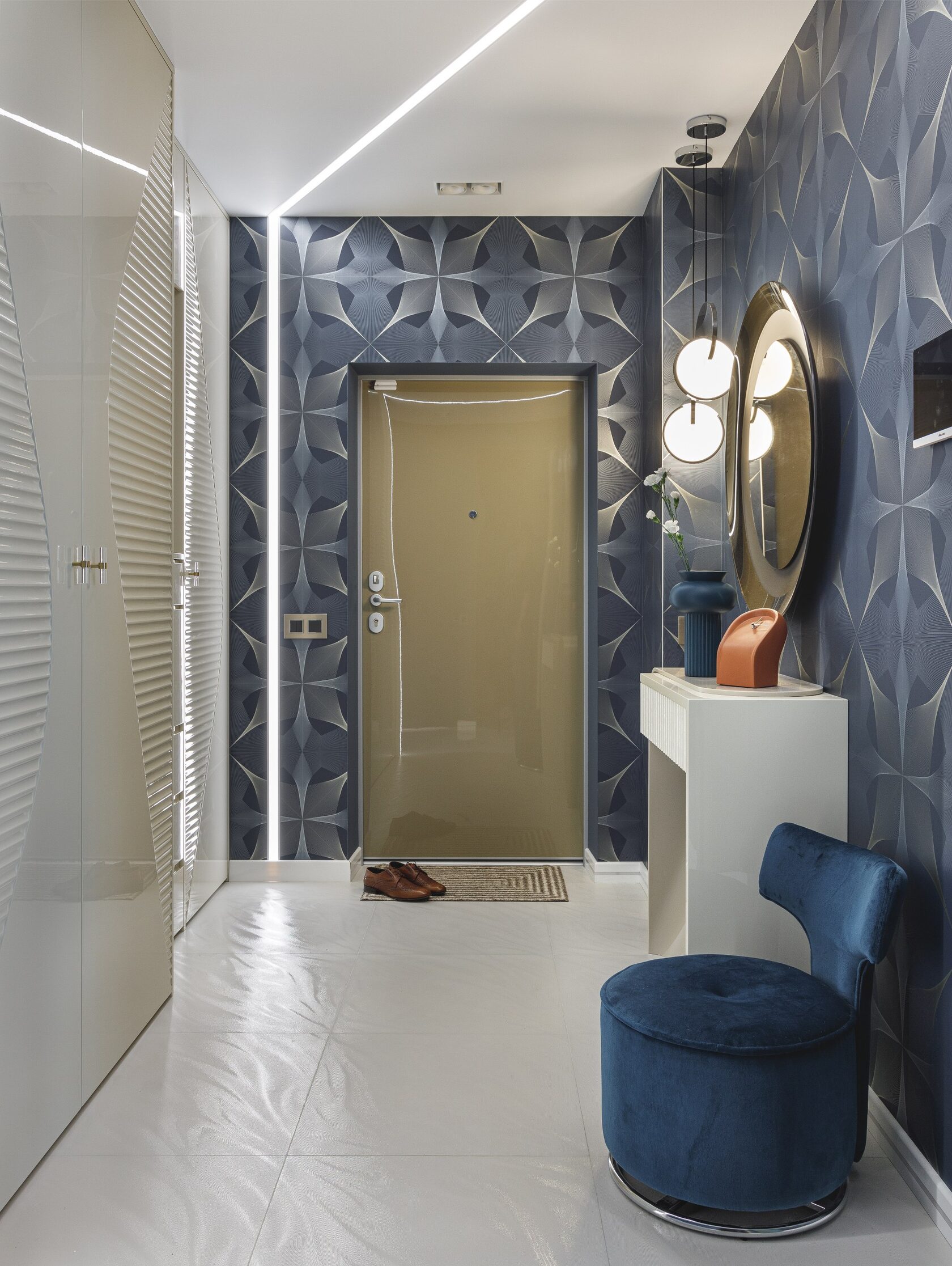 Квартира площадью 114 м² создавалась для семейной пары, увлечённой темой футуризма. Отправной точкой для проекта стала фраза заказчика: «Хочу интерьер как в фильме “Пассажир”». Этот запрос определил направление всей концепции — современное, технологичное, но при этом эмоционально насыщенное пространство.