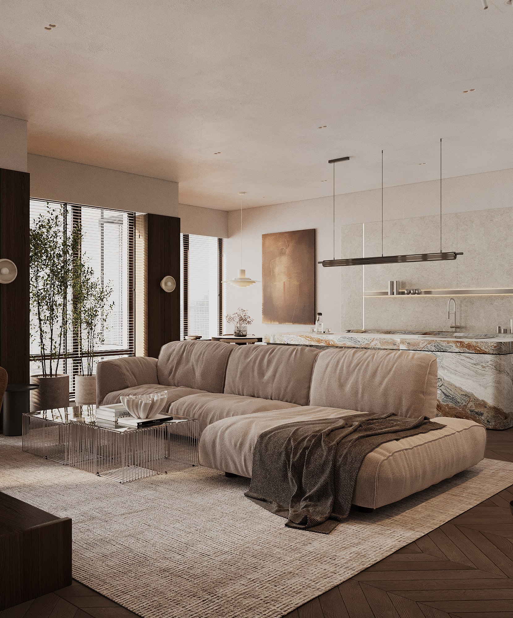 Проект посвящён естественному свету, простоте линий и функциональности. Интерьер наполнен воздухом, где каждый элемент играет свою роль, а свет становится главным дизайнерским приёмом.