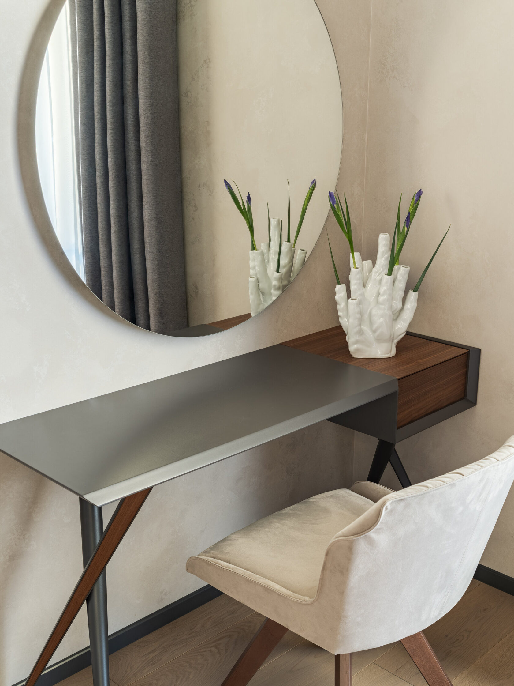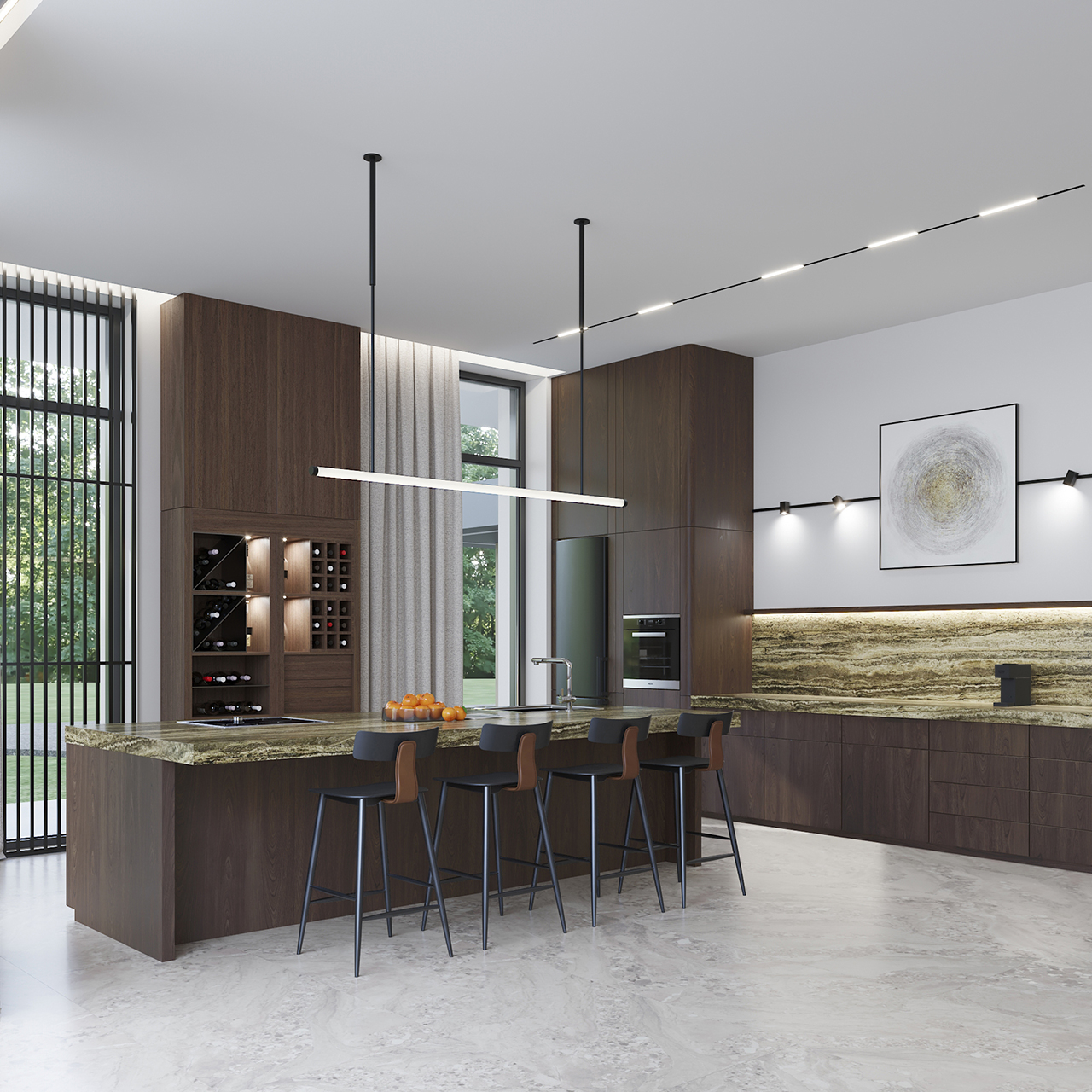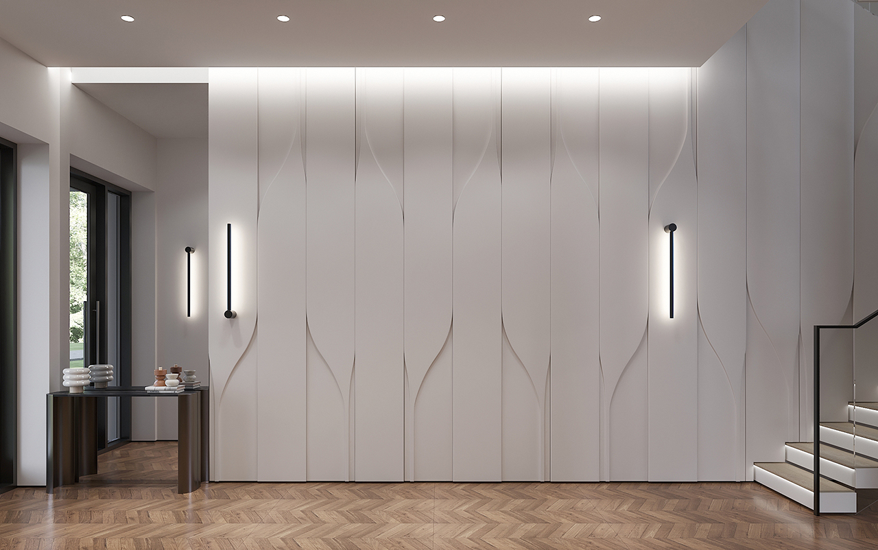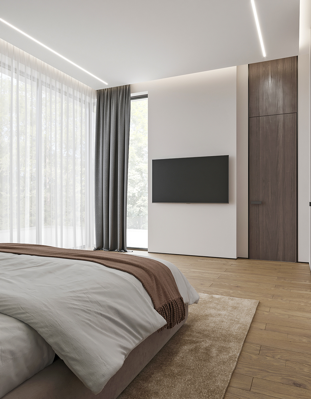 Итог: Результатом стало создание функционального и эстетически совершенного интерьера, который идеально резонирует с архитектурным замыслом и естественным контекстом. Пространство ощущается легким, открытым и приглашающим, предлагая жильцам атмосферу спокойствия и гармонии, где каждая деталь подчеркивает целостность проекта.