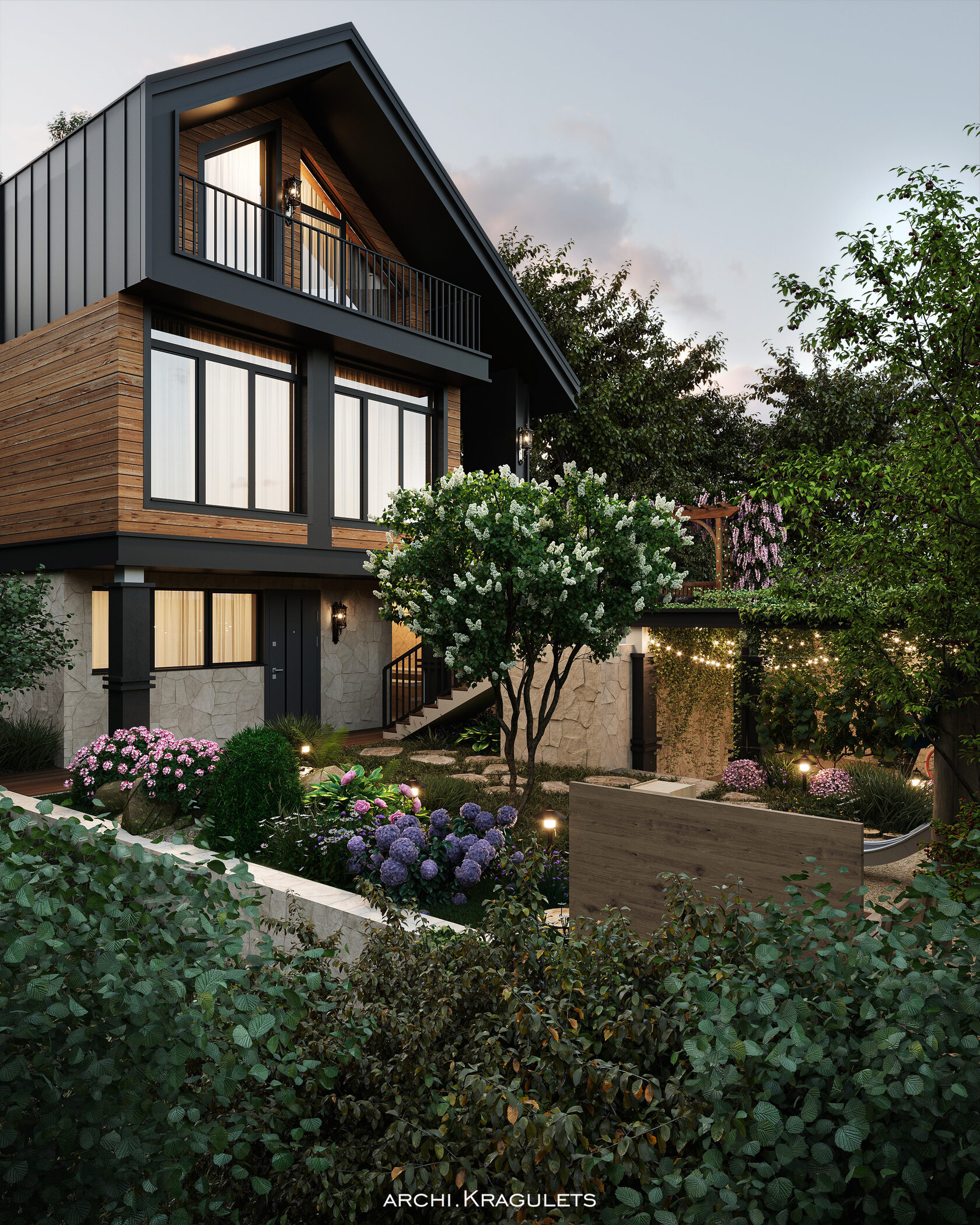 Итог: Результатом стал не просто дом, а живая структура, которая функционирует как продолжение лесной экосистемы. Этот проект — идеальное решение для ценителей подлинной гармонии с природой, ищущих уединение и магию загородной жизни в пространстве, которое словно дышит вместе с лесом.
