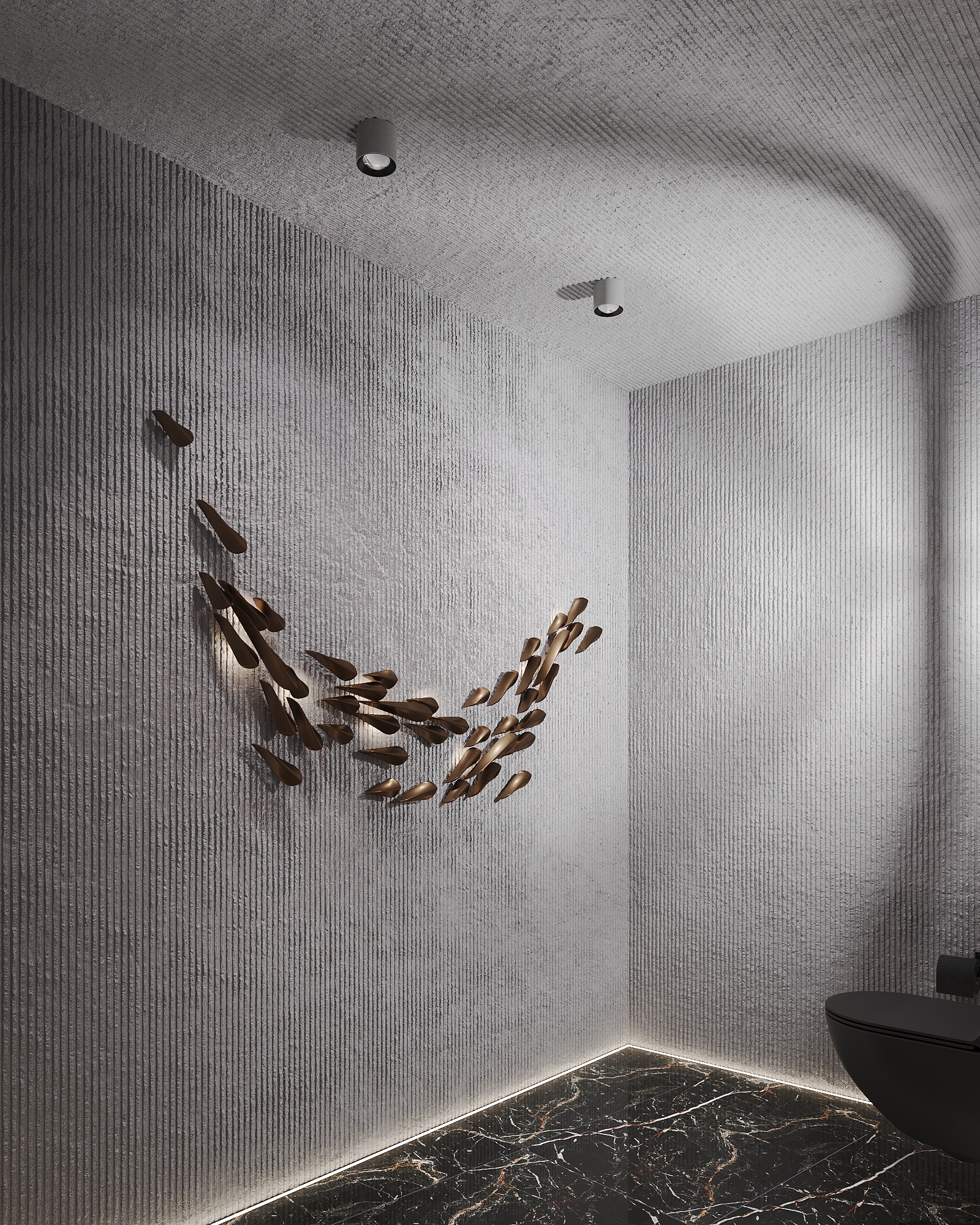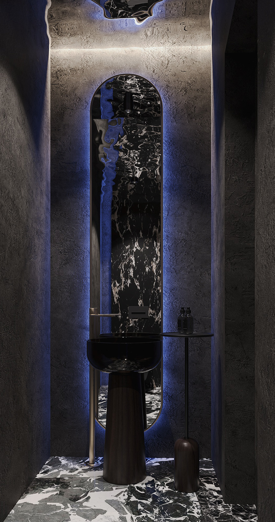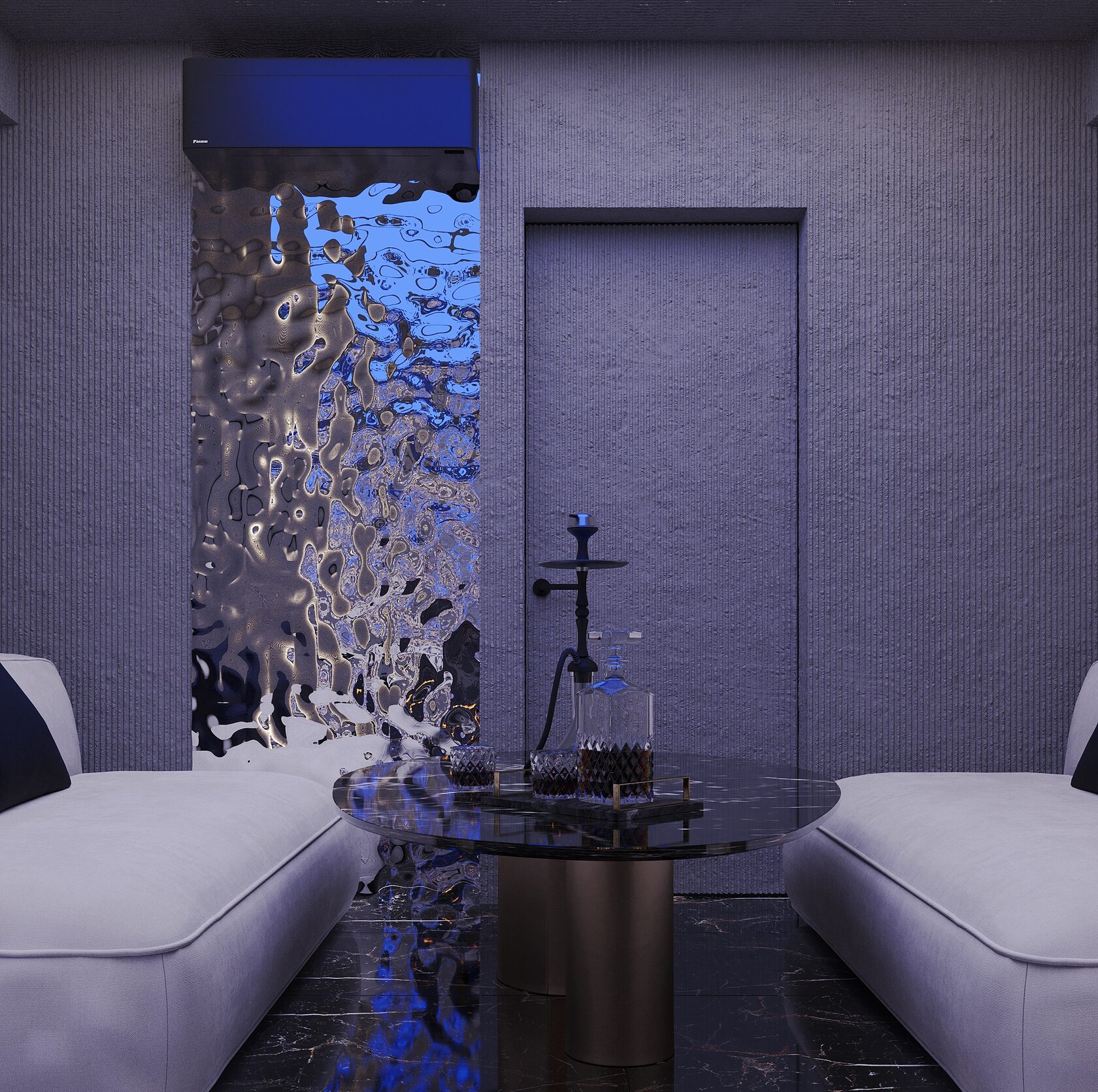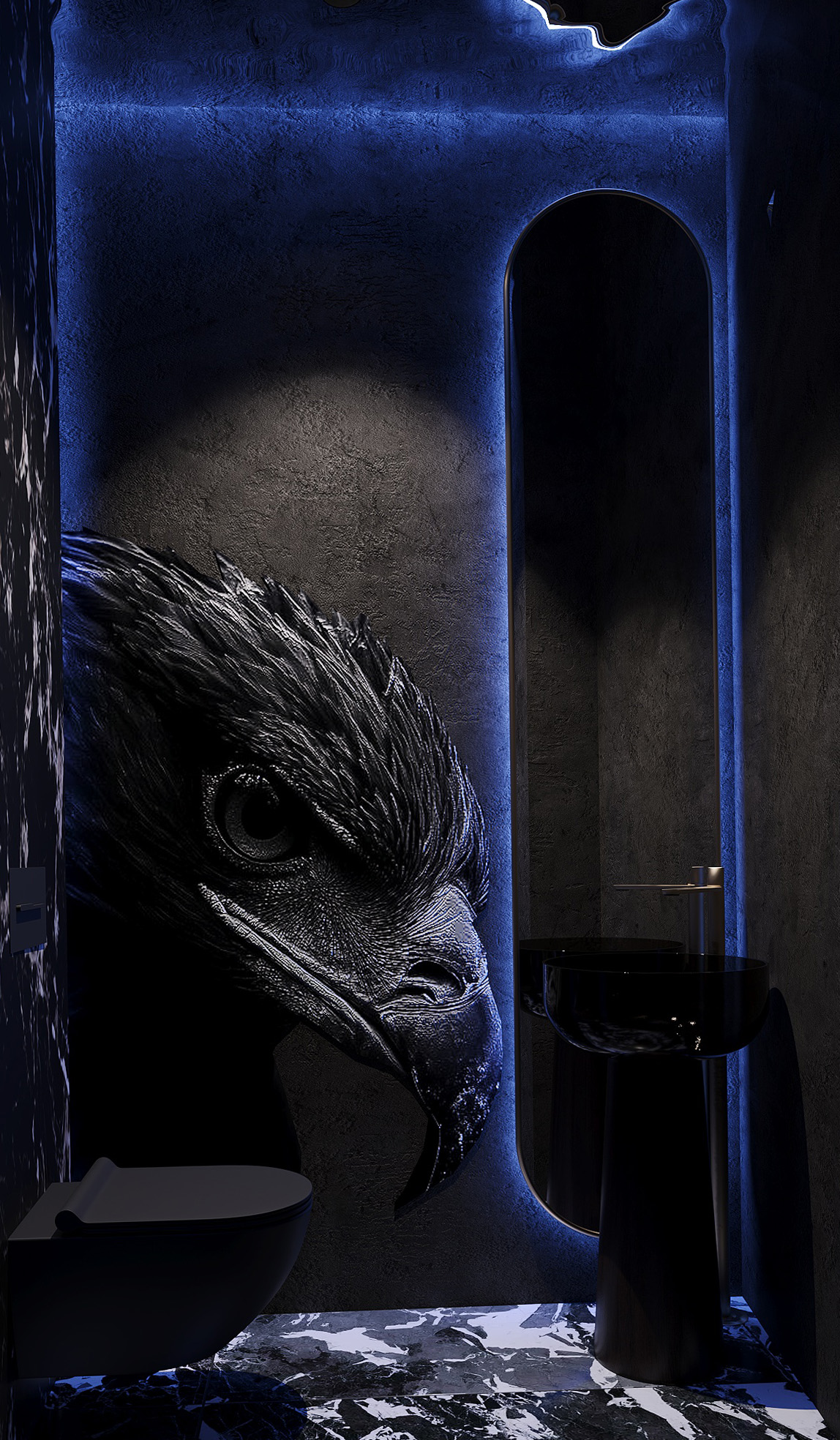 Концепция: Основная концепция проекта заключается в глубоком исследовании бионических форм, которые интегрированы в декор, мебель и интерьер, имитируя естественные изгибы и текстуры пустынных ландшафтов. Каждый предмет мебели и декора разработан по индивидуальному проекту, что обеспечивает абсолютную эксклюзивность и неповторимость интерьера.