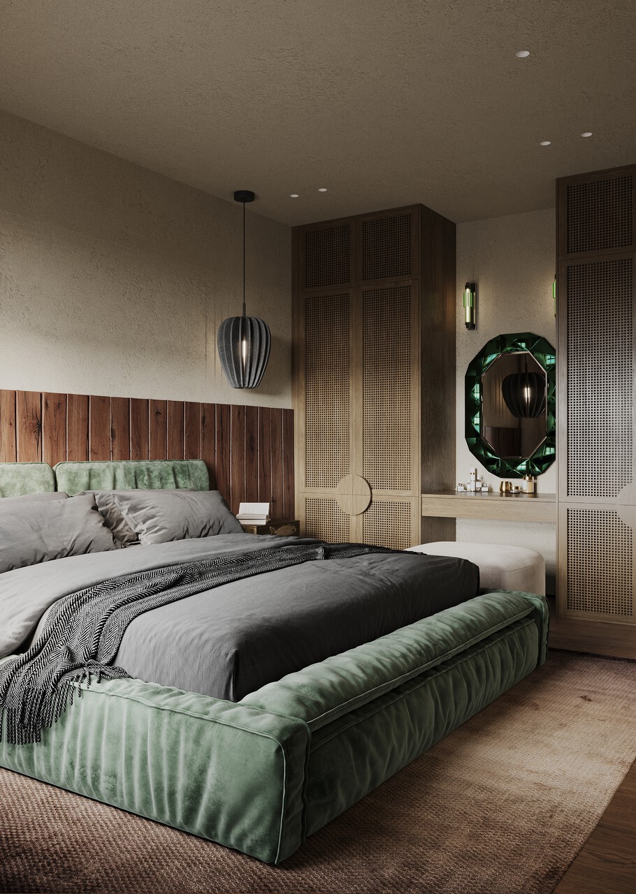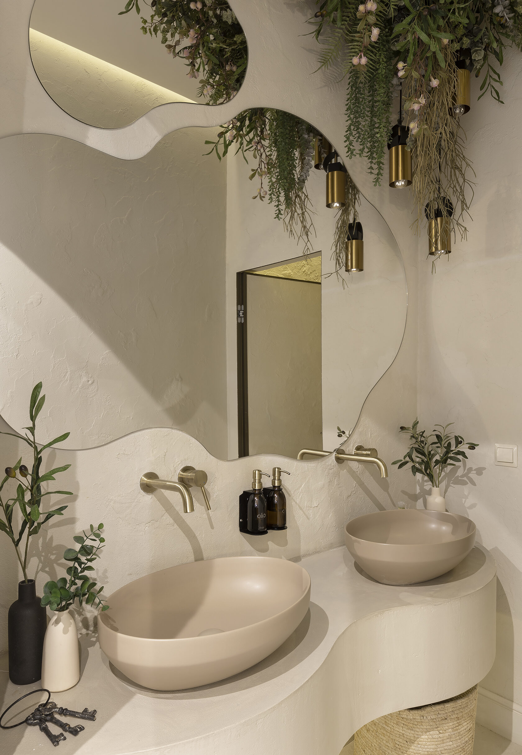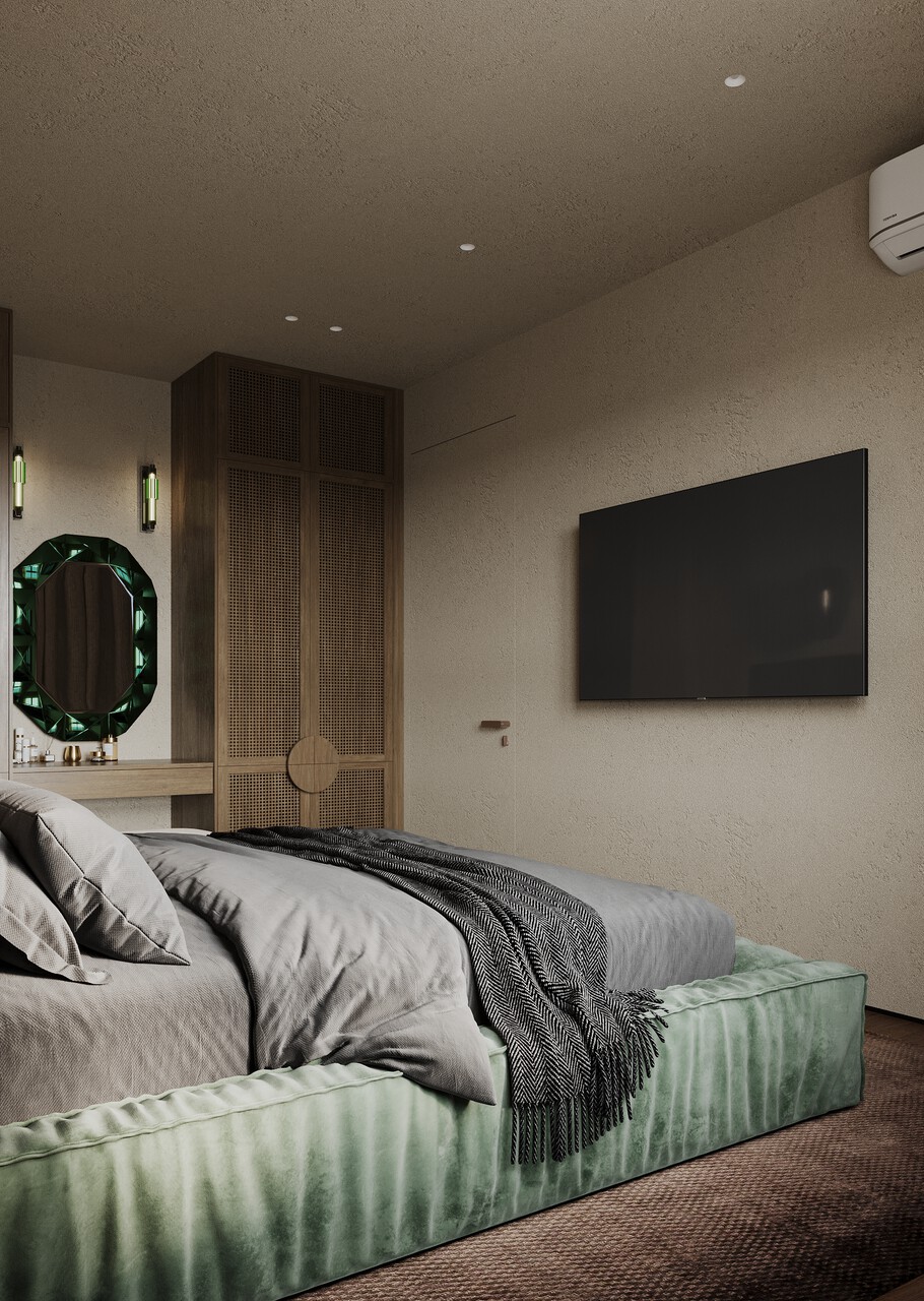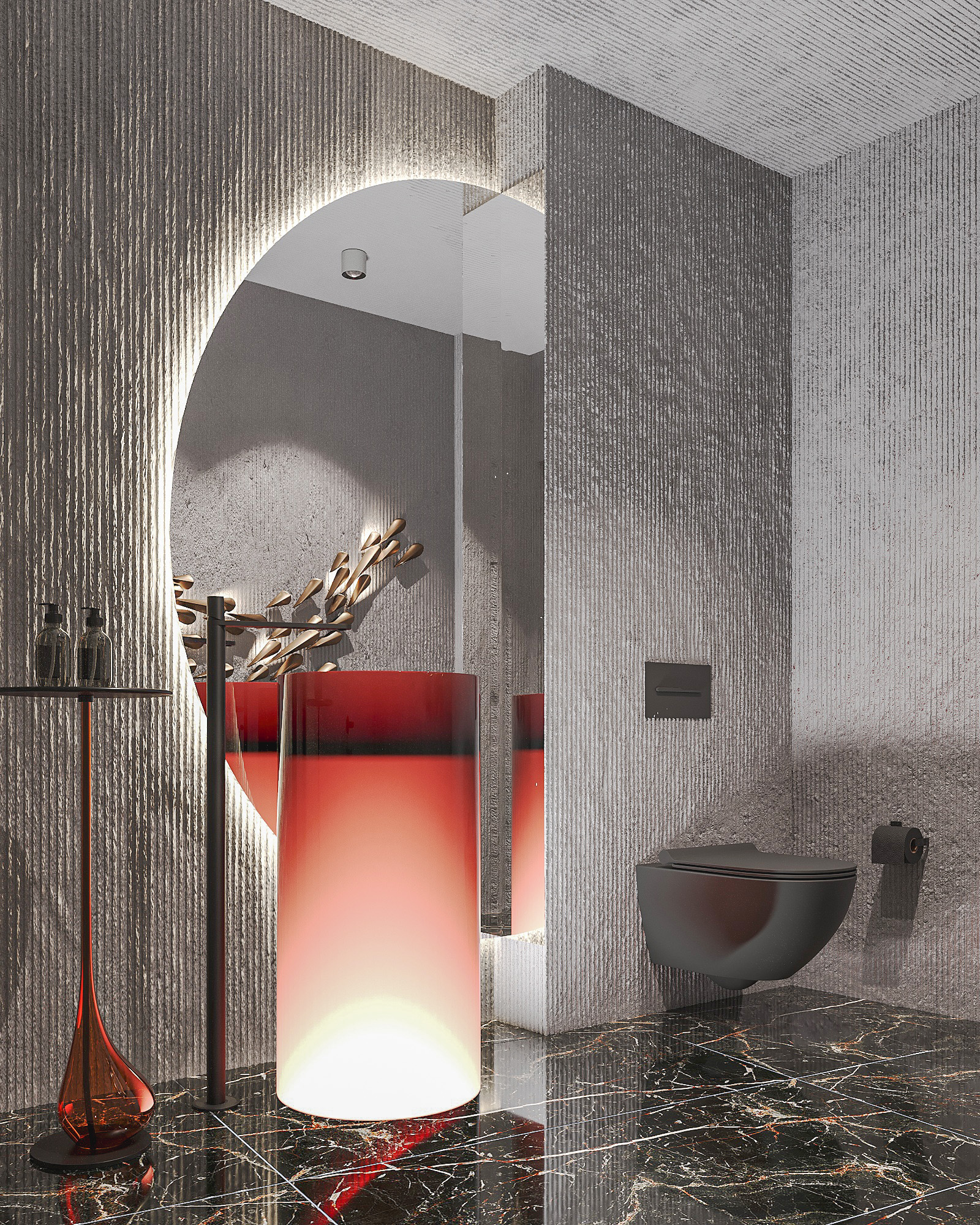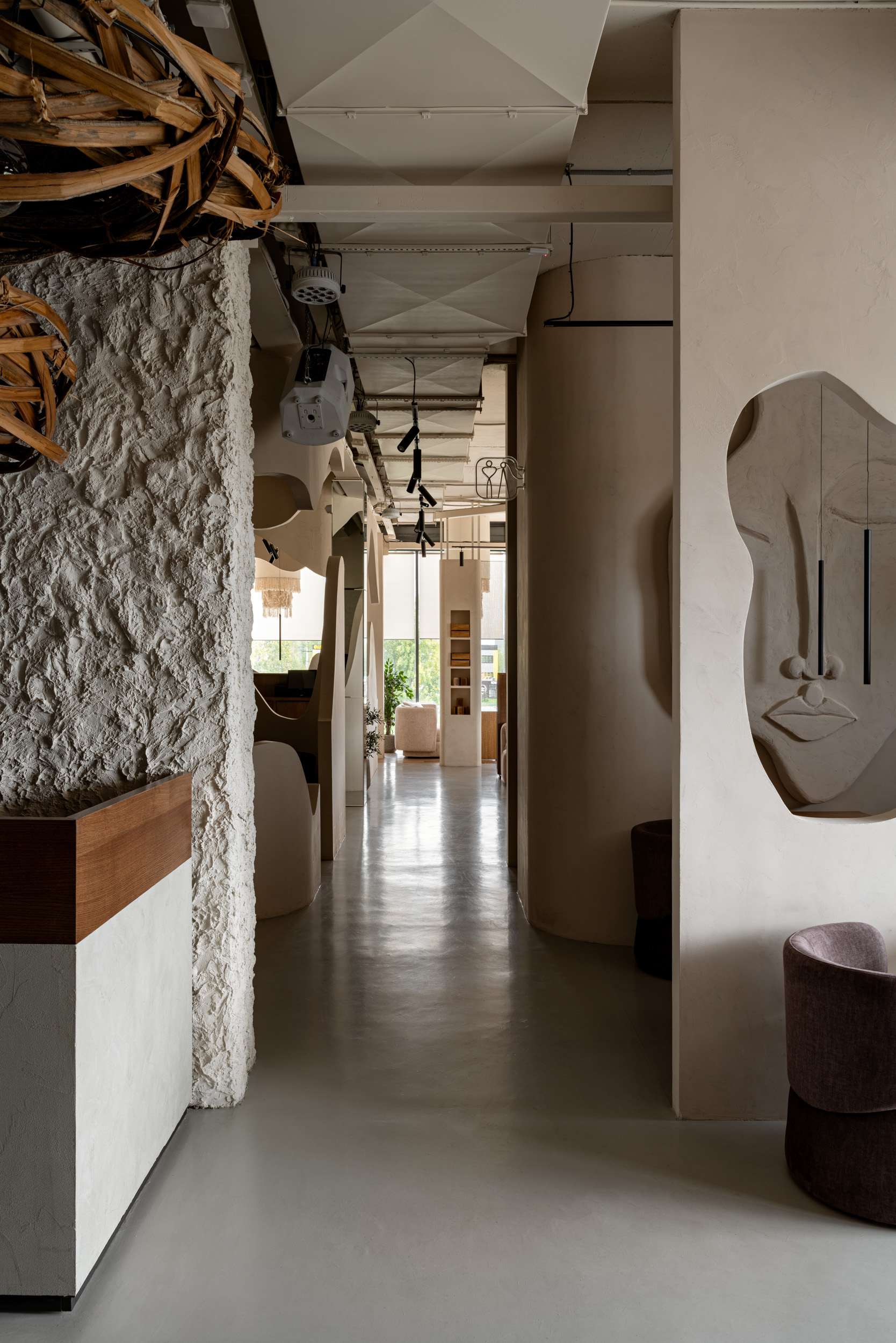 Концепция: Основная концепция проекта заключается в глубоком исследовании бионических форм, которые интегрированы в декор, мебель и интерьер, имитируя естественные изгибы и текстуры пустынных ландшафтов. Каждый предмет мебели и декора разработан по индивидуальному проекту, что обеспечивает абсолютную эксклюзивность и неповторимость интерьера.