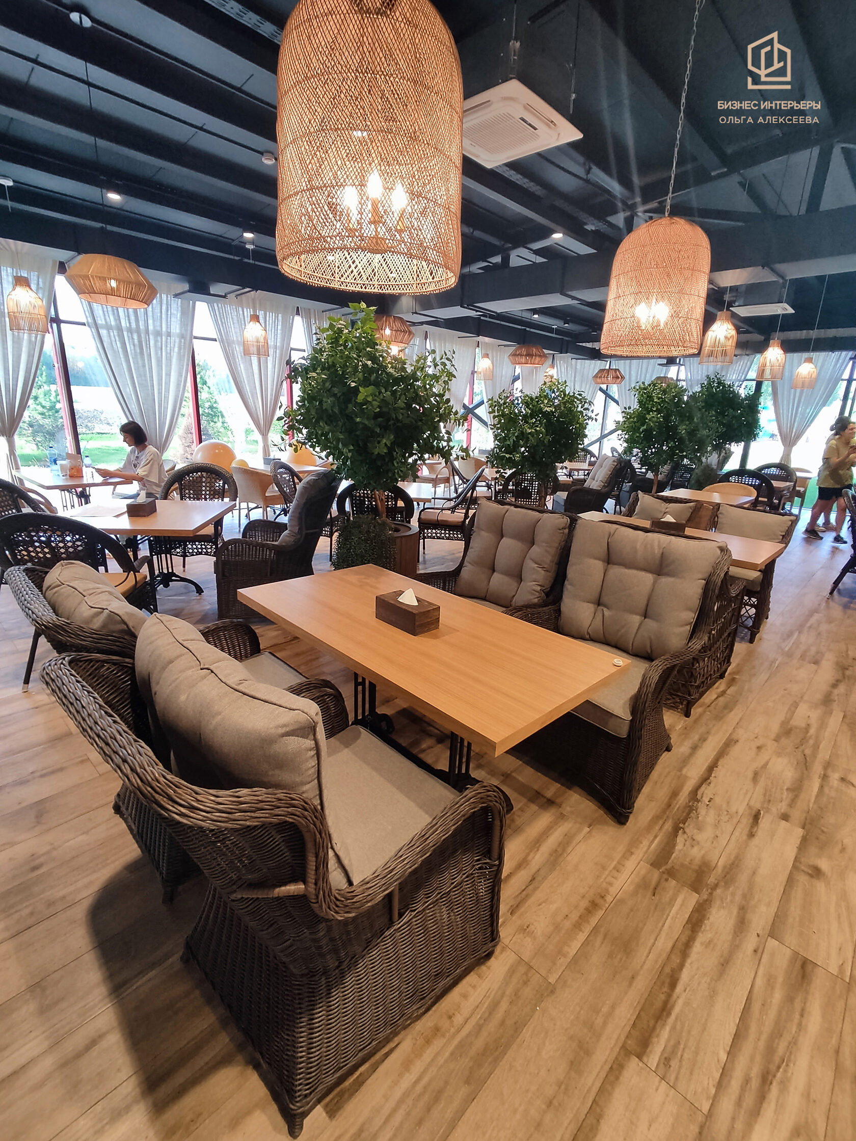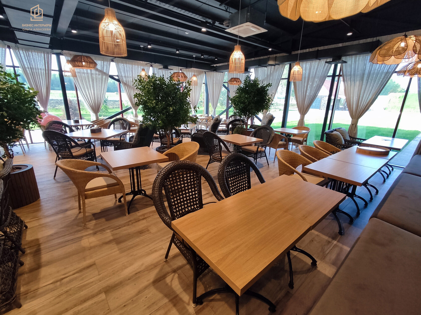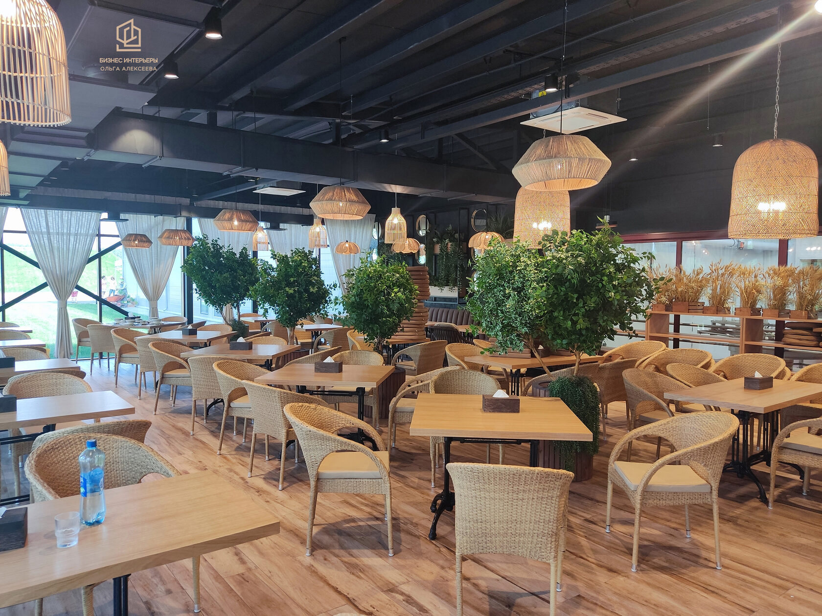 Итог: В итоге создан не просто ресторанный интерьер, а выразительный и эффективно работающий инструмент, который усиливает бизнес-философию агрокомплекса. Проект успешно транслирует ценности натуральности и ремесла, формируя уникальную атмосферу, притягивающую гостей и стимулирующую их возвращаться за неповторимым гастрономическим опытом.
