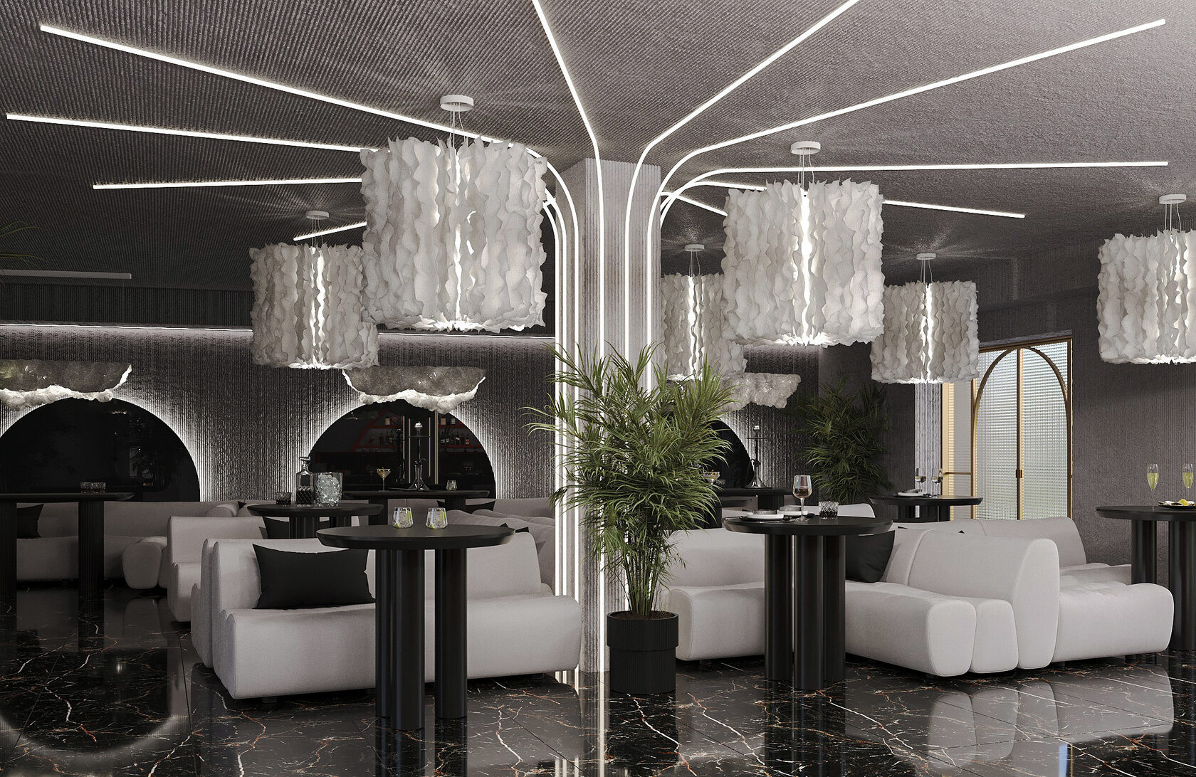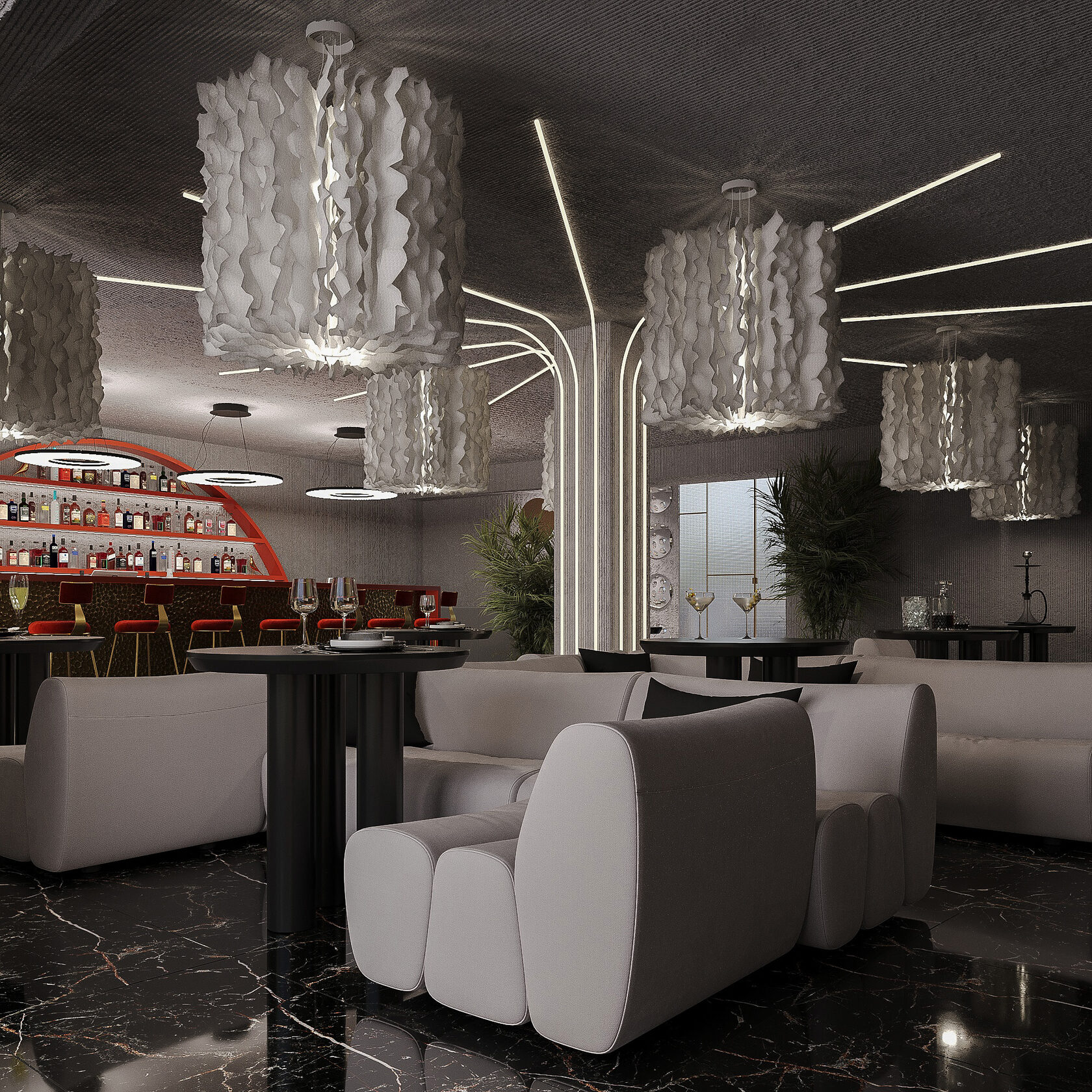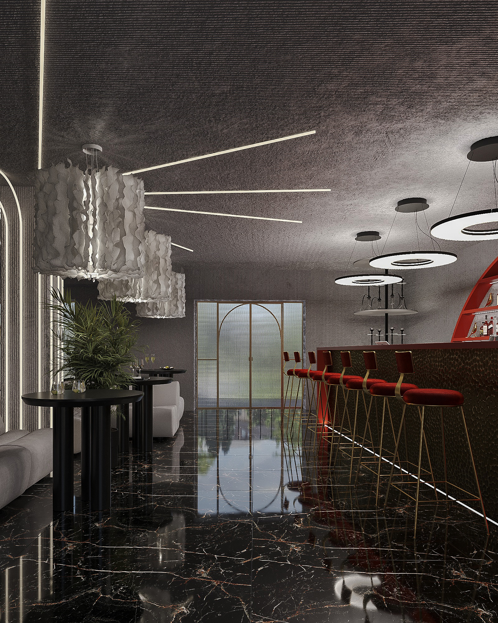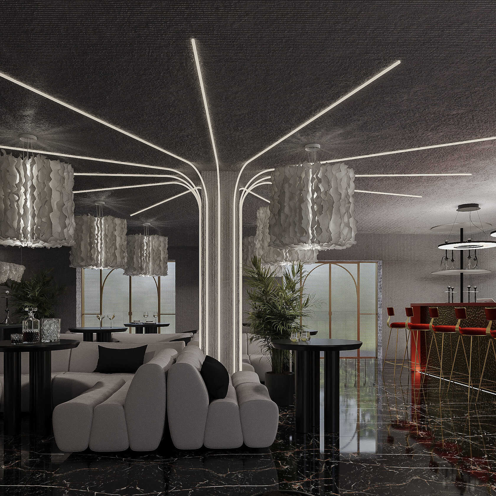 Данный проект представляет собой роскошный бар-ресторан, в котором дизайнерам была предоставлена исключительная свобода в предложении концепции, выборе материалов и мебели. Ключевой задачей было создание уникального и узнаваемого пространства, способного глубоко впечатлить посетителей и качественно отличаться от других заведений в сегменте luxury.