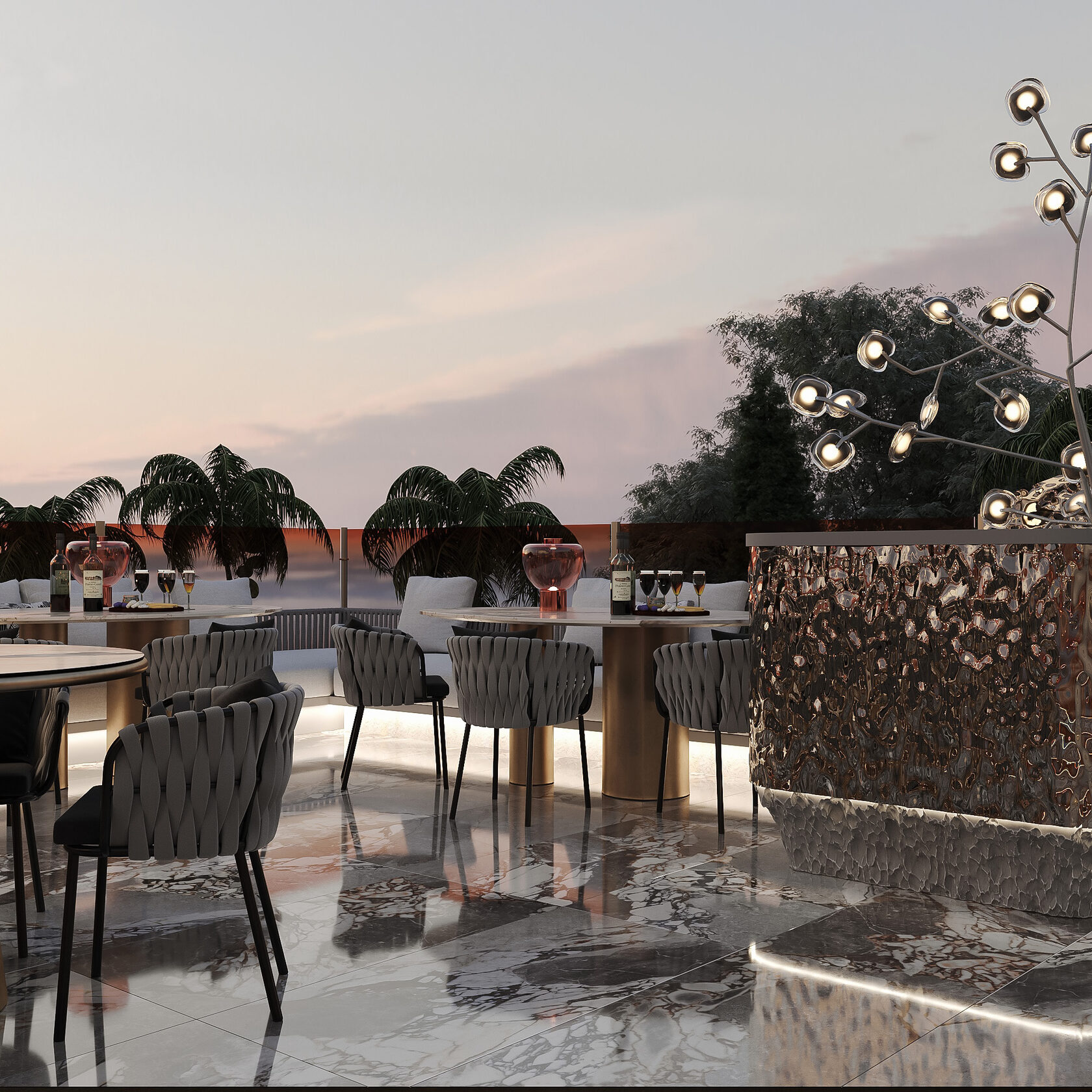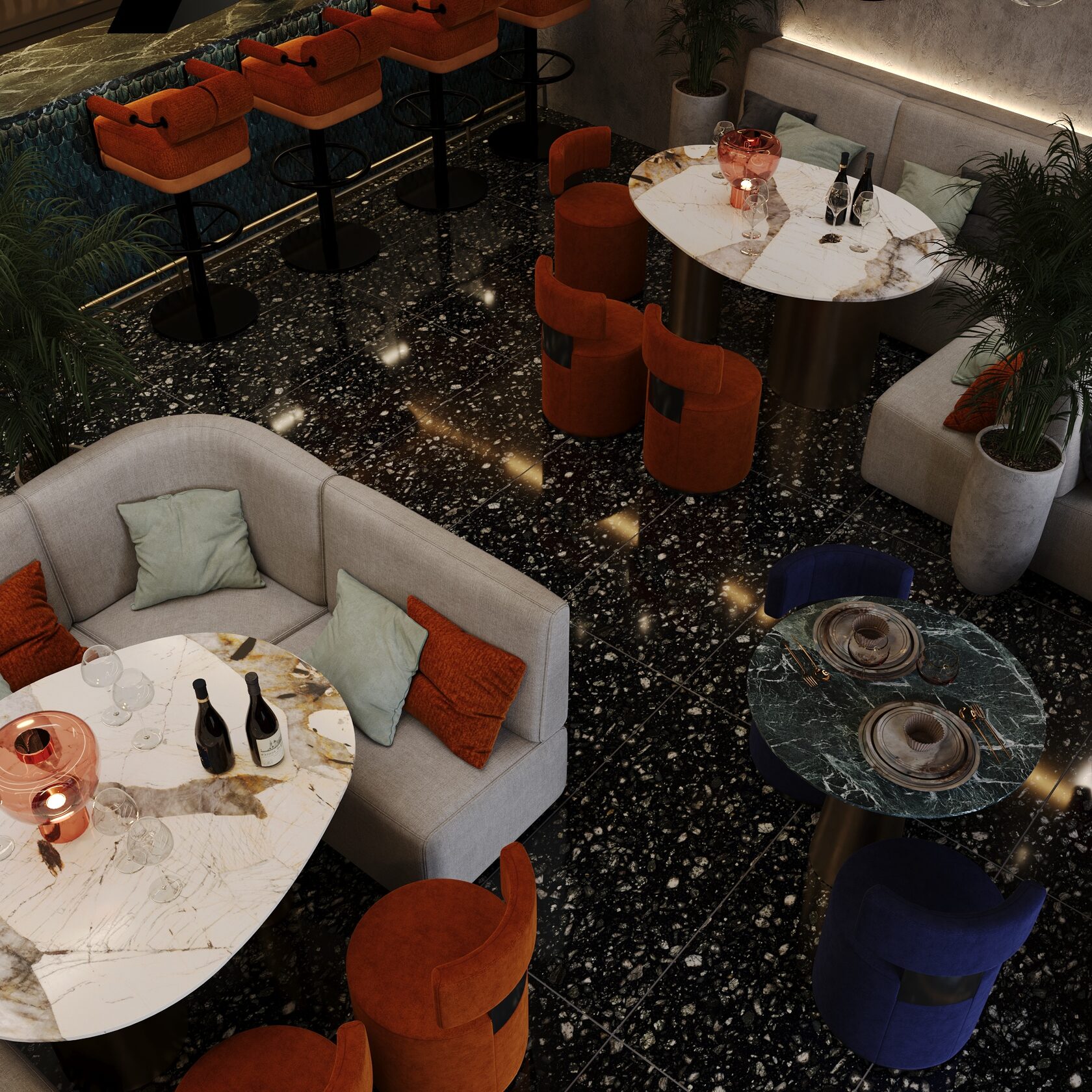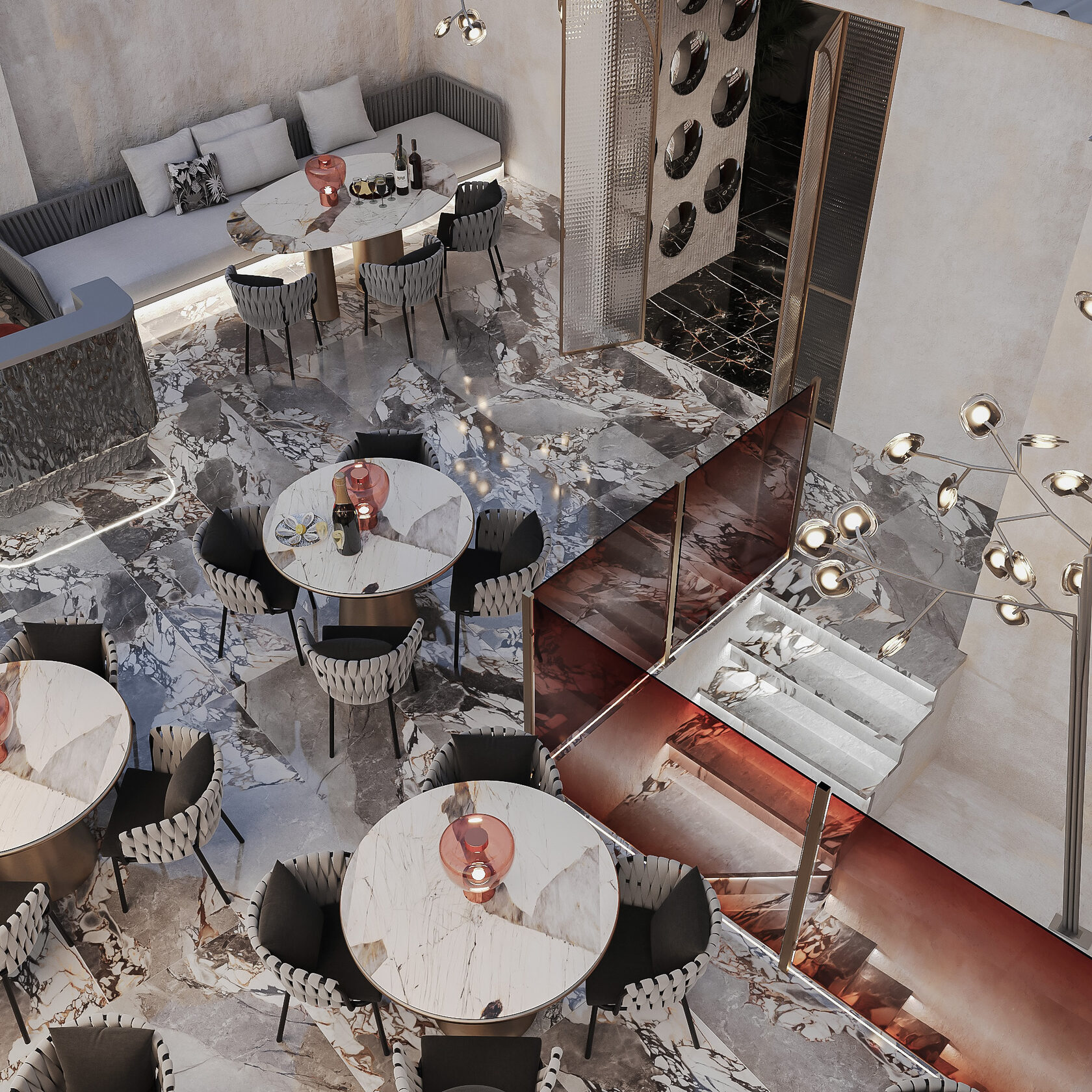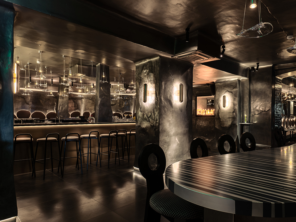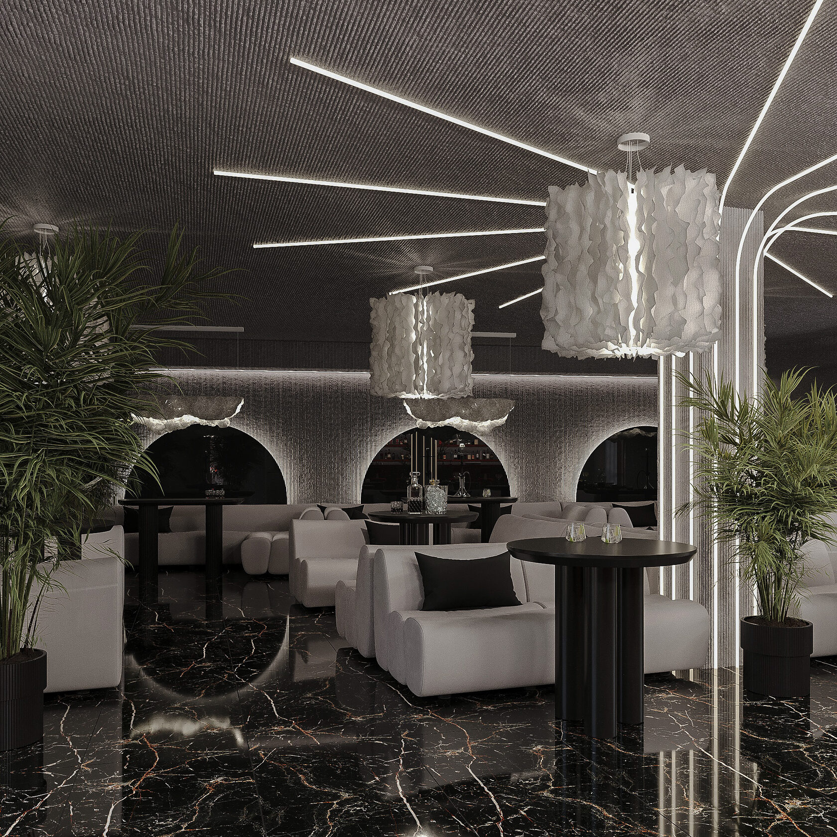Данный проект представляет собой роскошный бар-ресторан, в котором дизайнерам была предоставлена исключительная свобода в предложении концепции, выборе материалов и мебели. Ключевой задачей было создание уникального и узнаваемого пространства, способного глубоко впечатлить посетителей и качественно отличаться от других заведений в сегменте luxury.