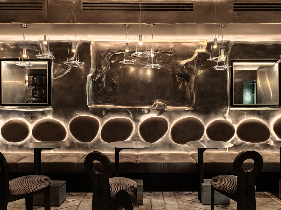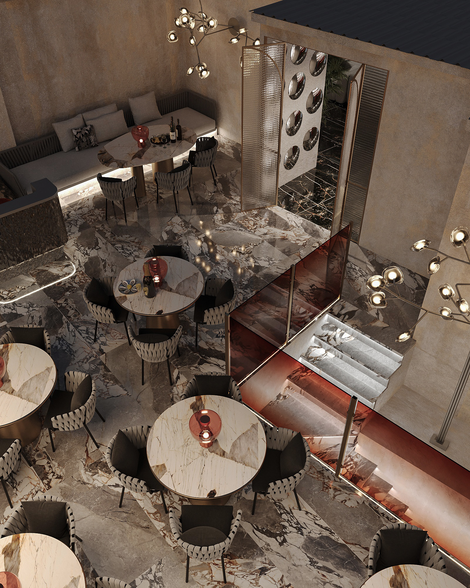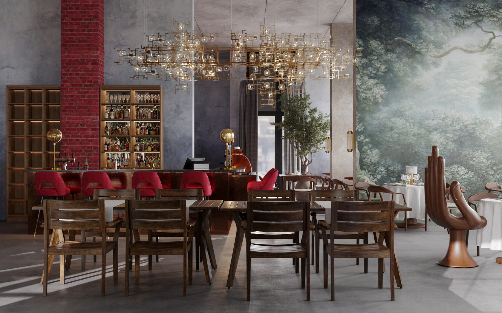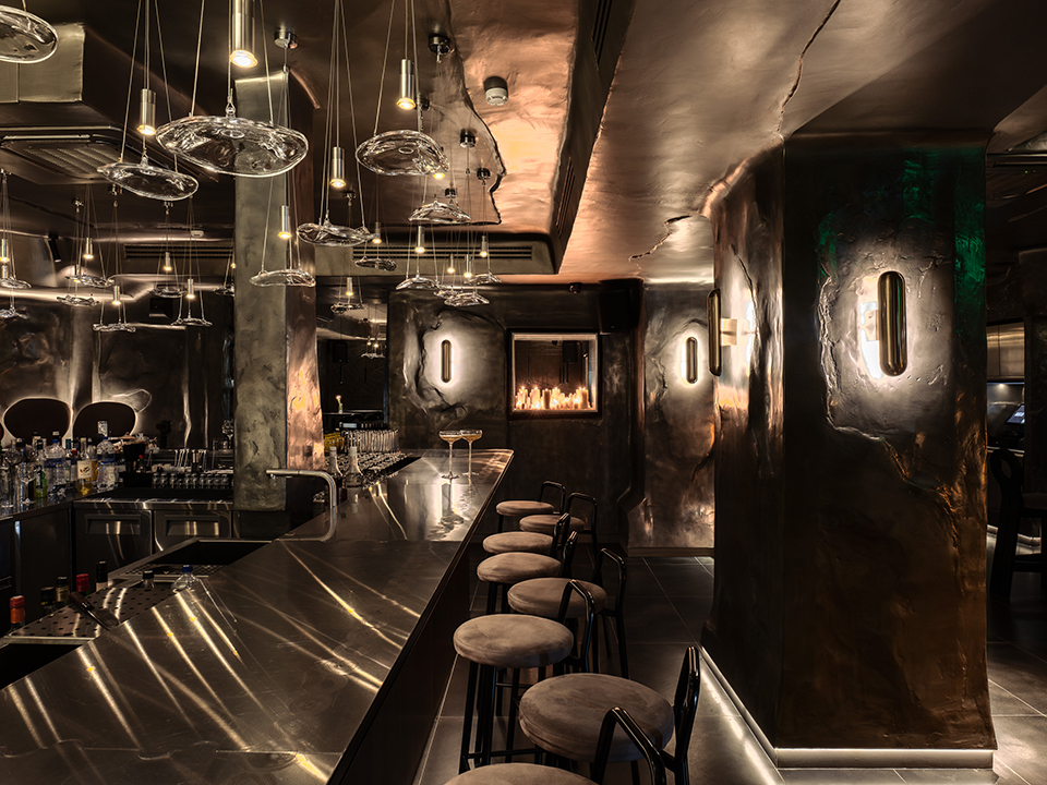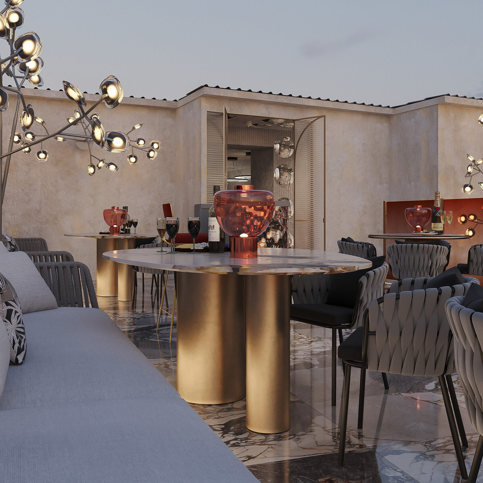 Данный проект представляет собой роскошный бар-ресторан, в котором дизайнерам была предоставлена исключительная свобода в предложении концепции, выборе материалов и мебели. Ключевой задачей было создание уникального и узнаваемого пространства, способного глубоко впечатлить посетителей и качественно отличаться от других заведений в сегменте luxury.