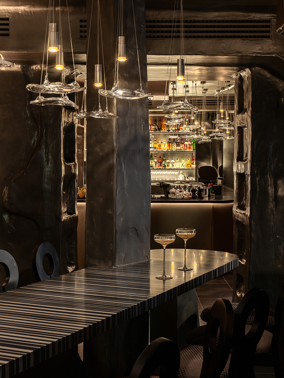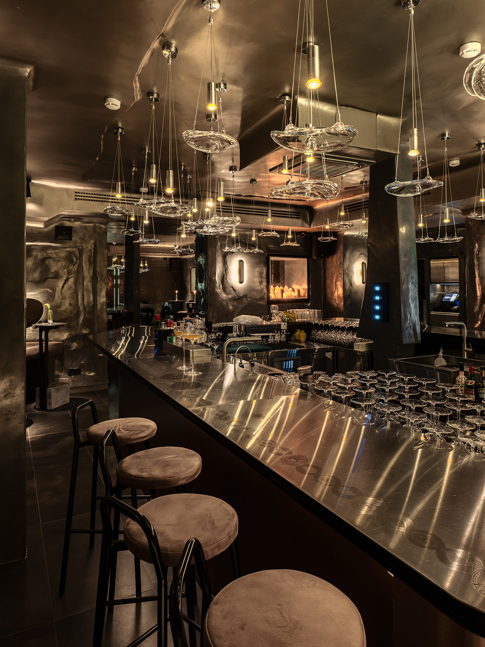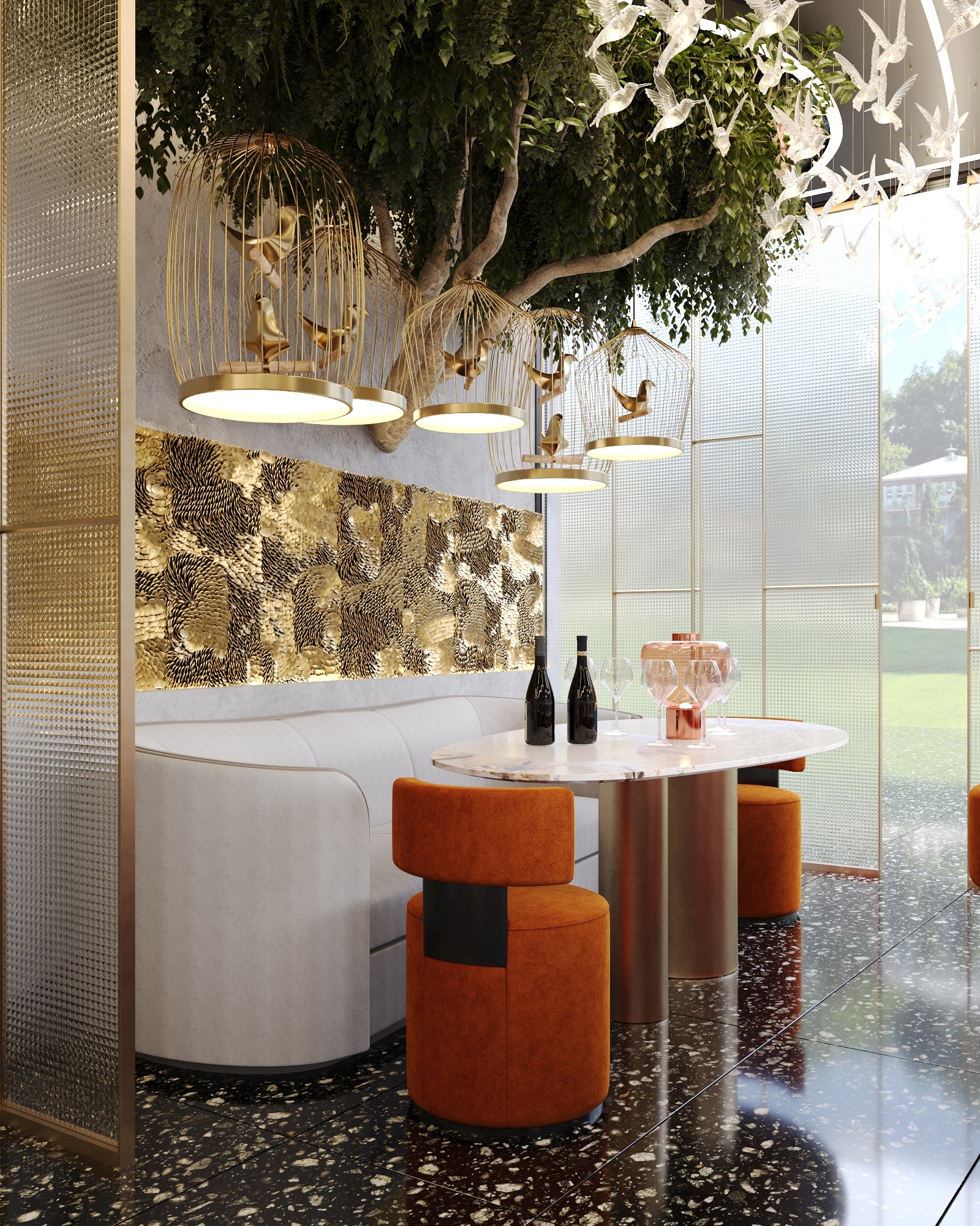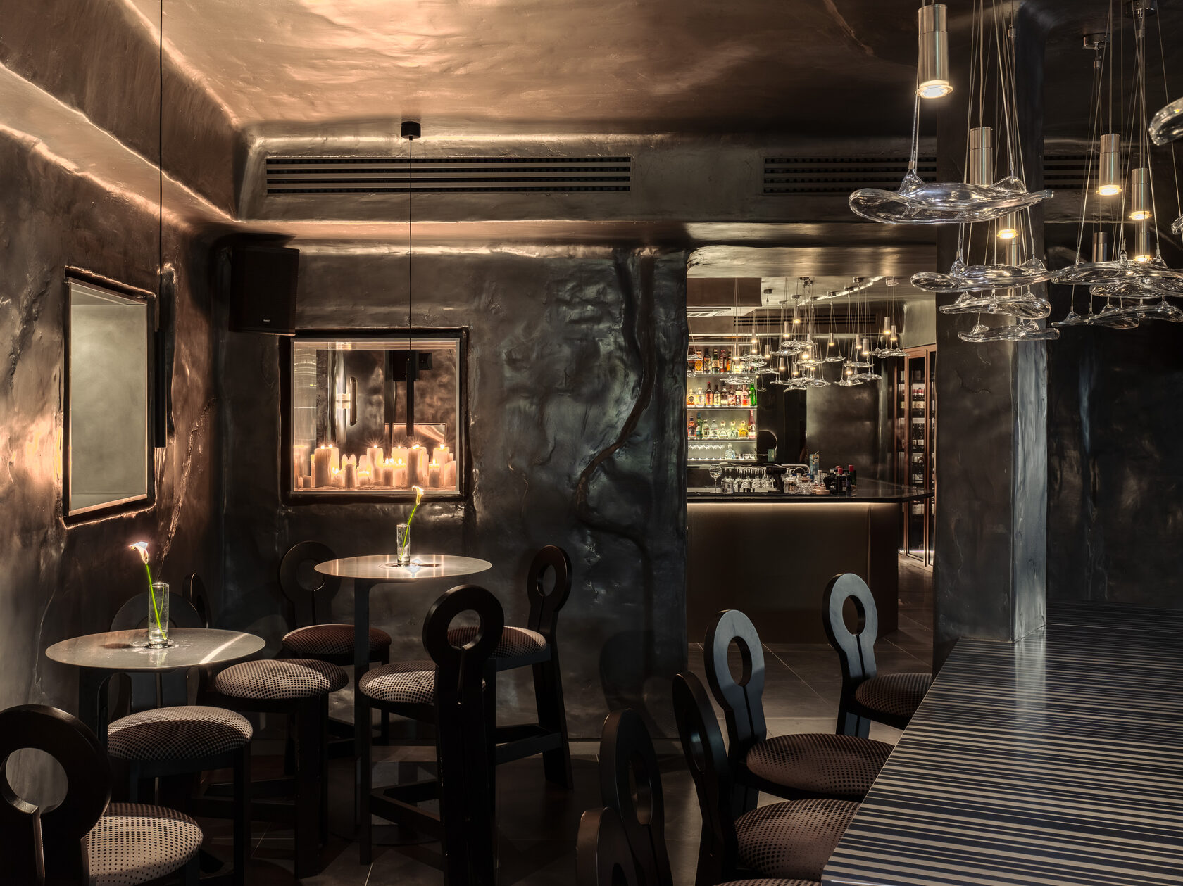 Данный проект представляет собой роскошный бар-ресторан, в котором дизайнерам была предоставлена исключительная свобода в предложении концепции, выборе материалов и мебели. Ключевой задачей было создание уникального и узнаваемого пространства, способного глубоко впечатлить посетителей и качественно отличаться от других заведений в сегменте luxury.