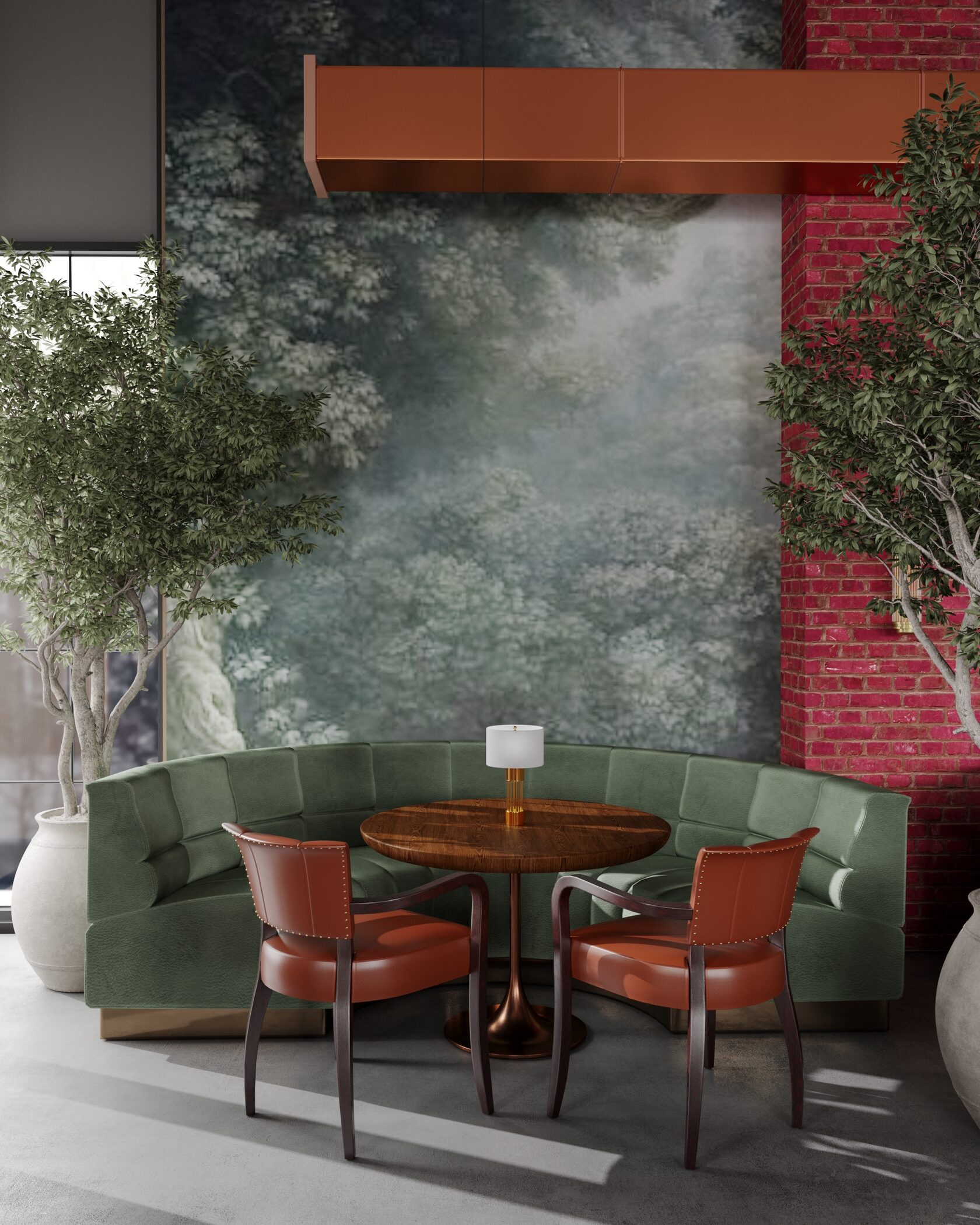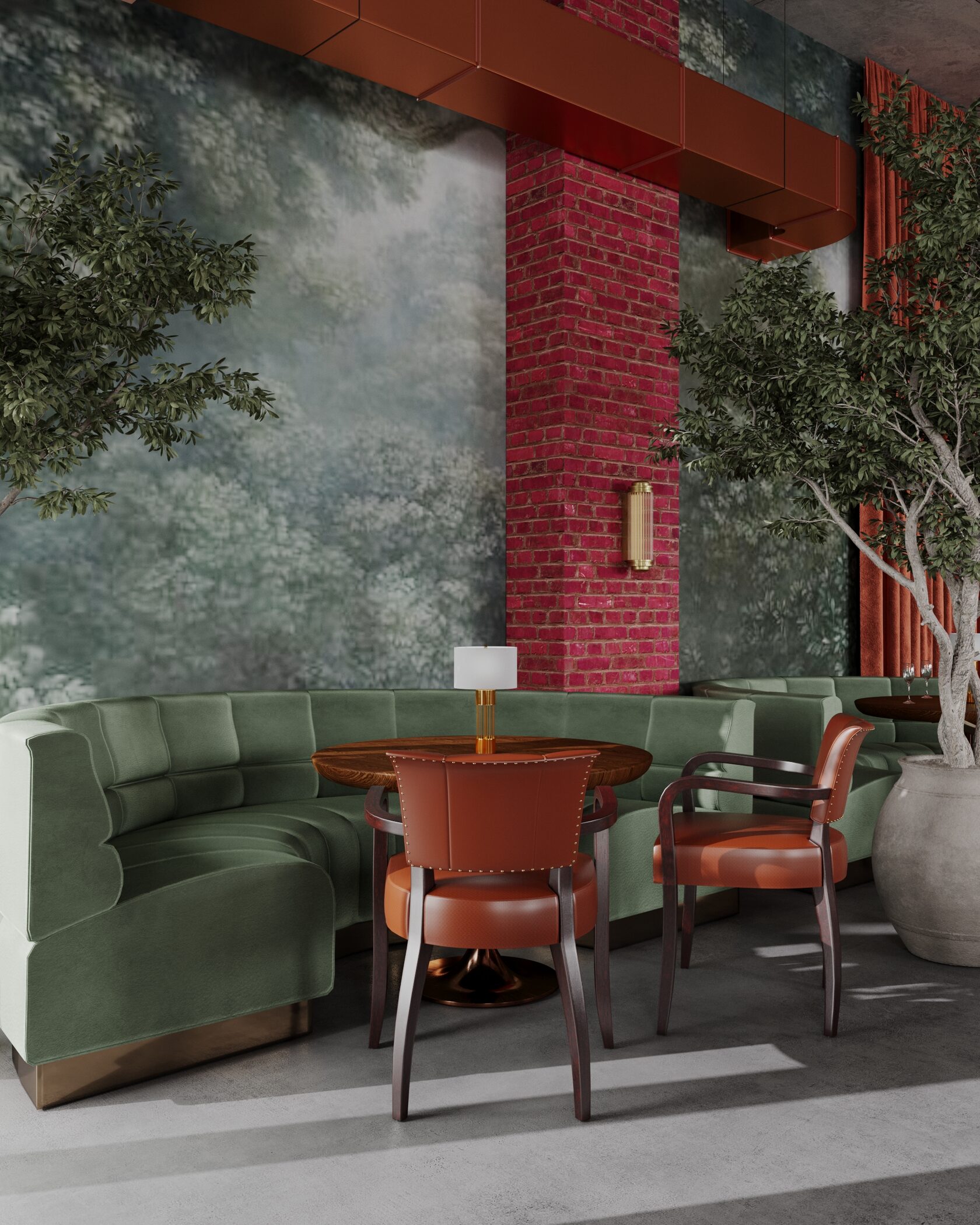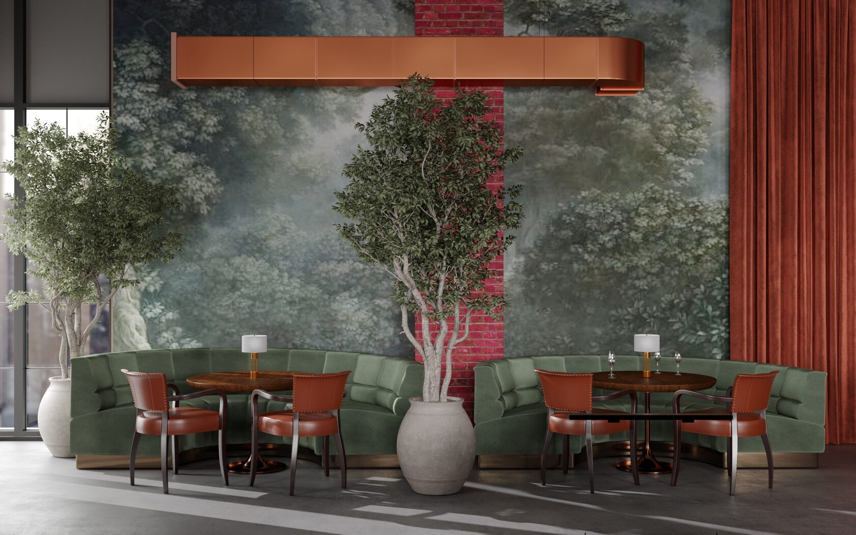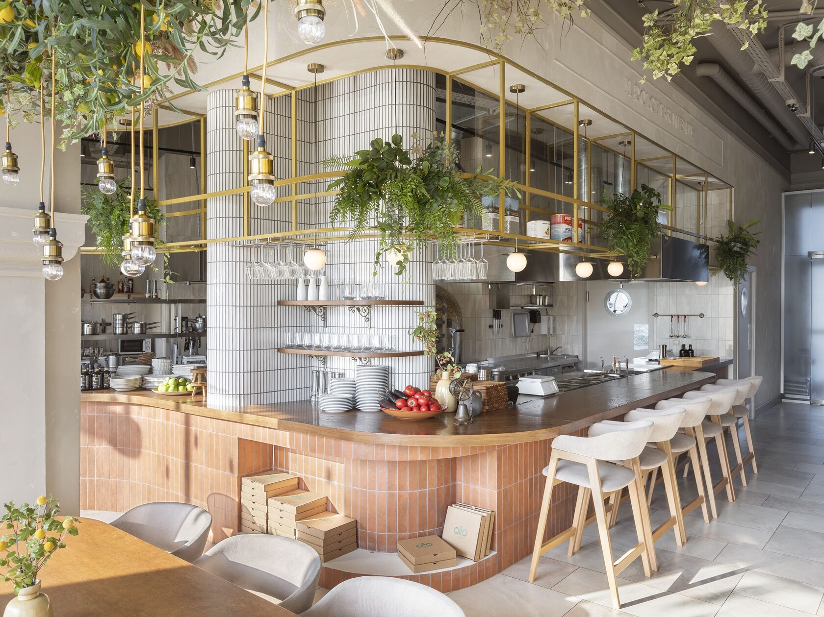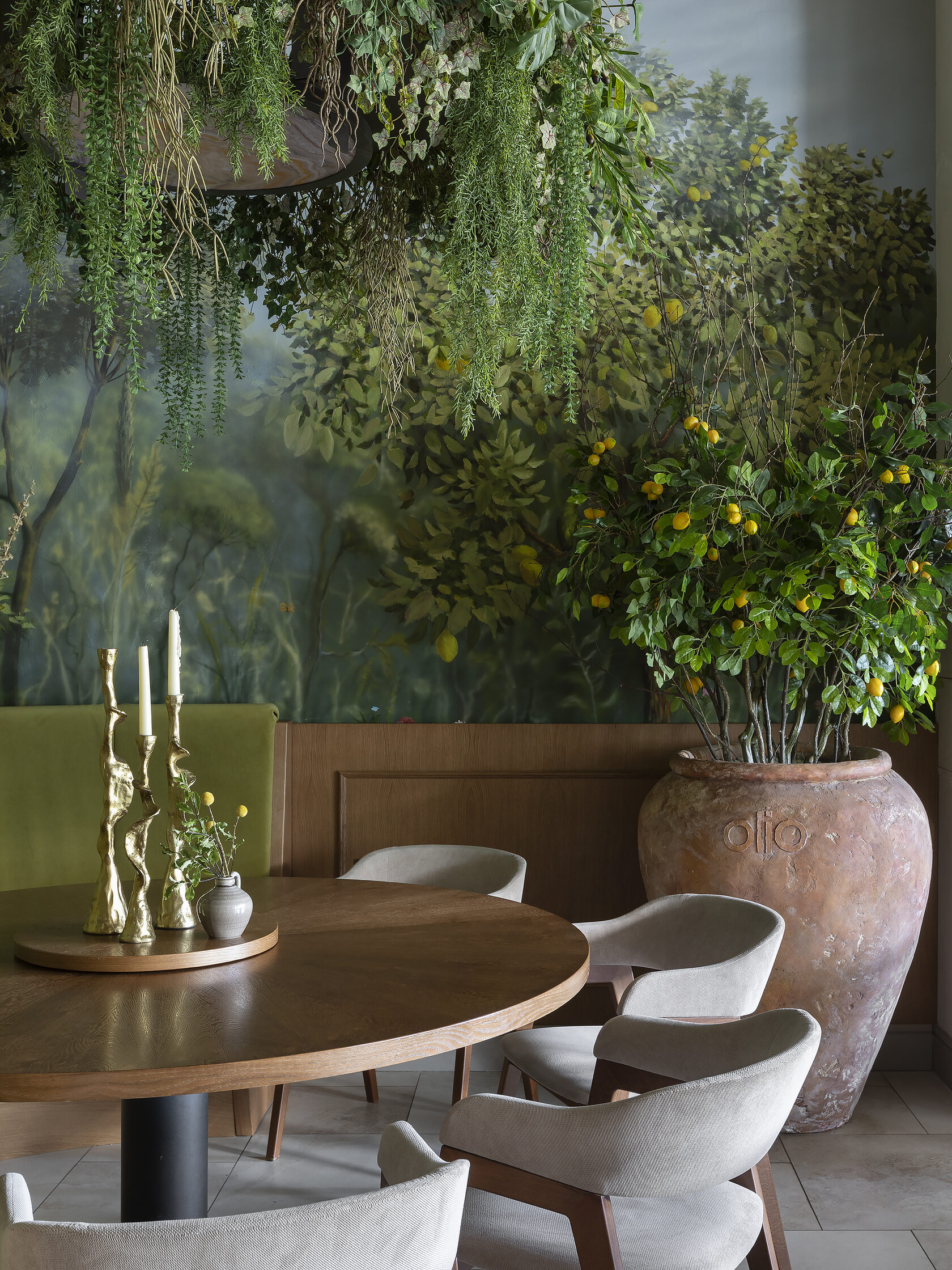 Интерьер итальянского ресторана построен вокруг образа уютной веранды в тёплой Тоскане. Концепция основана на лёгкости, природности и ощущении неспешного отдыха. Пространство наполнено светом, растительными орнаментами и обилием живой зелени, что создаёт атмосферу расслабленного загородного ужина в итальянской провинции.
