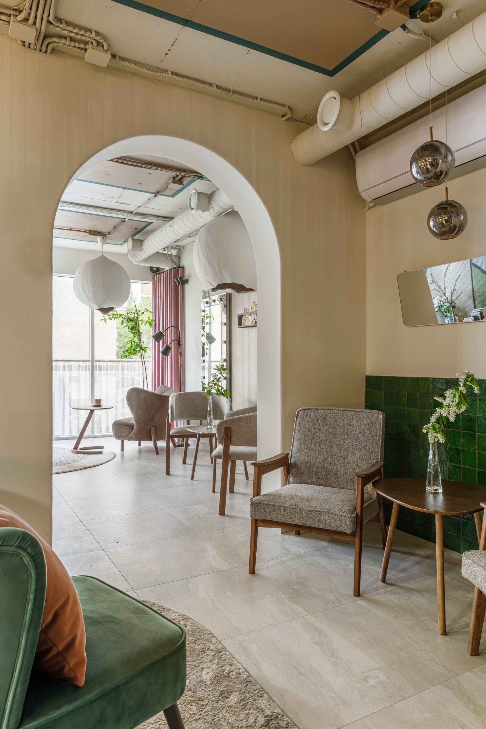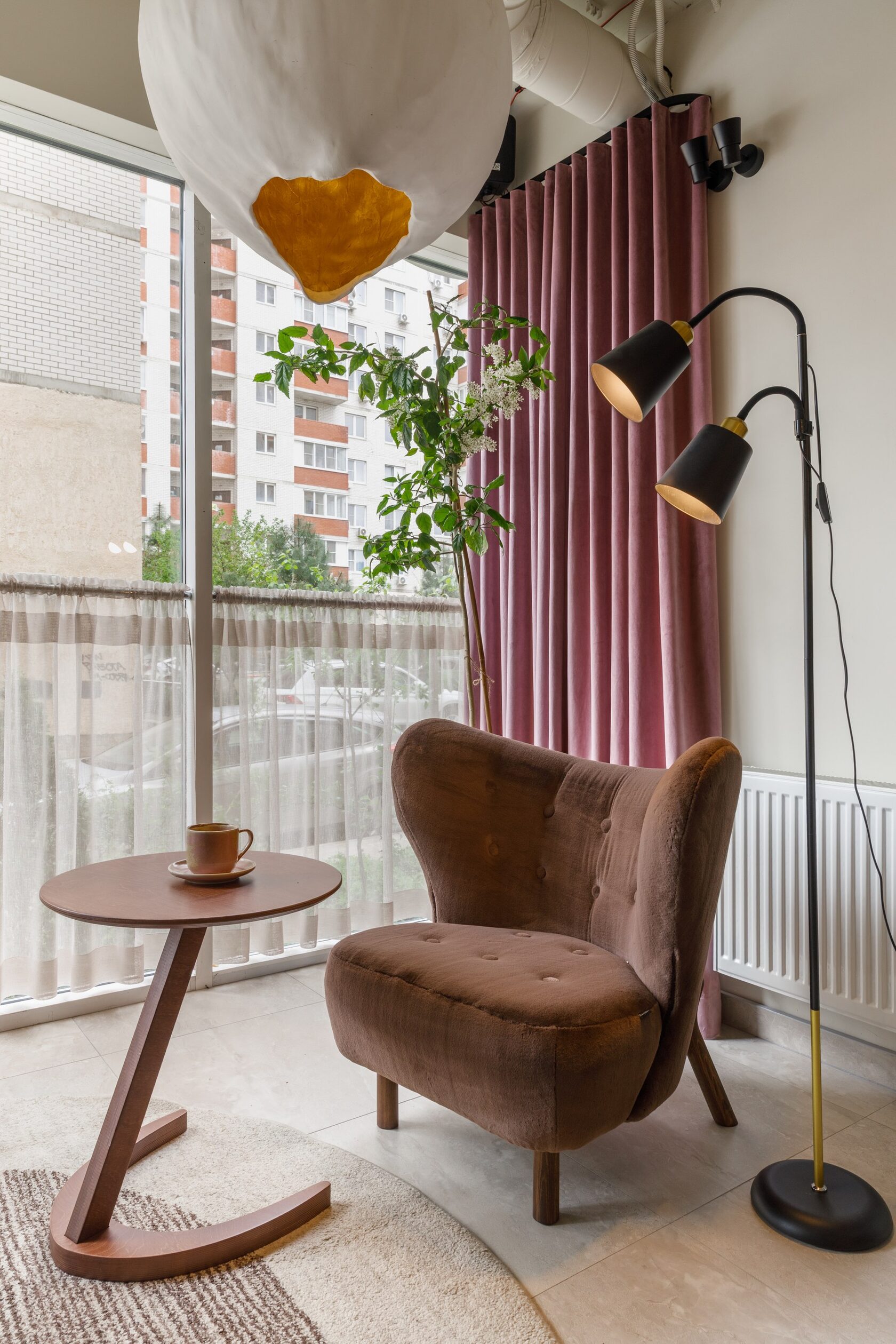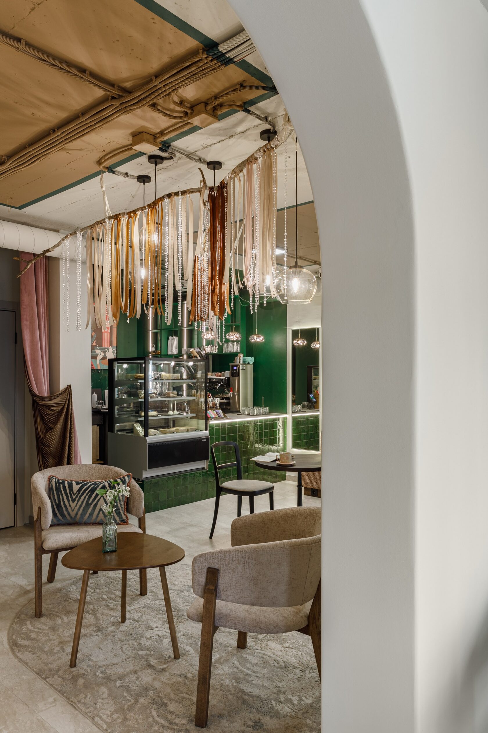В декоре использован легкий винтаж — он создаёт ощущение воспоминаний, тёплоты и индивидуальности. Атмосфера — легкая, воздушная, игривая, как сама идея заглянуть за кофе между примеркой и прогулкой.