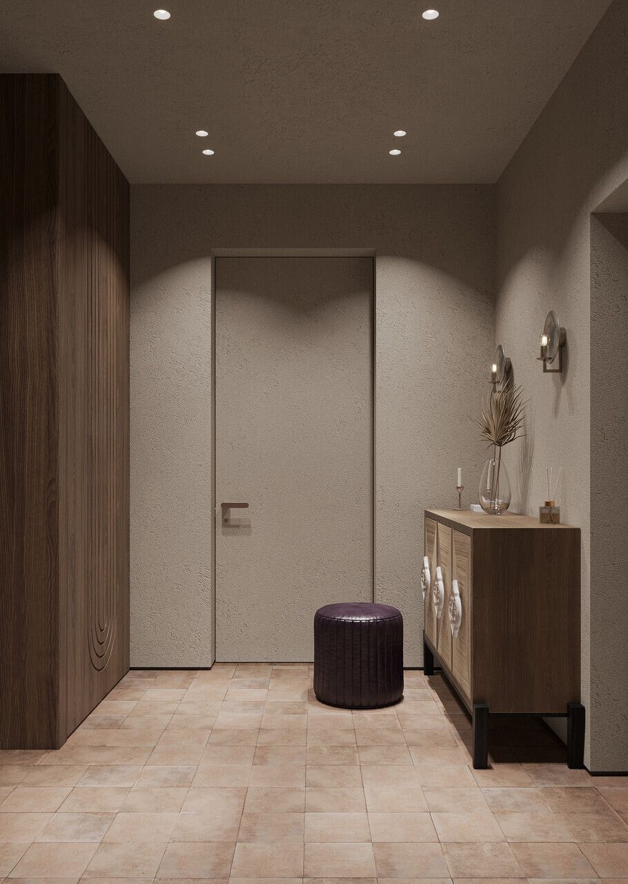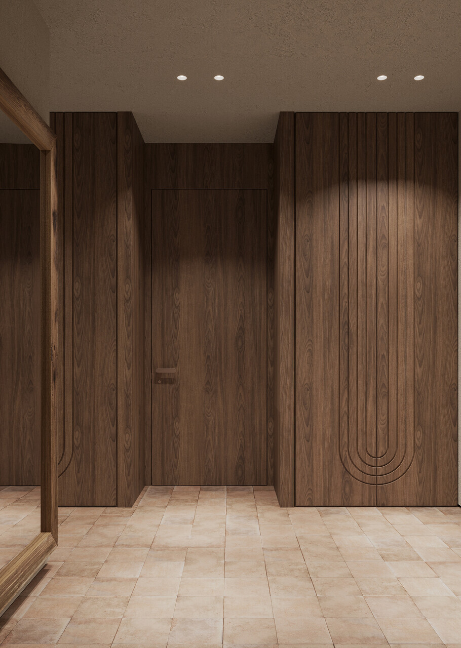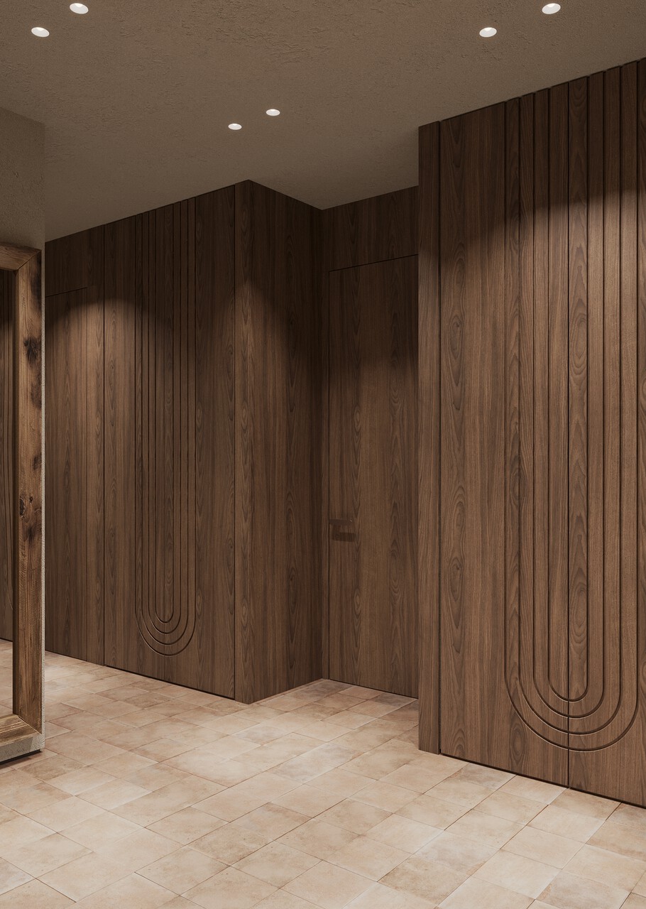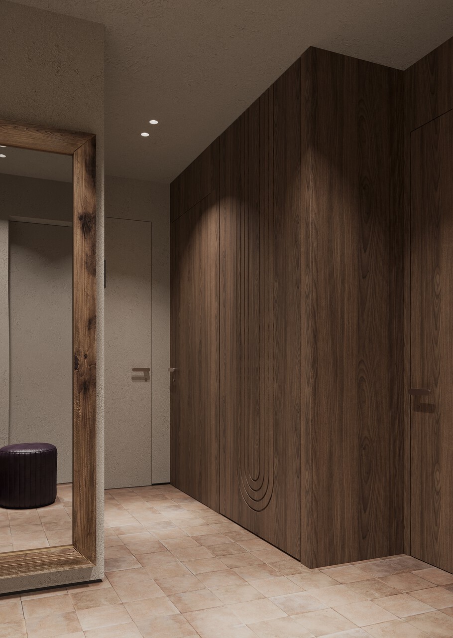 Концепция Идея интерьера родилась после вдохновляющего путешествия в Испанию. Архетипические образы южной архитектуры отразились в использовании терракотовых оттенков, аутентичной мелкой плитки, живой зелени и выразительных фактур. Стены и элементы отделки неидеальны — с трещинками, сколами, отпечатками времени. Это пространство, где ценят настоящую жизнь со всеми её несовершенствами.