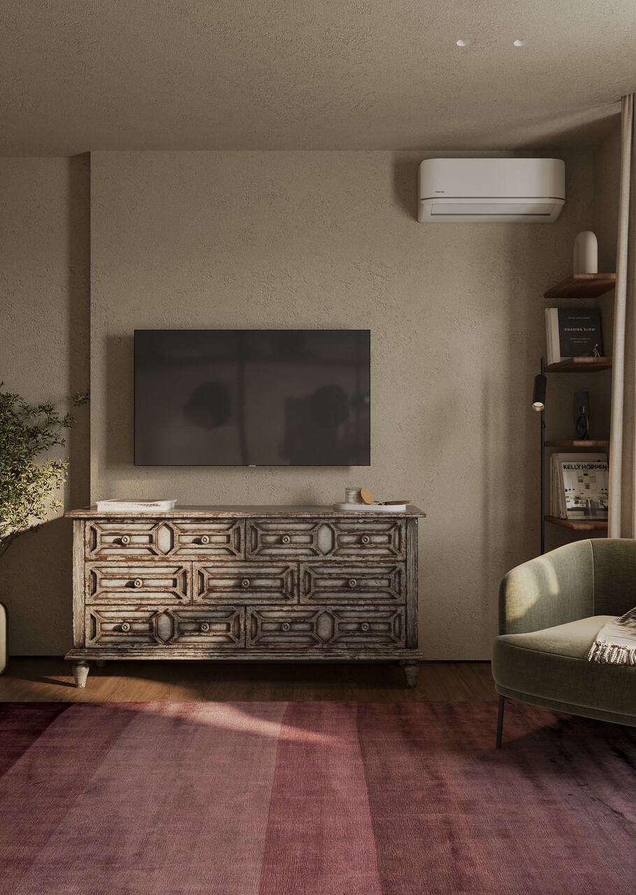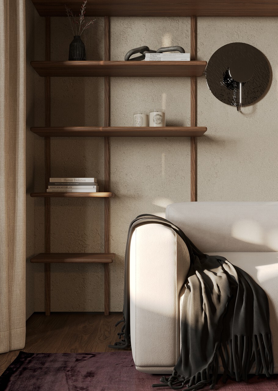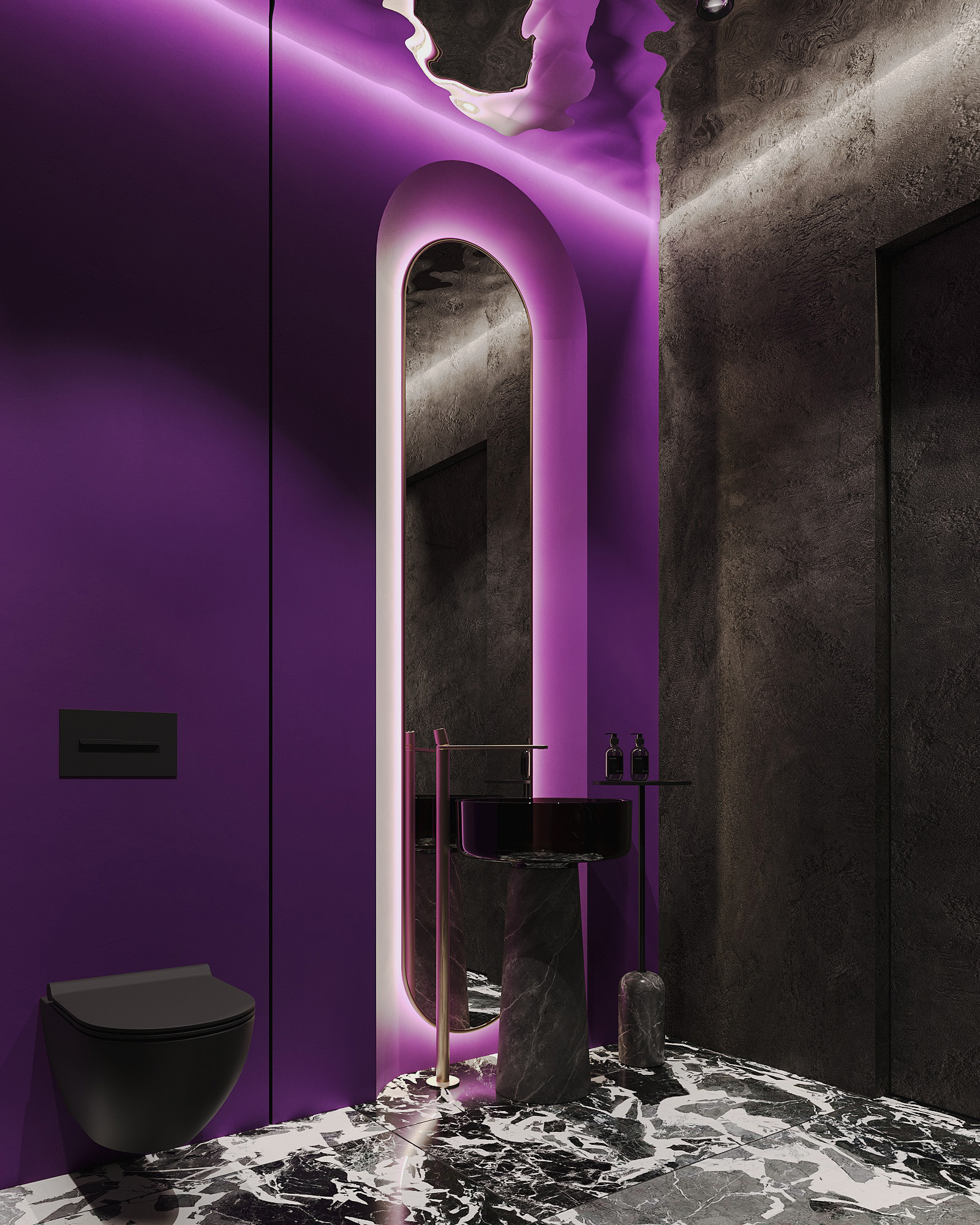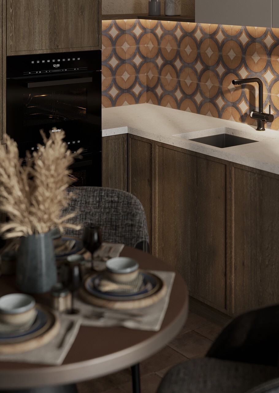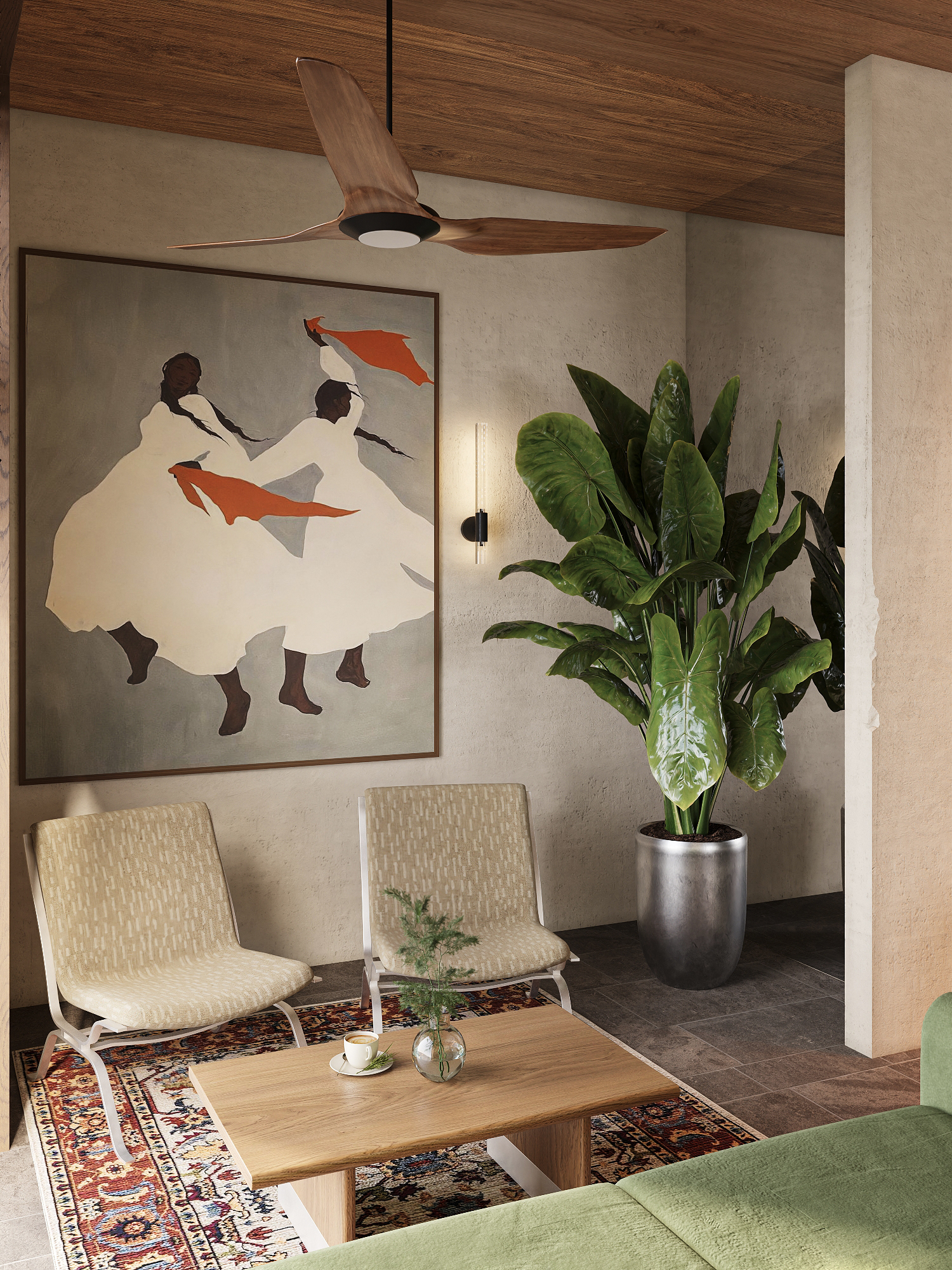 Концепция: Основная идея проекта — формирование динамичного и запоминающегося пространства, где каждый элемент подчеркивает диалог между современными тенденциями и культурным наследием. Ключевая роль отведена рациональному зонированию, позволившему оптимизировать небольшую площадь и создать многоуровневые функциональные зоны. Это достигнуто через смелое сочетание фактур и оттенков, придающих интерьеру уникальную атмосферу уюта и локальной идентичности.