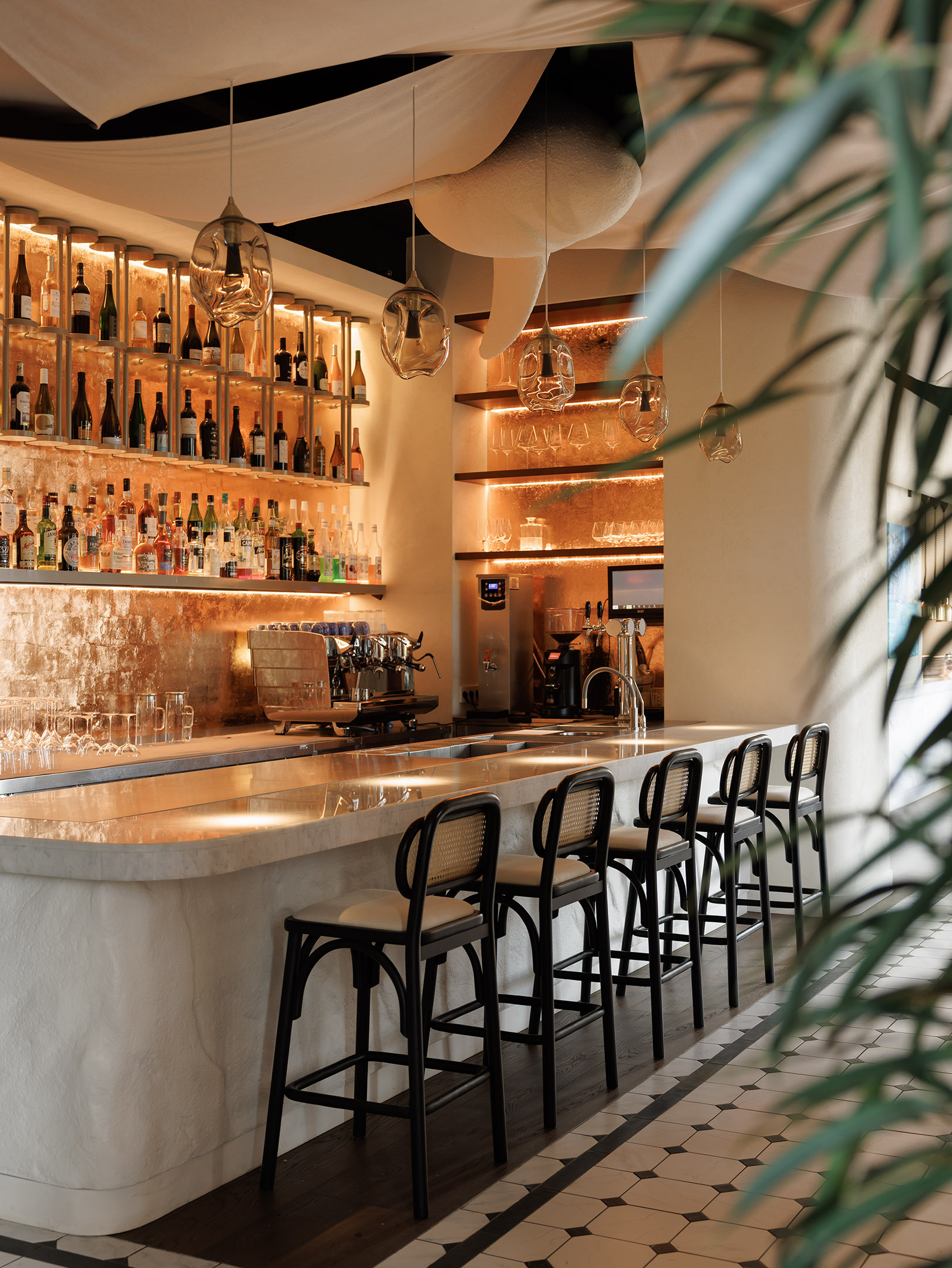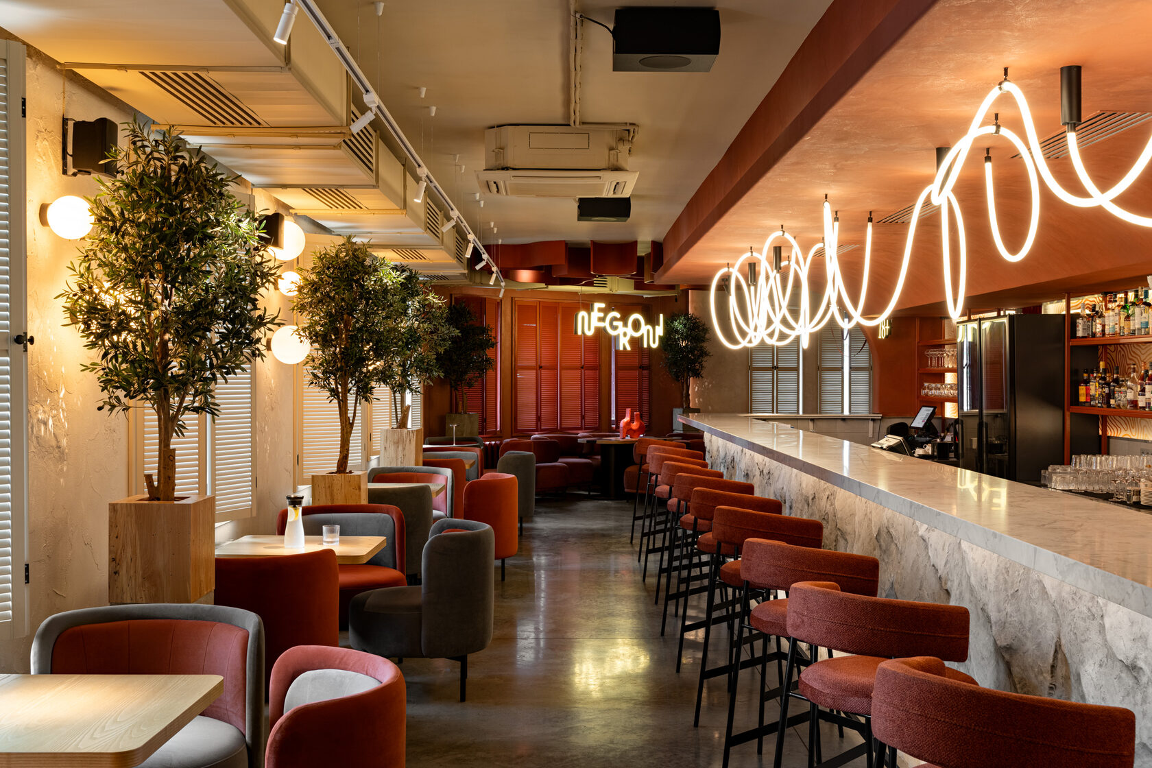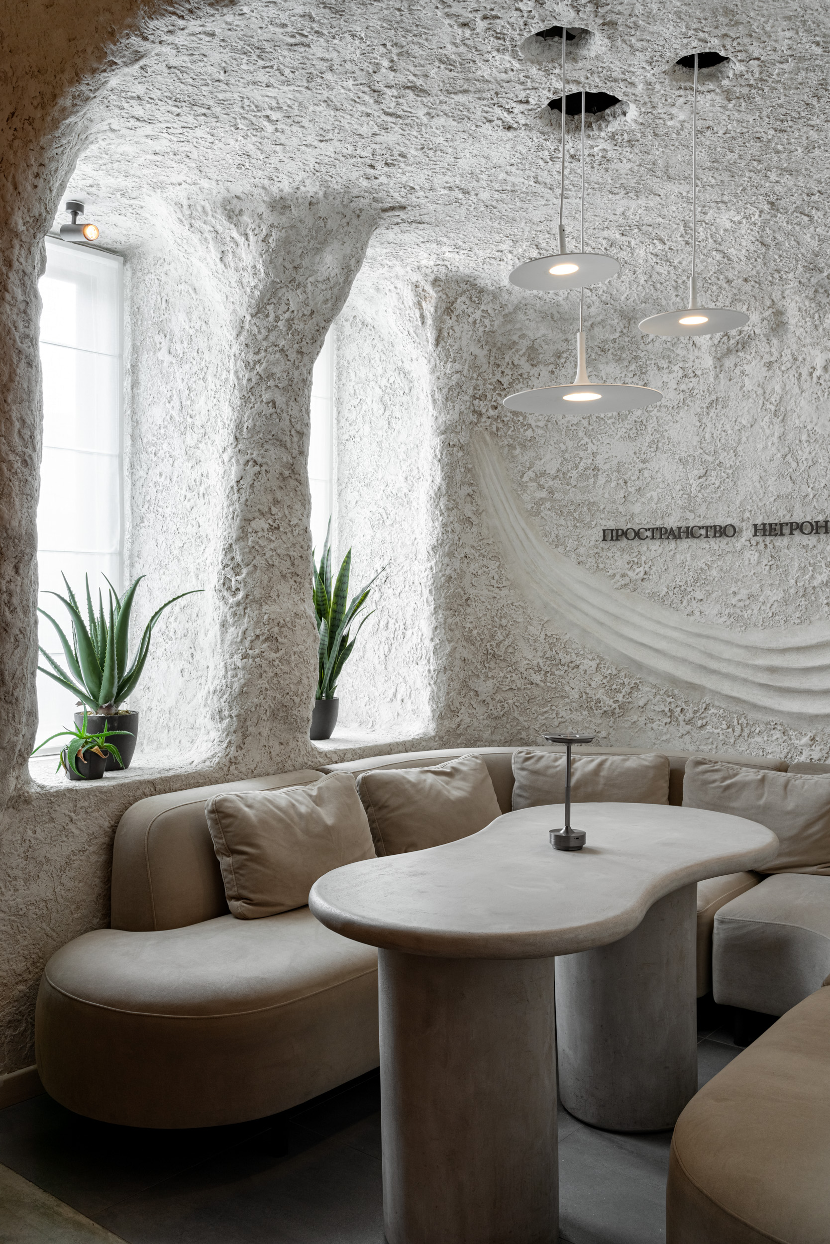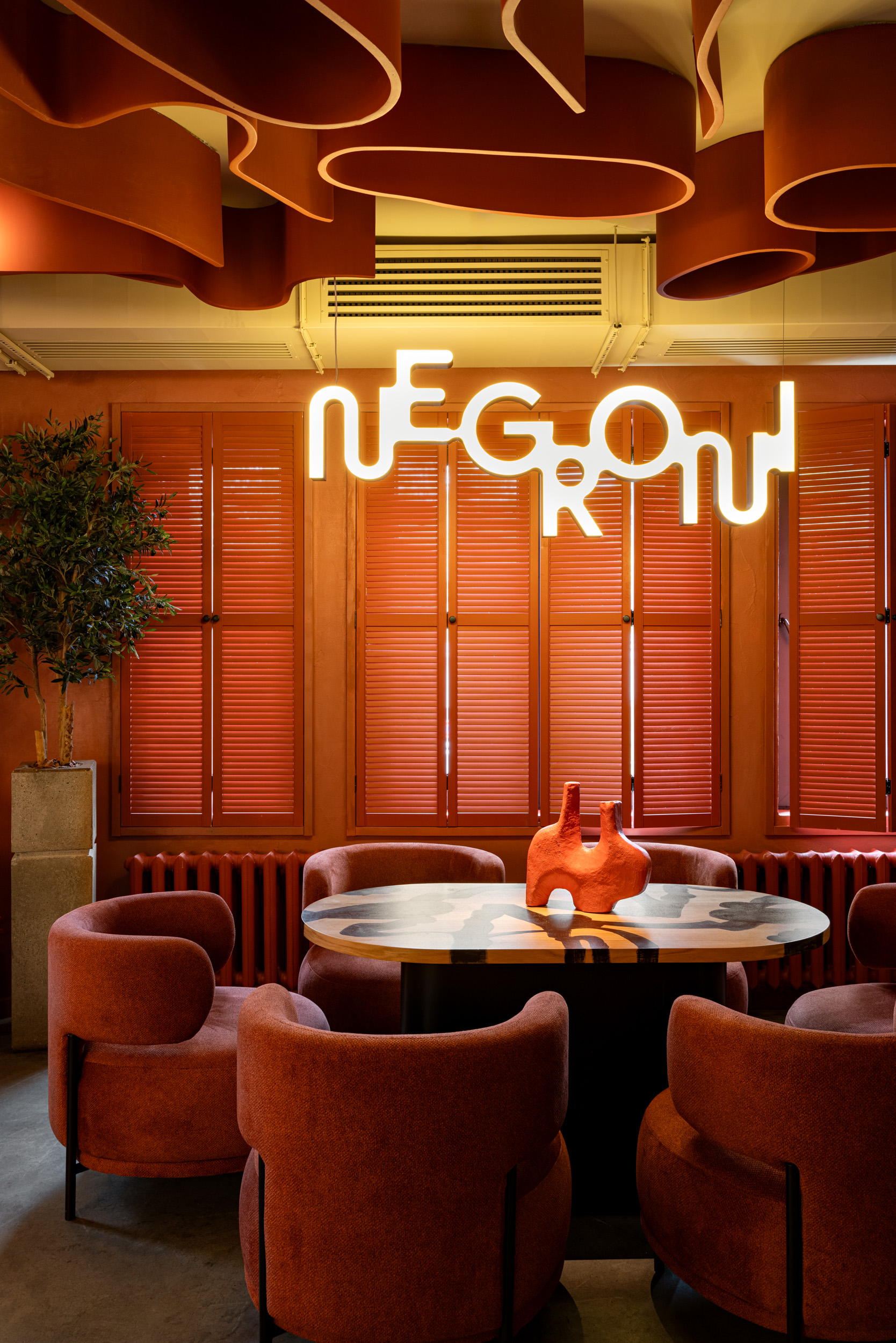 Проект «Negroni» — это воплощение обволачивающей теплоты, солнечных бликов и атмосферы непринужденного отдыха. Вдохновленный легендарным итальянским коктейлем и средиземноморской эстетикой, интерьер создает уникальное пространство для душевного общения. Двенадцатиметровая барная стойка, служащая ярким световым элементом, выступает сердцем заведения и центром притяжения, вокруг которого гармонично организованы все функциональные зоны.