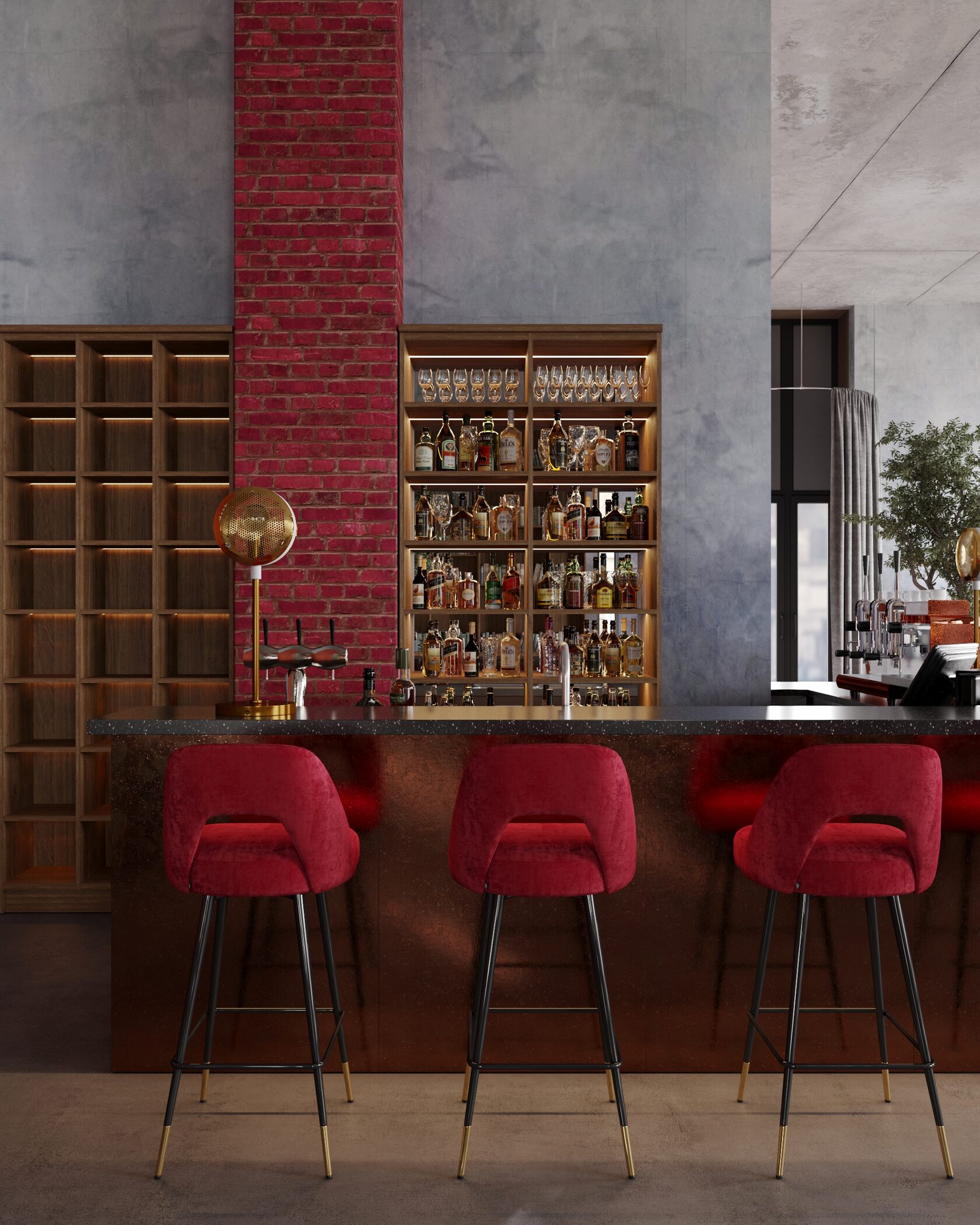 Барная зона: стильная барная стойка с удобными стульями становится местом для неформального общения и вдохновения.