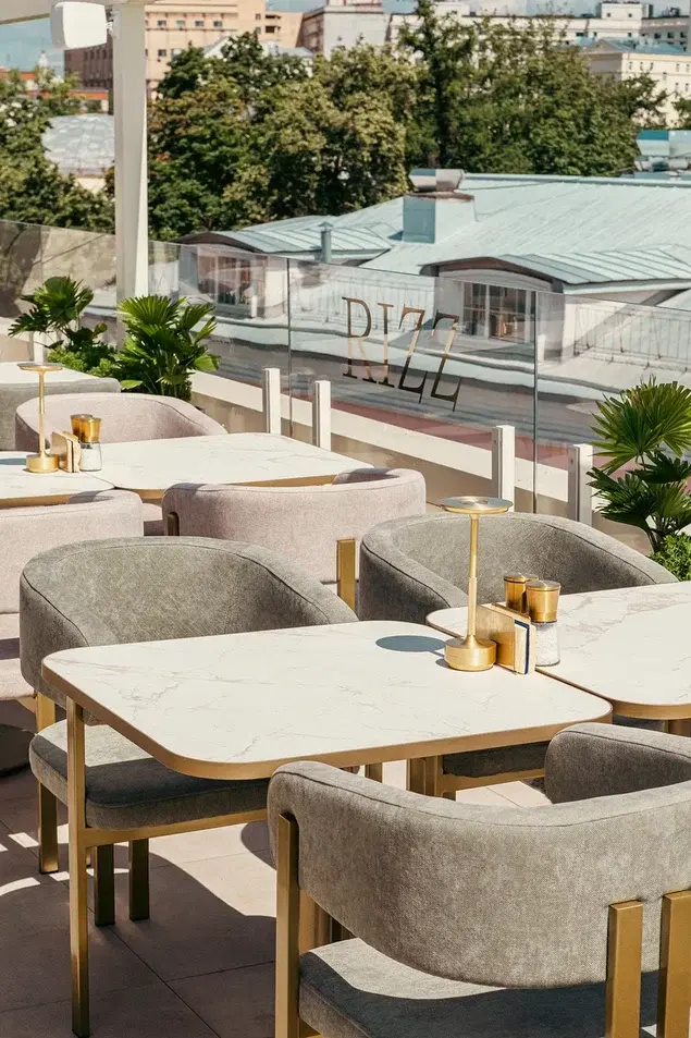 Итог: В результате реализован знаковый проект летней террасы, который является не просто рекреационной зоной, а жизненно важным источником вдохновения и эксклюзивного отдыха для столицы в летний период. Терраса Rizz успешно объединяет уникальный дизайн, панорамные виды и беспрецедентный комфорт, становясь ключевым местом притяжения, где городской ритм уступает место расслабленной атмосфере южного курорта.