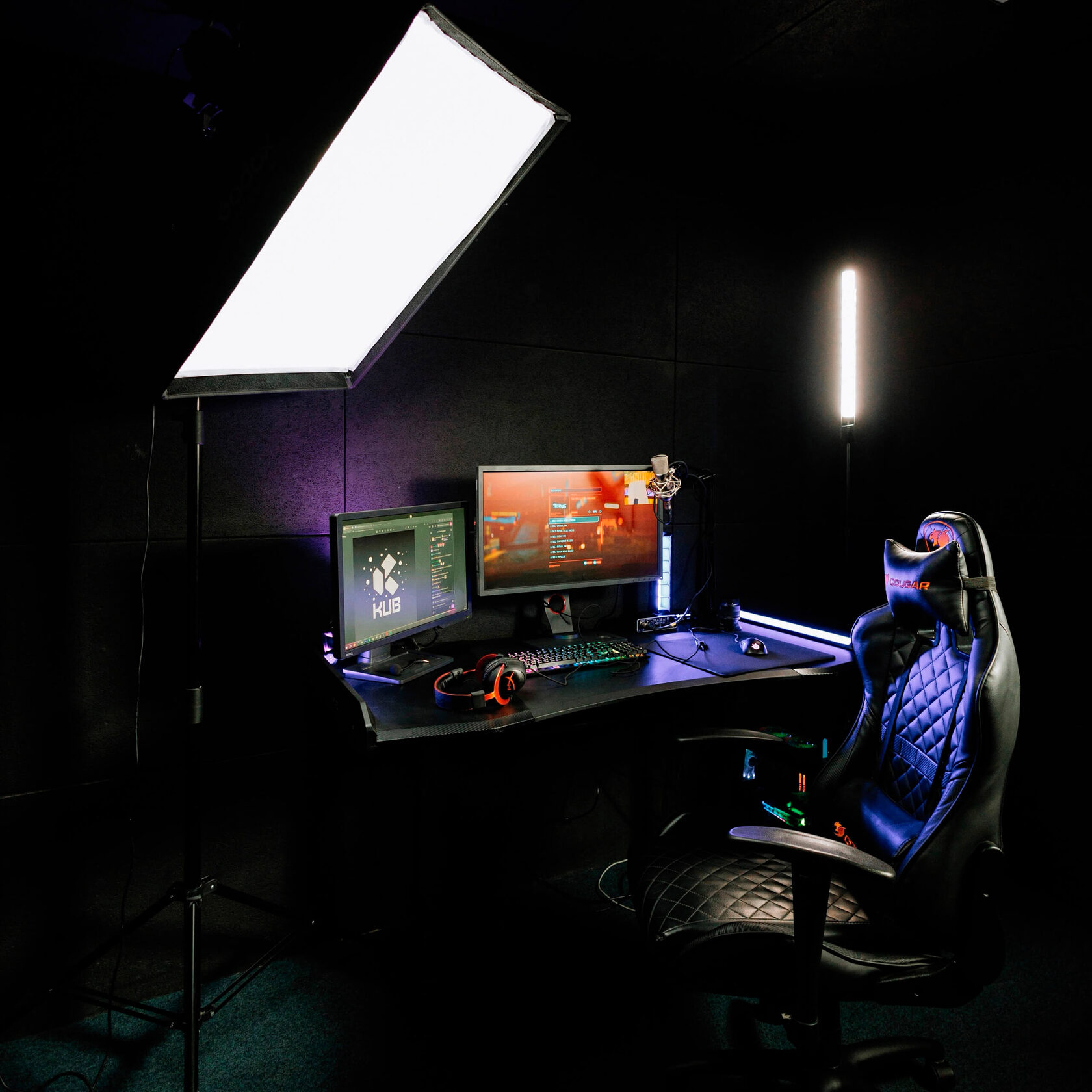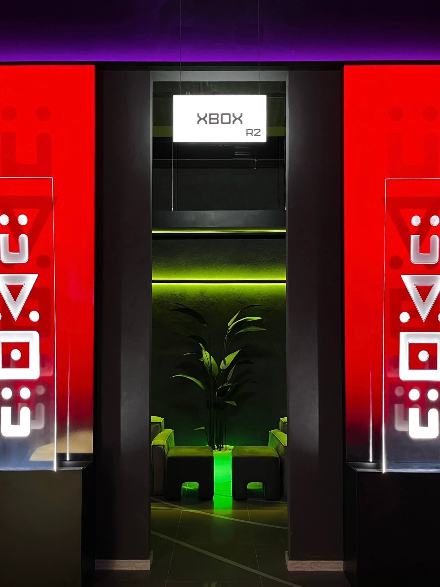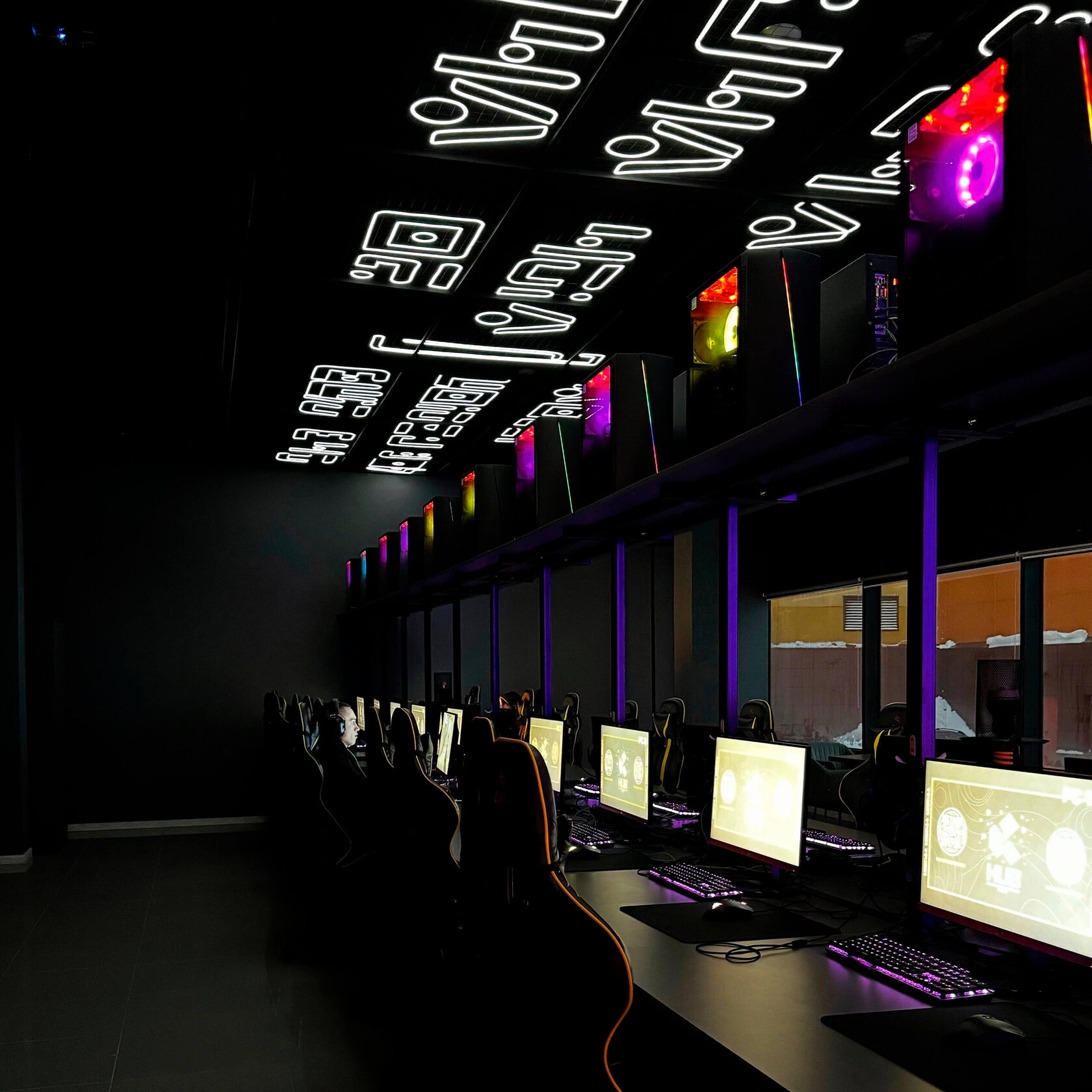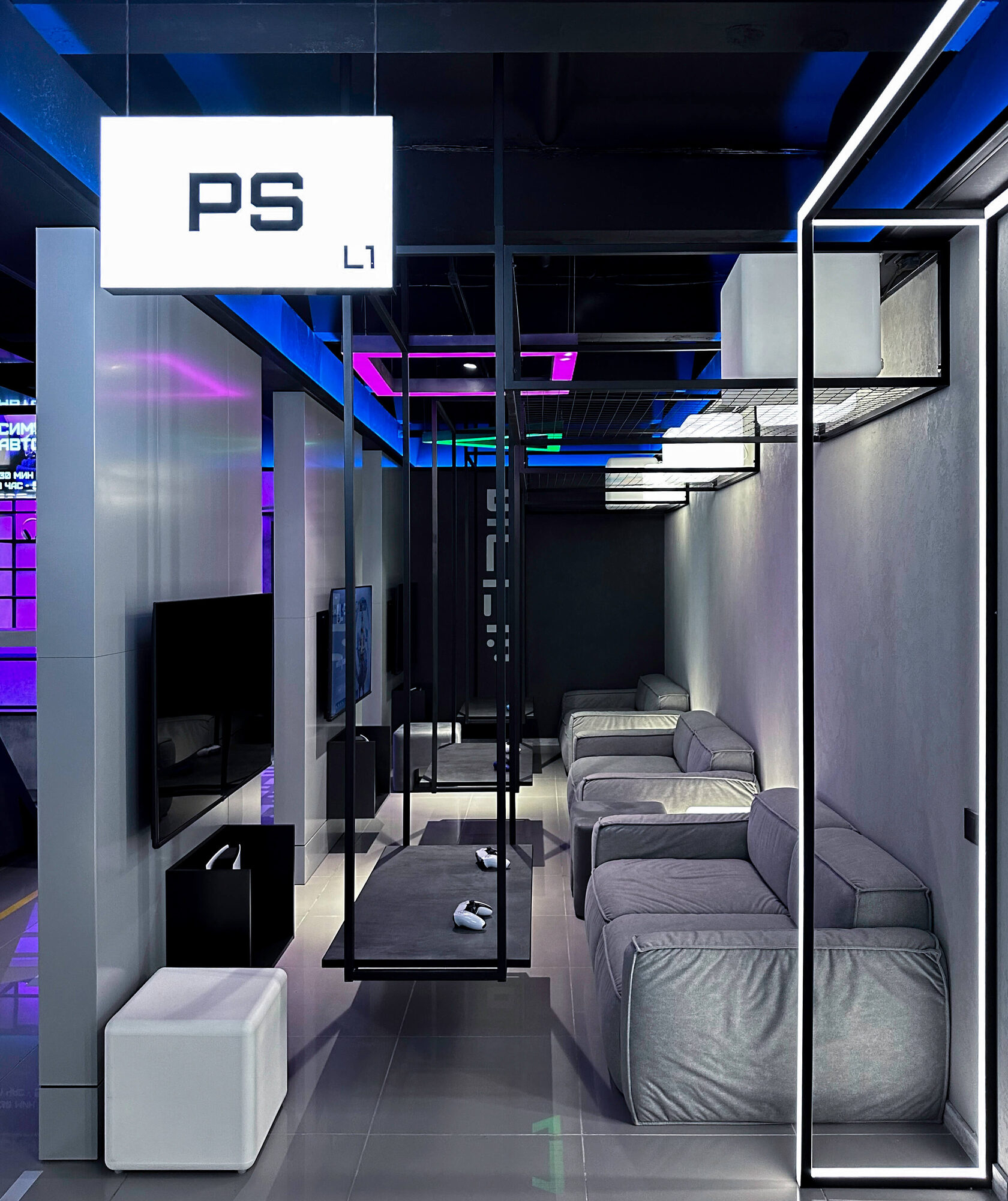 Территория площадью 1300 м² была переосмыслена и преобразована в уникальное киберпространство. Первый этаж представляет виртуальный город с элементами мегаполиса: пешеходными зонами, дорожными развязками и неоновыми вывесками на выдуманном языке. Монохромный интерьер с яркой подсветкой создает атмосферу футуристического мегаполиса. Второй этаж (18+) оформлен в светлых, спокойных тонах и представляет «сад камней» на крыше небоскрёба — умиротворённое пространство для отдыха от городской суеты. На обоих этажах расположены игровые зоны премиум-класса, кафе и лаунж-зоны, позволяющие проводить мероприятия, стримы, вечер кино или караоке.