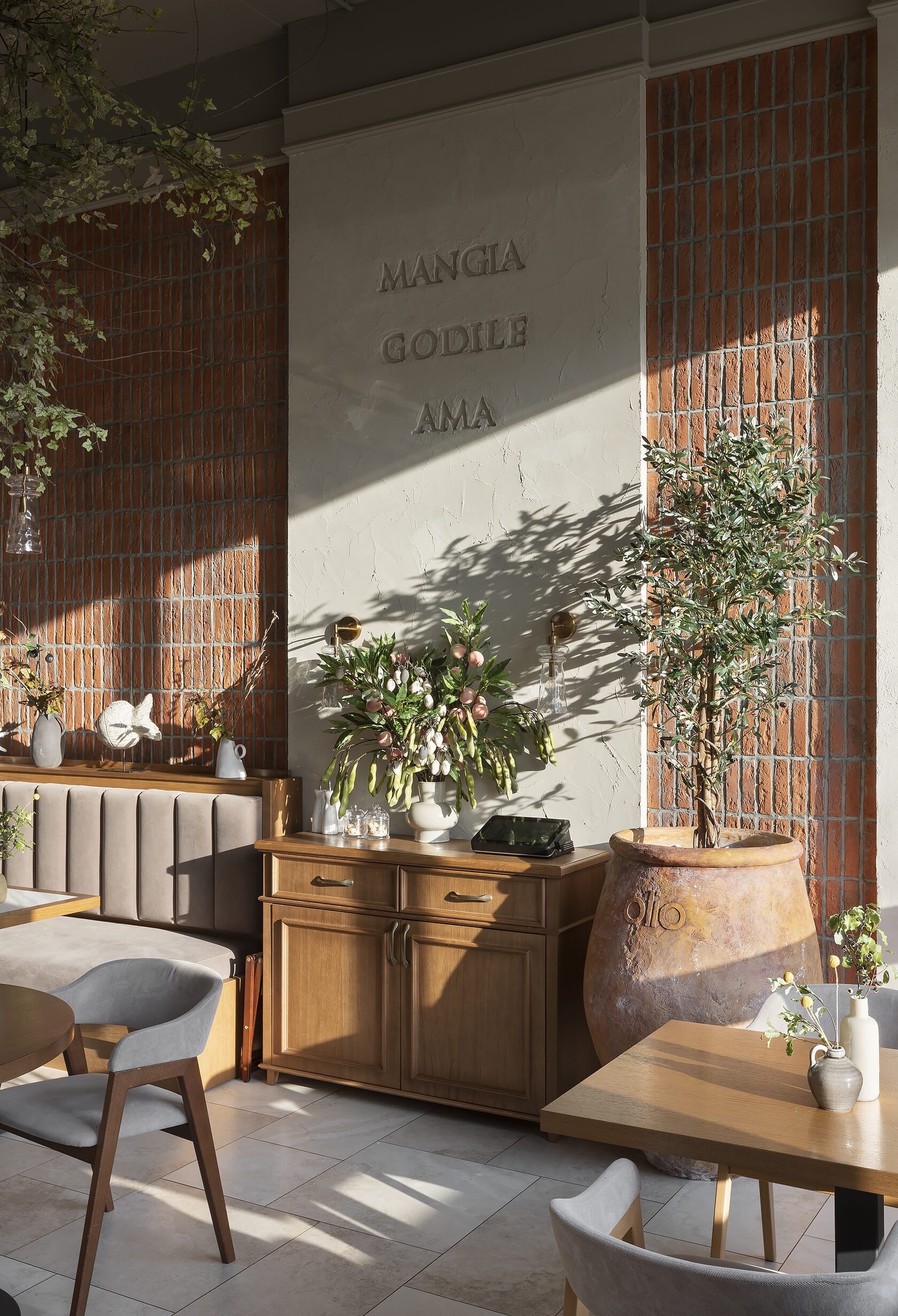 Проект бюро Archimage, целью которого было воссоздание атмосферы традиционной итальянской трапезы. Через тщательно подобранные материалы, архитектурные решения и декор, пространство погружает посетителей в аутентичный мир Италии, пробуждая чувства и создавая идеальное место для гастрономических удовольствий и отдыха.