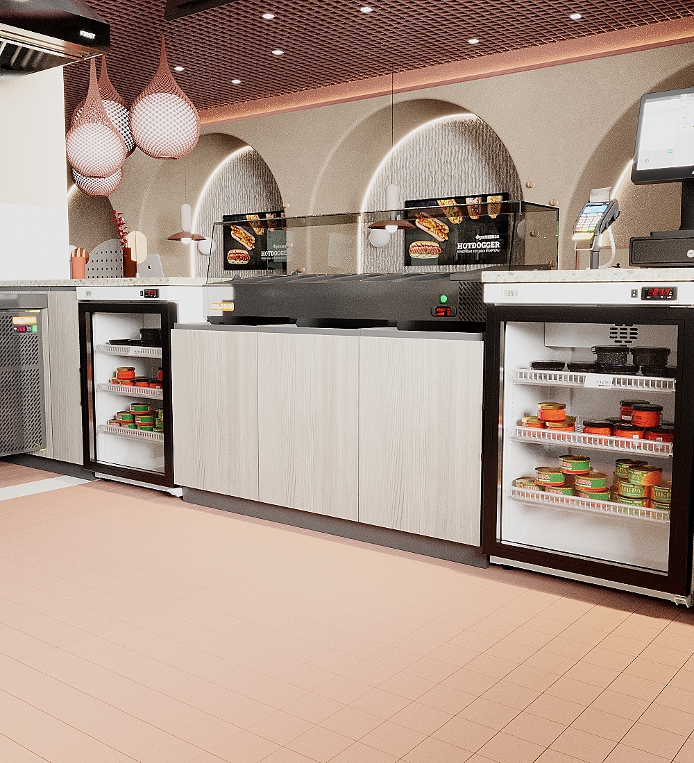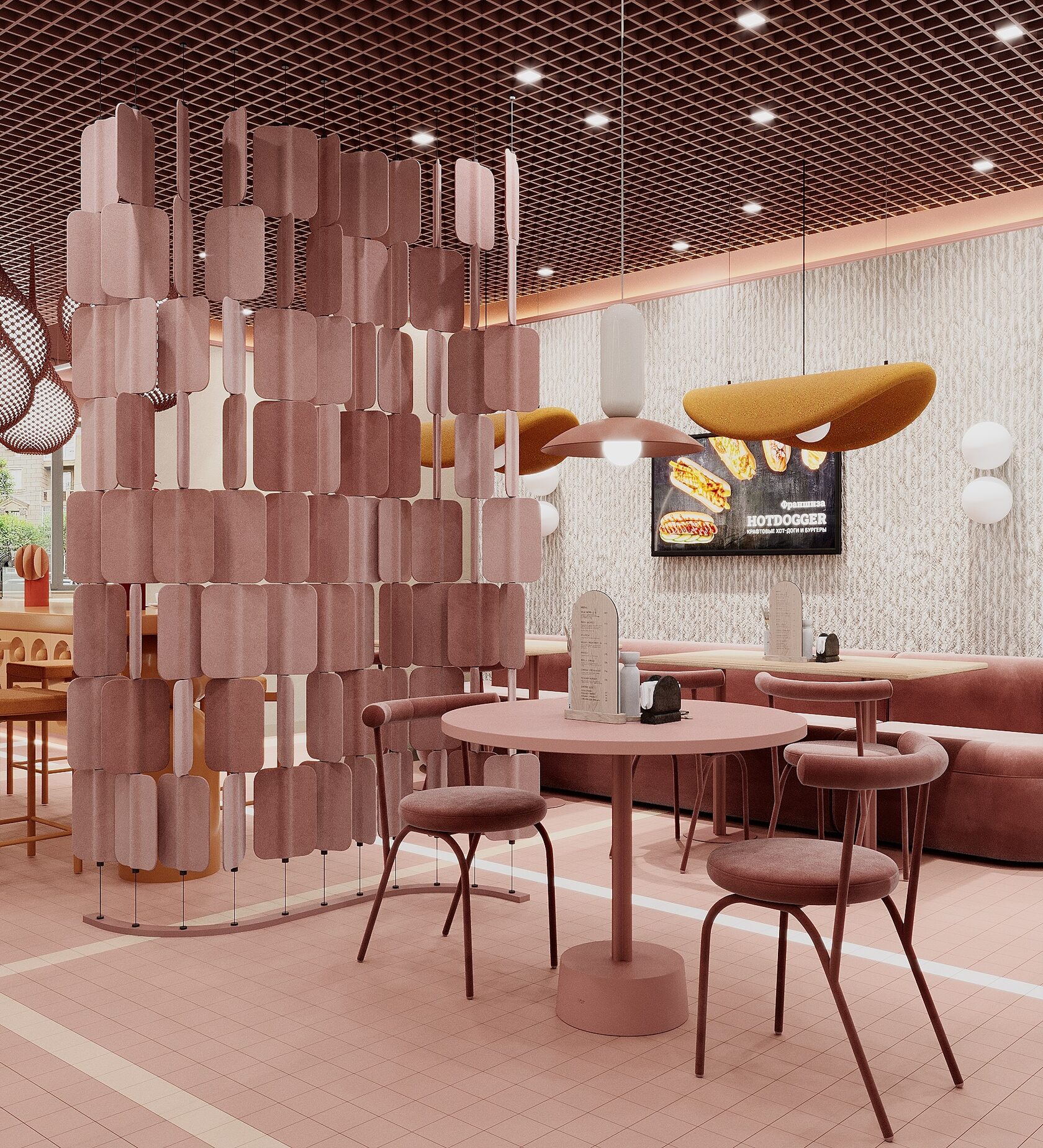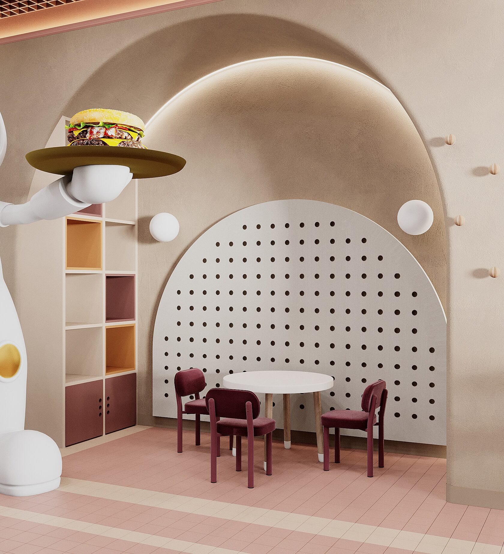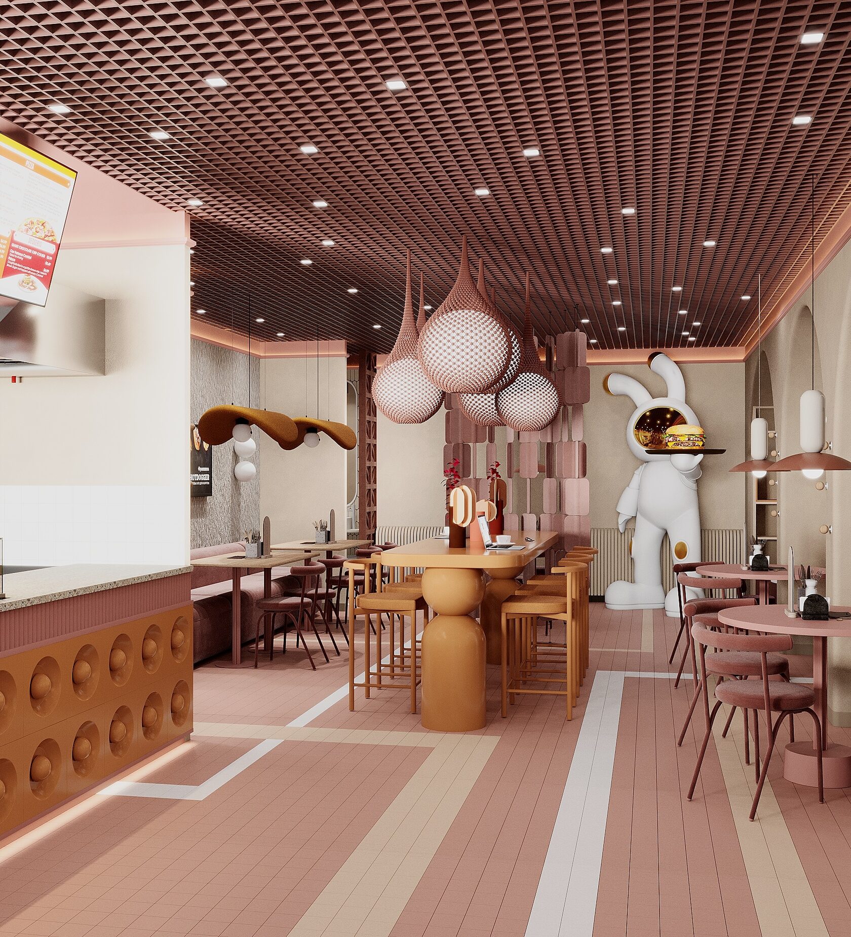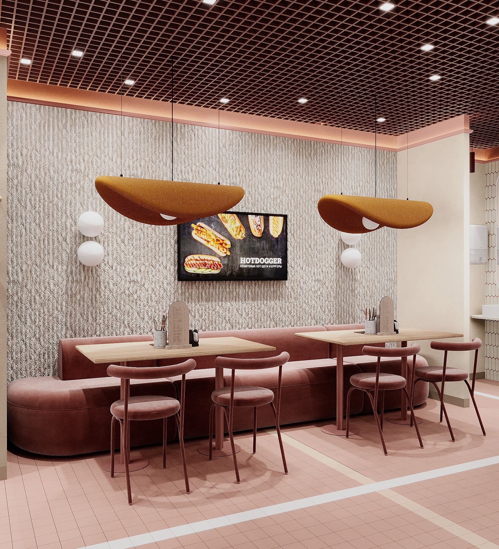 Итог: Результатом стал интерьер, который не только полностью соответствует высоким требованиям премиального формата, но и предлагает гостям совершенно новый, захватывающий визуальный и тактильный опыт. Проект успешно утвердил новый стандарт для заведений быстрого питания, демонстрируя, как дизайн может преобразить привычное.