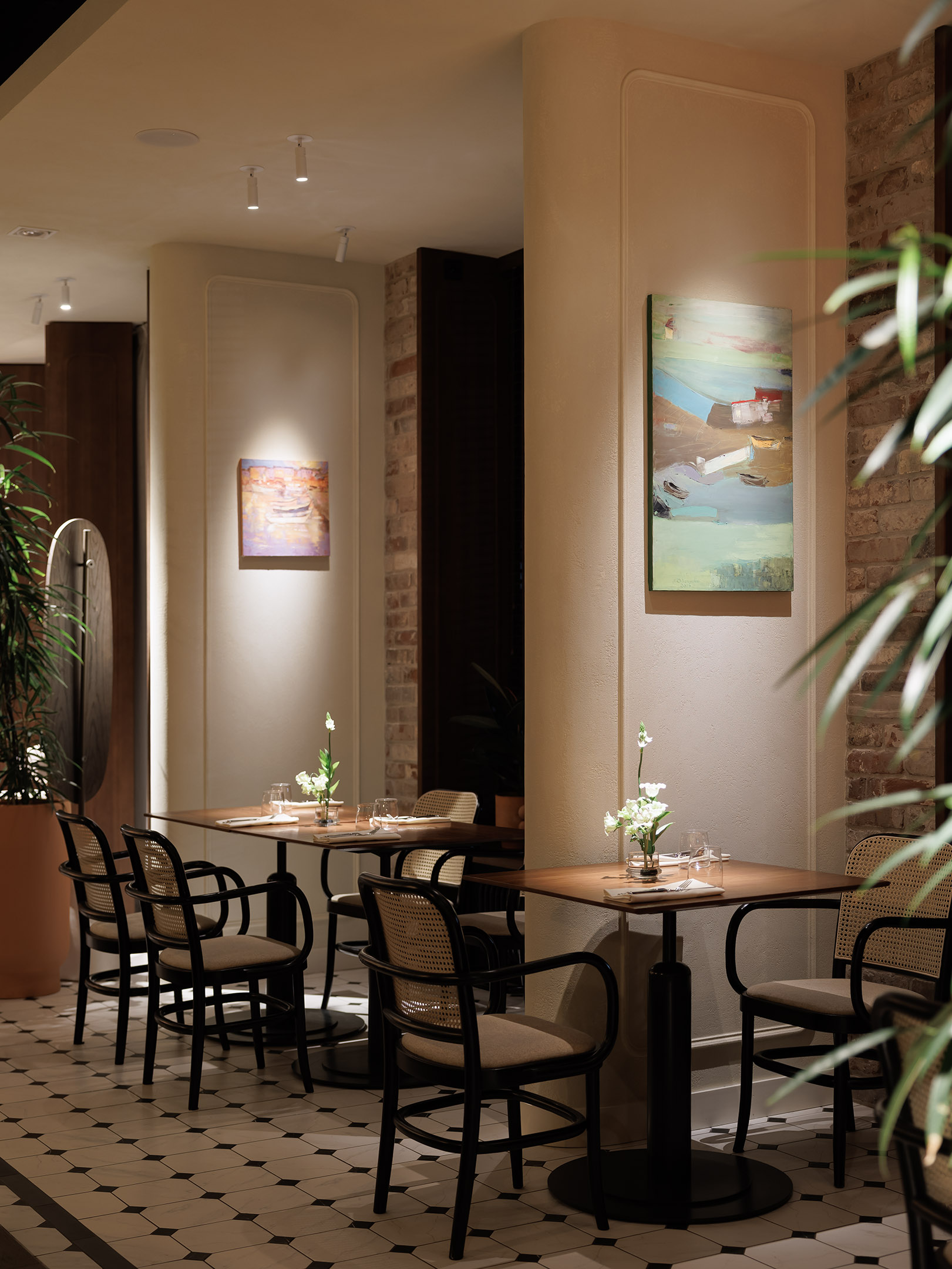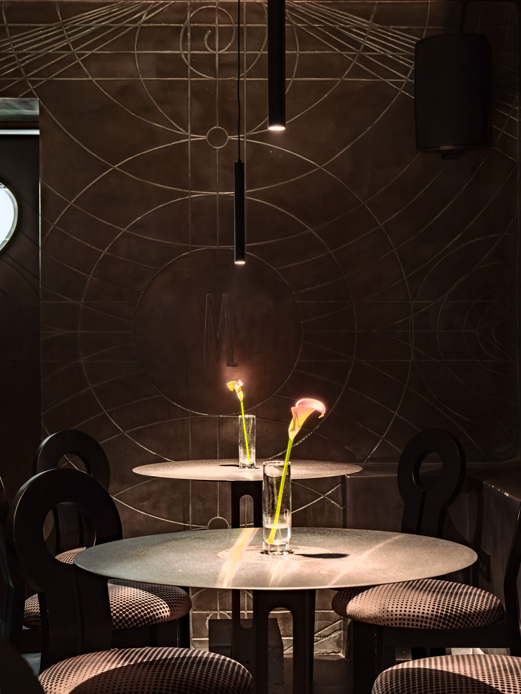 Концепция: Основой концепции стало исследование аудитории и района, а также привязка к местным культурным и архитектурным элементам: Кремль, Храм Христа Спасителя, Москва-сити. Пространство сочетает несколько архетипов — мудреца, искателя, творца и эстета. Бистро меняется по сезонам: обновляются блюда, ингредиенты и детали декора, включая цветовые акценты, велюровые драпировки и освещение.