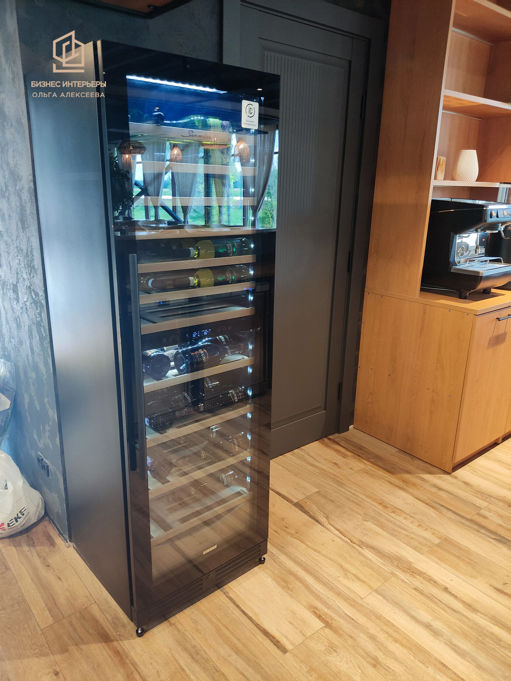 Барная стойка (южная часть помещения) выполняет двойную функцию: место для обслуживания и хранения (полки для стеклянной посуды и алкоголя);