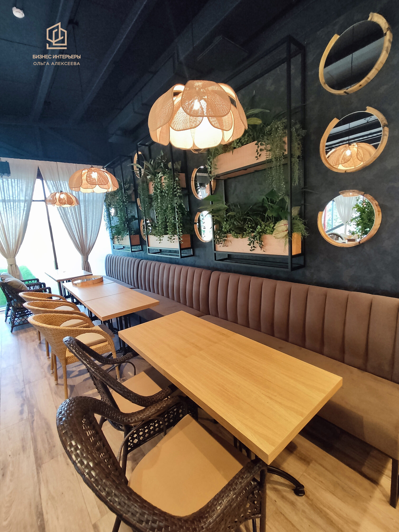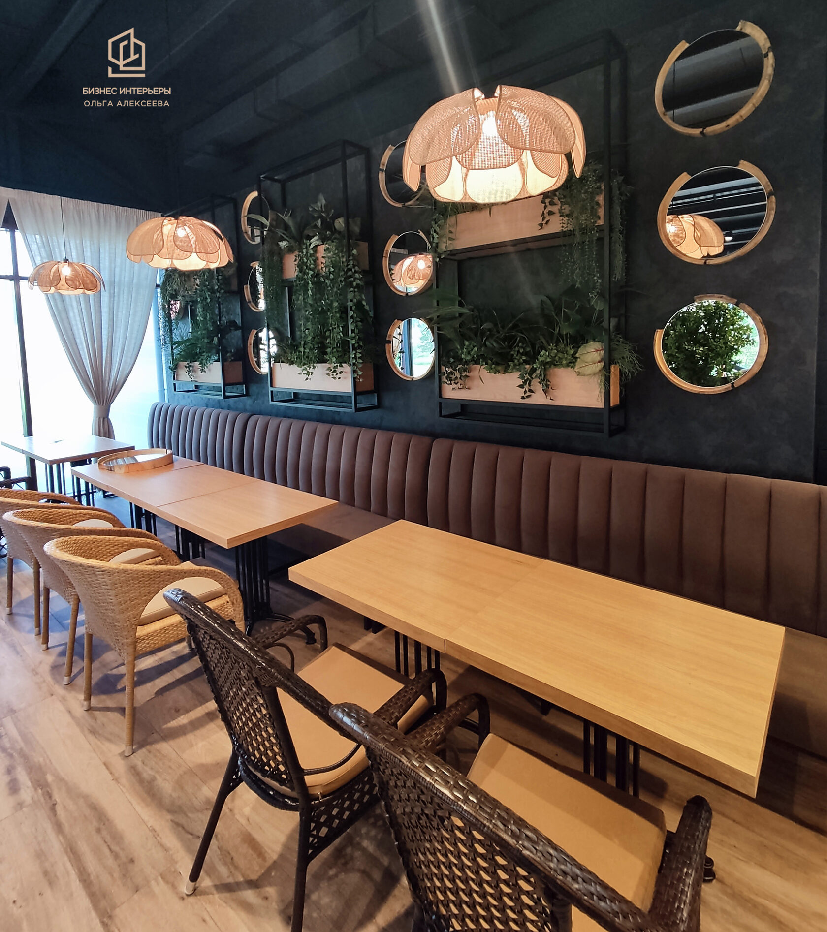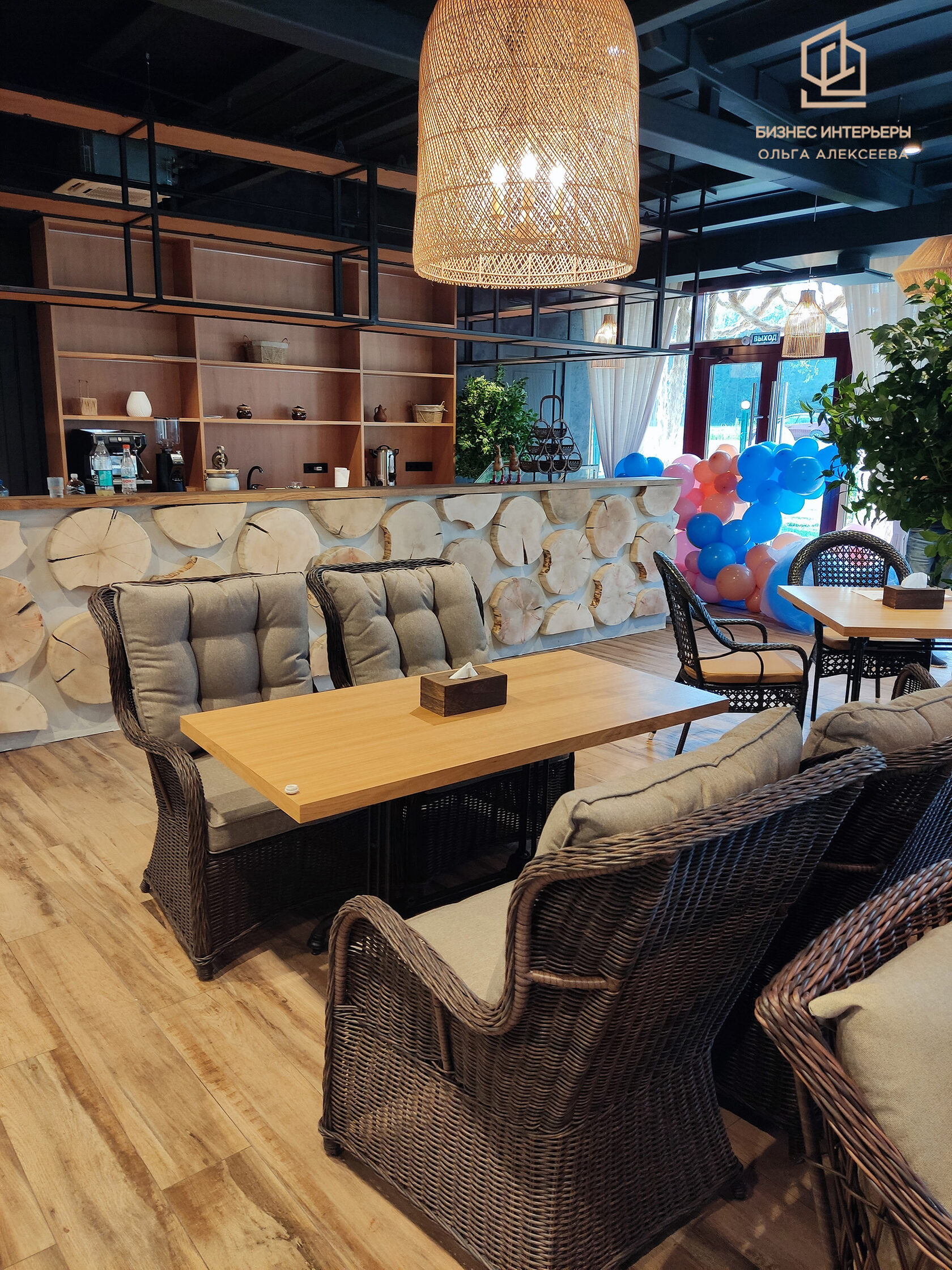 Итог: В результате создан не просто интерьер кофейни, а целостное пространство, где современный ритм жизни удивительным образом сочетается с умиротворяющей атмосферой Бали и неповторимым характером Сибири. Это место силы и вдохновения, предлагающее гостям уникальный опыт для общения и релаксации.