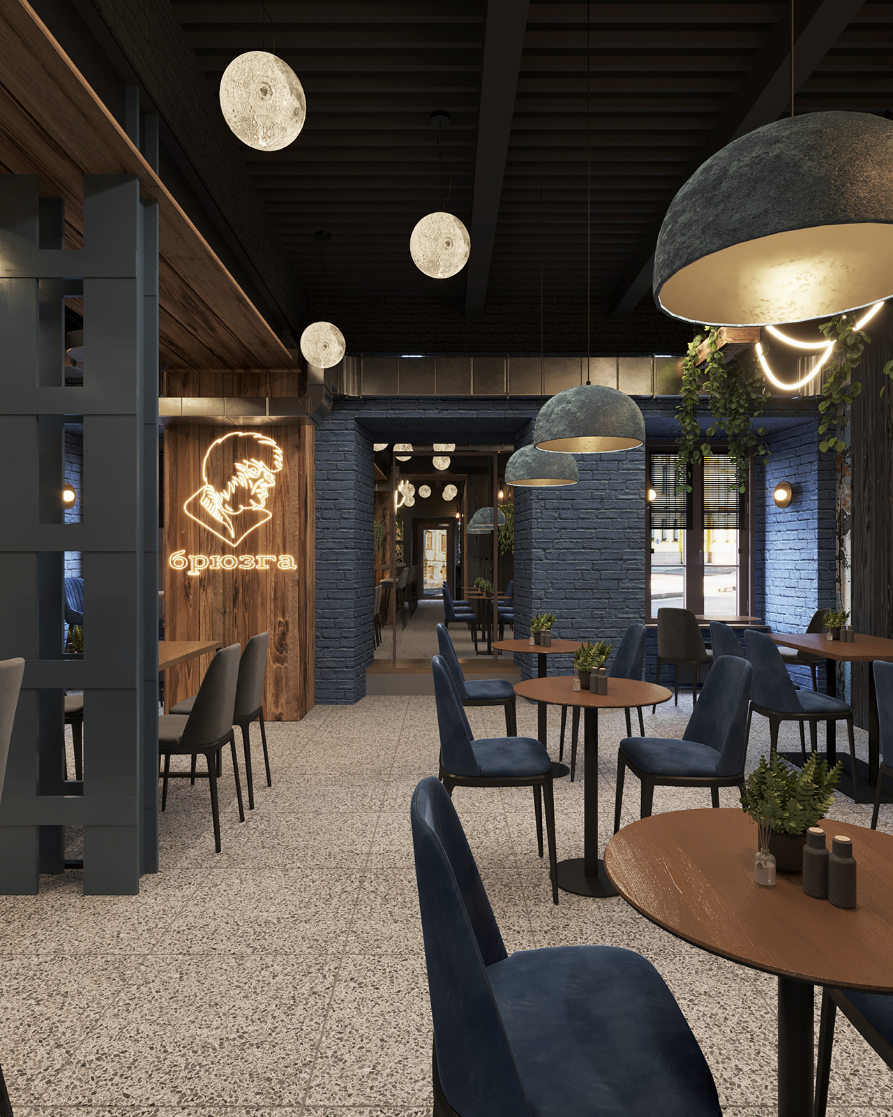 Итог: Результатом стало создание нетривиального пространства, которое располагает к глубоким беседам и неформальному досугу. Интерьер бара «Городской Брюзга» воплощает идею места силы, где каждая деталь призвана стимулировать общение и дарить неповторимые эмоции, делая его идеальной площадкой для тех, кто ценит эстетику и атмосферу.