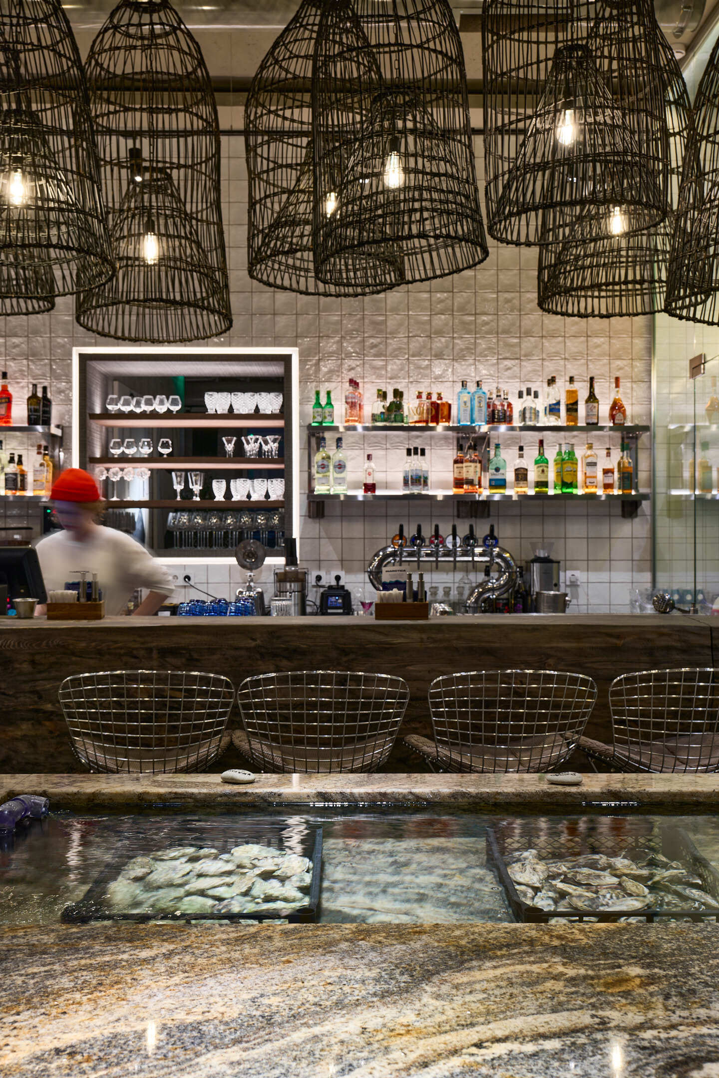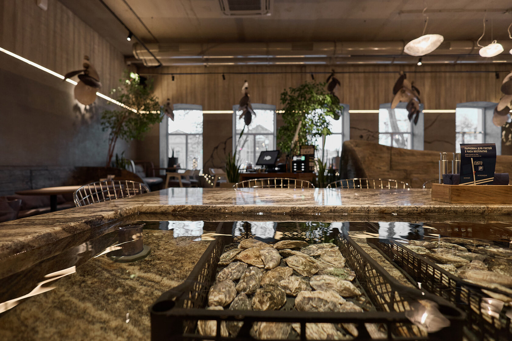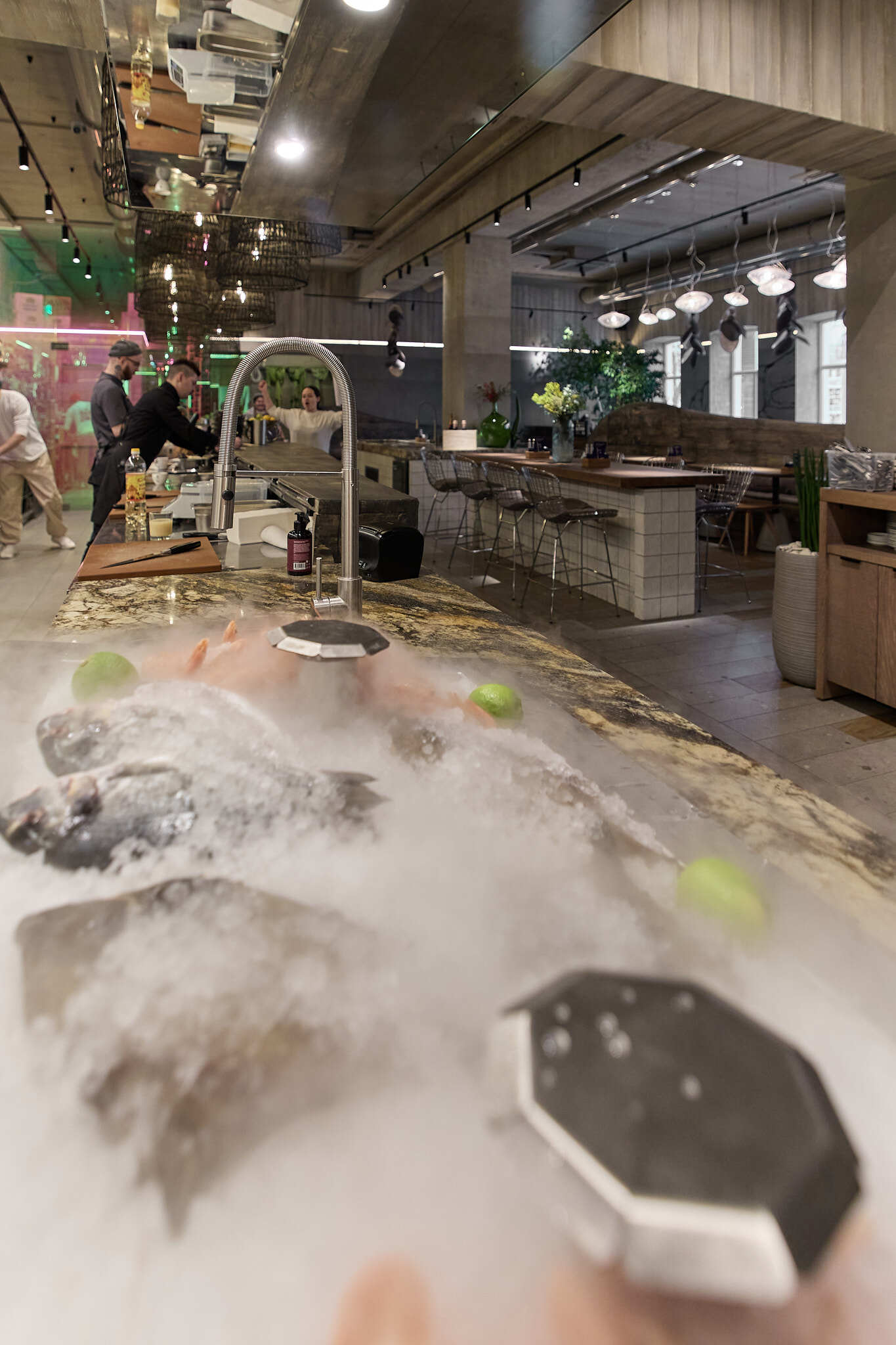 Этот проект дизайна ресторана «Кусто» переносит посетителей в сердце портового города, воссоздавая атмосферу оживленного рыбного рынка. Заведение в Екатеринбурге предлагает неформальную обстановку, где гости могут почувствовать морской ветер, аромат свежего улова и непринужденно пообщаться, словно на берегу моря.