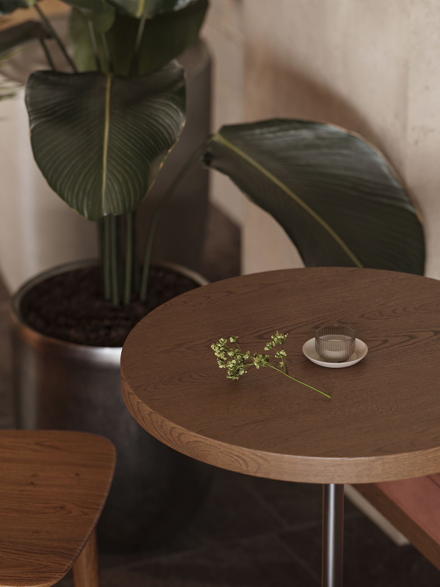 Площадь оставалась прежней, и задача заключалась в том, чтобы мягко встроить кофейню в уже узнаваемый имидж магазина, не теряя уникального настроения бренда.