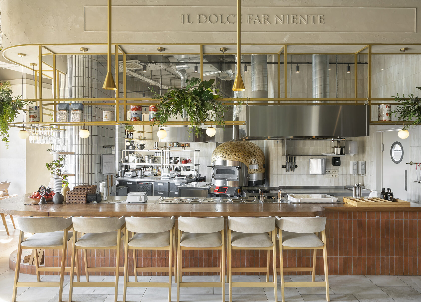 Концепция: Создать пространство, полностью погружающее в атмосферу Италии через гастрономию, архитектуру и детали интерьера. Инженерные решения, художественные элементы и натуральные материалы формируют многослойное пространство, где каждая деталь рассказывает историю побережья и культуры страны.
