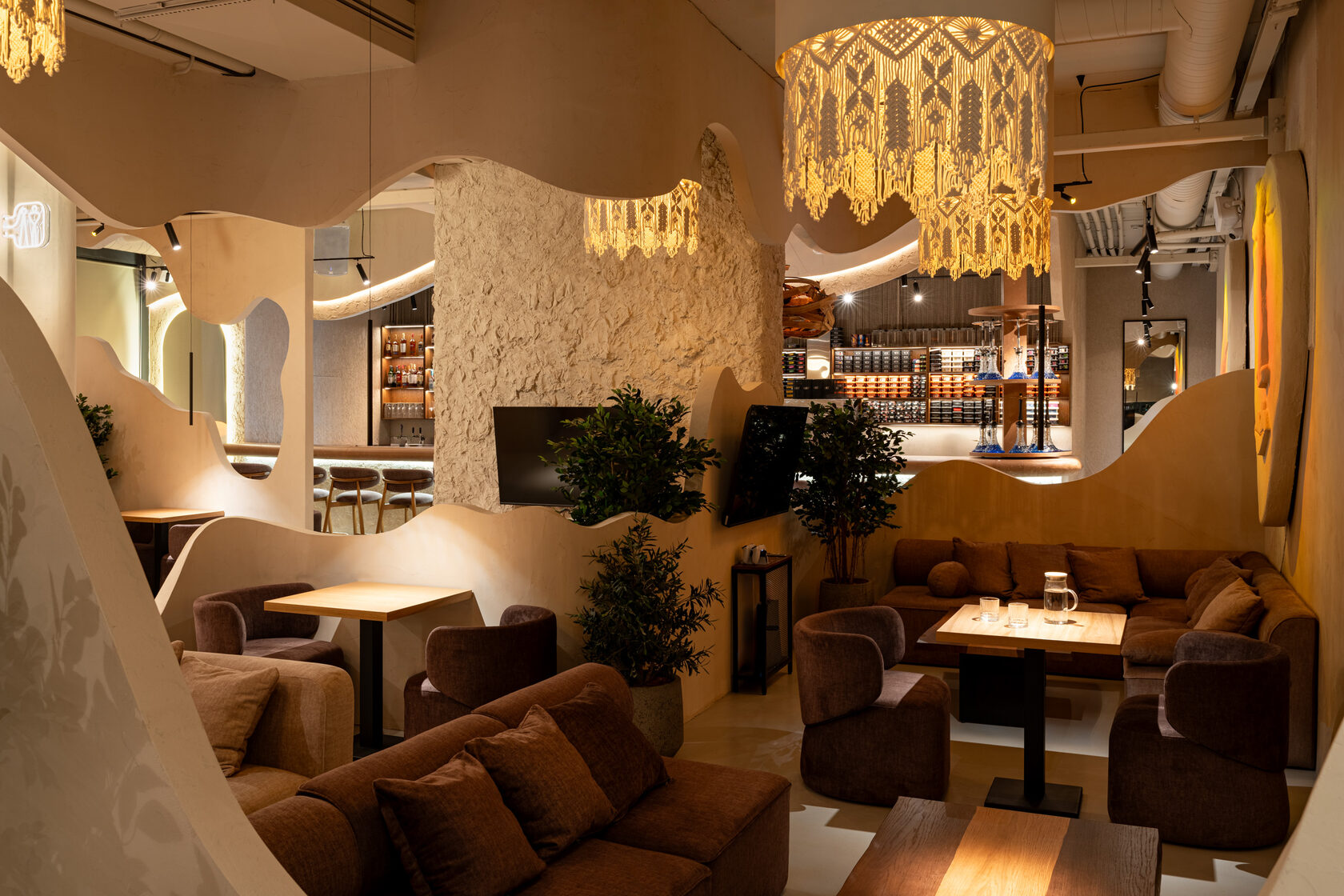 Проект ресторана лаунж KAEF, реализованный в июле 2025 года, представляет собой тщательно проработанное пространство, призванное создать атмосферу уюта и уединения. Отличительными чертами стали эксклюзивные элементы декора и мебели, выполненные вручную, что придает интерьеру неповторимый характер и особое настроение для гостей.