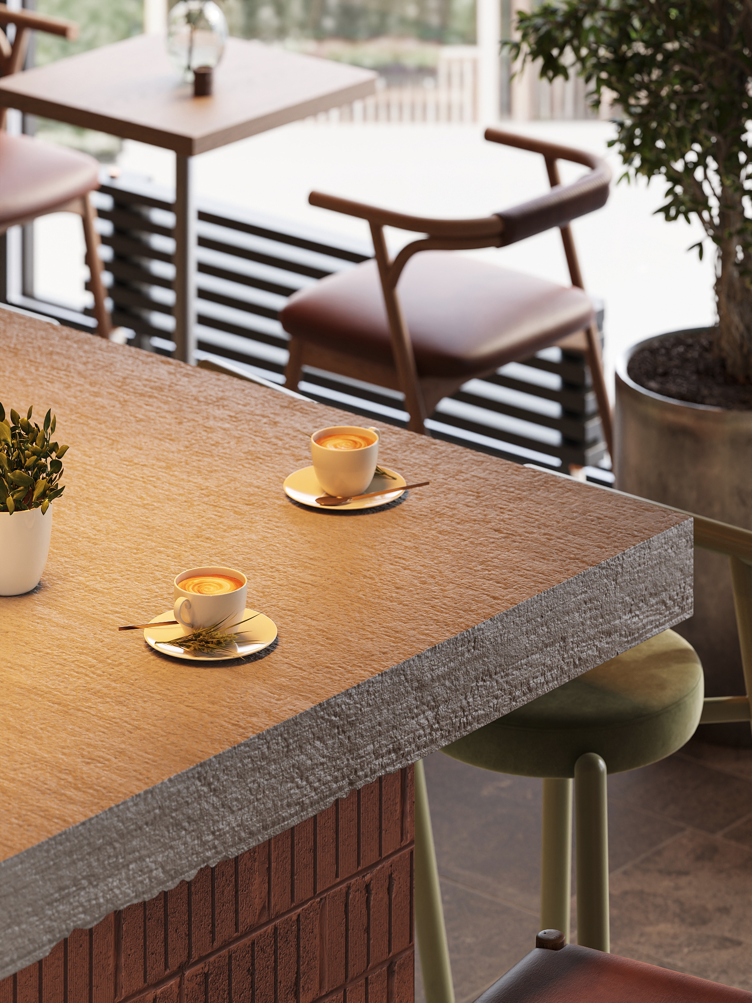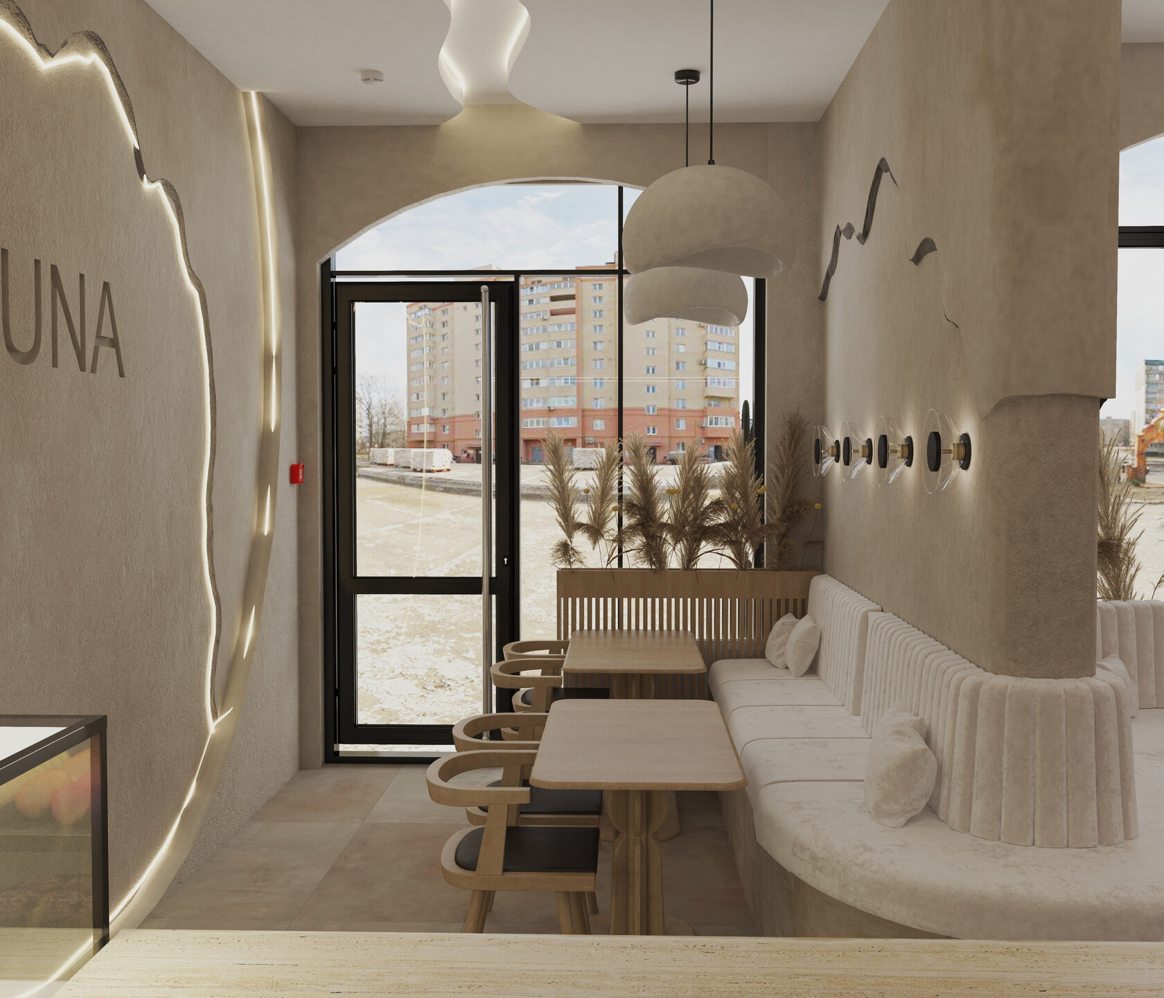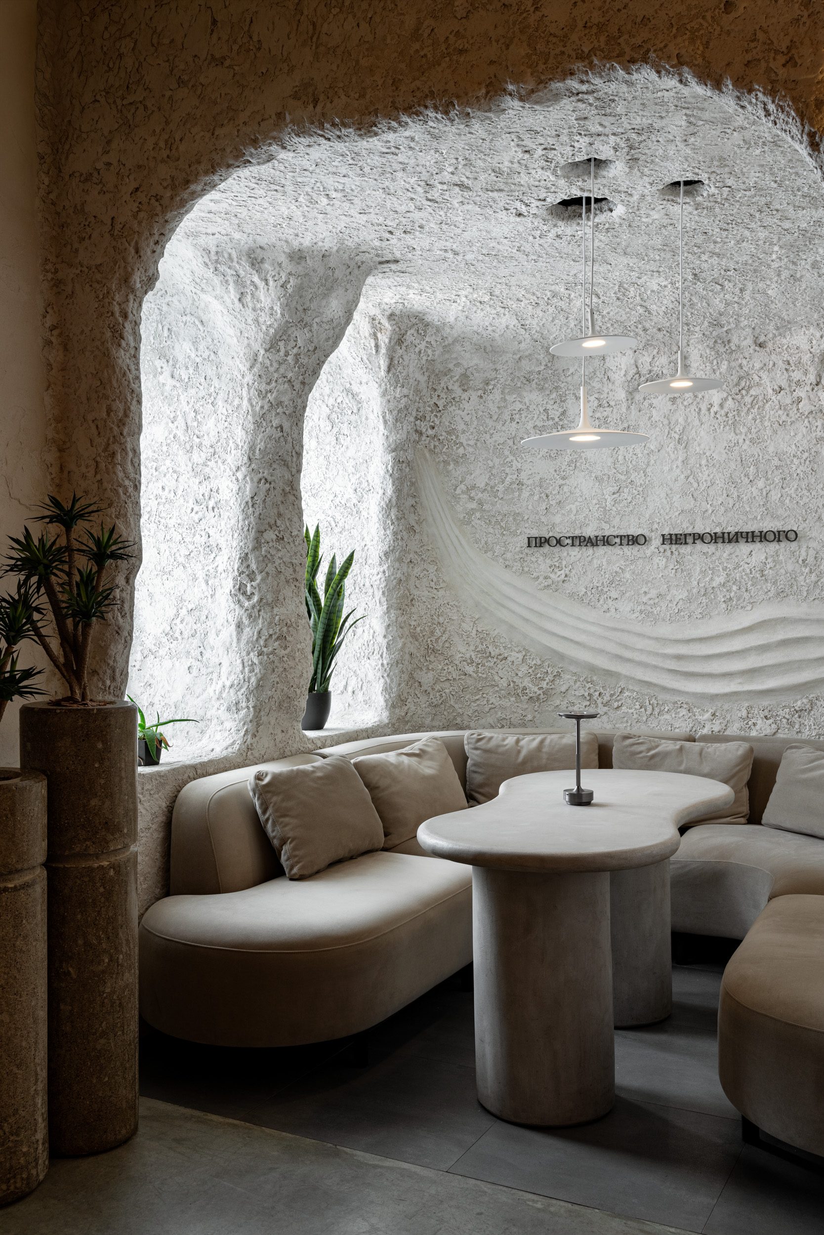 Итог: Результатом стало создание действительно уникального и единственного в своем роде объекта. Это кафе не просто заведение, а продуманная до мельчайших деталей дизайнерская инсталляция, предлагающая посетителям незабываемый сенсорный опыт и полное погружение в атмосферу природного величия и спокойствия пустыни.