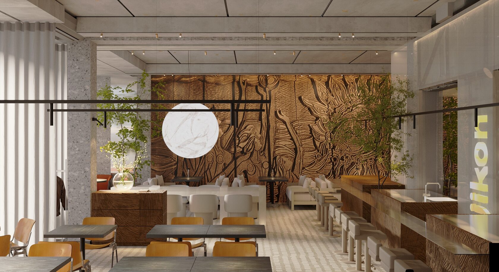 Jikon — это неформальное кафе в самом центре Краснодара, уникальность которого заключается в дерзком слиянии брутального советского конструктивизма и передовых современных материалов. Интерьер спроектирован для бесшовной трансформации: от атмосферы уютного дневного заведения с изысканной домашней пастой до эпицентра динамичных ночных вечеринок. Проект также масштабировал пространство, объединив кафе с существующими магазином и кофейней Jikon посредством общей, значительно расширенной террасы. Система адаптивного освещения обеспечивает идеальную атмосферу, адаптируясь под время суток и настроение.