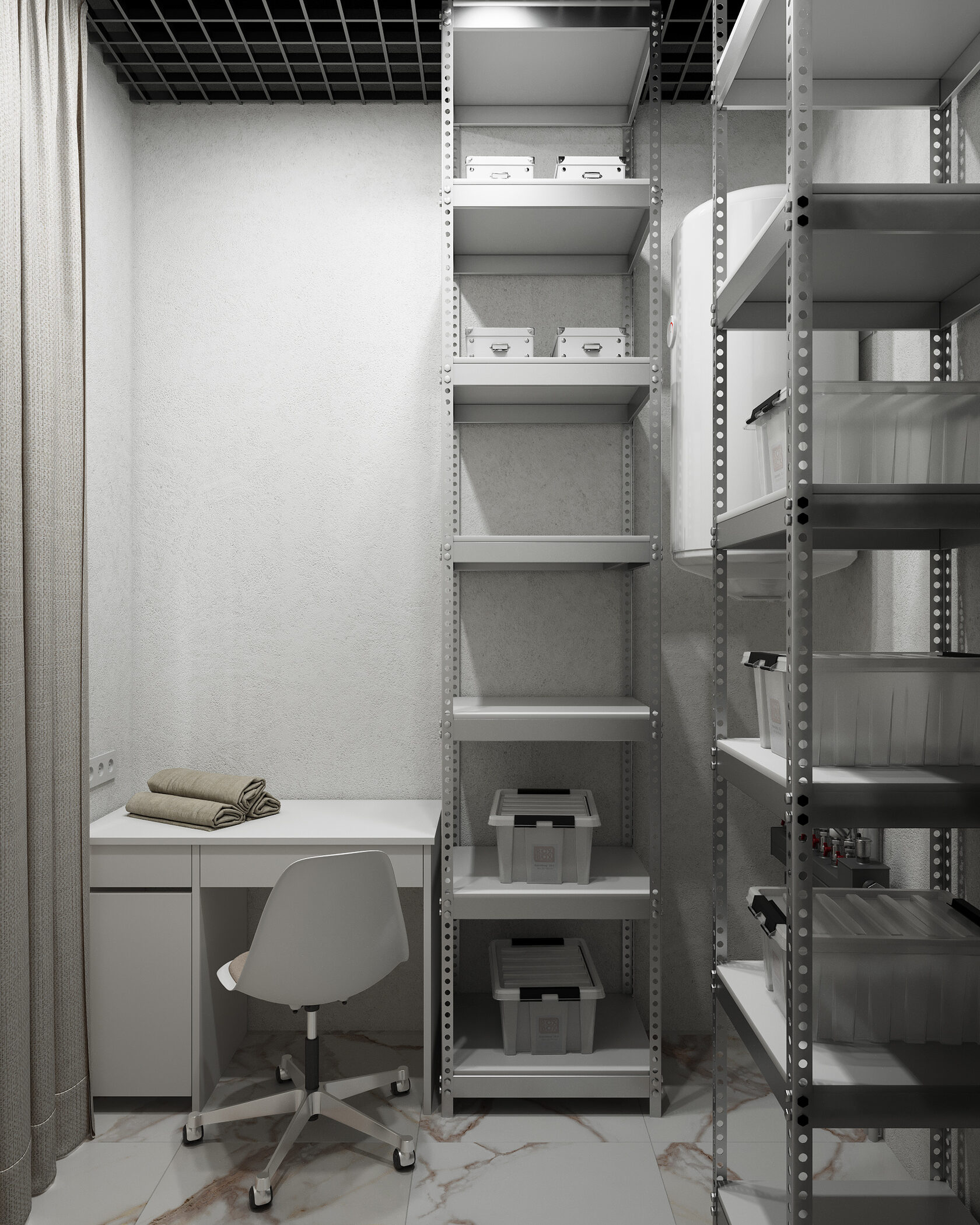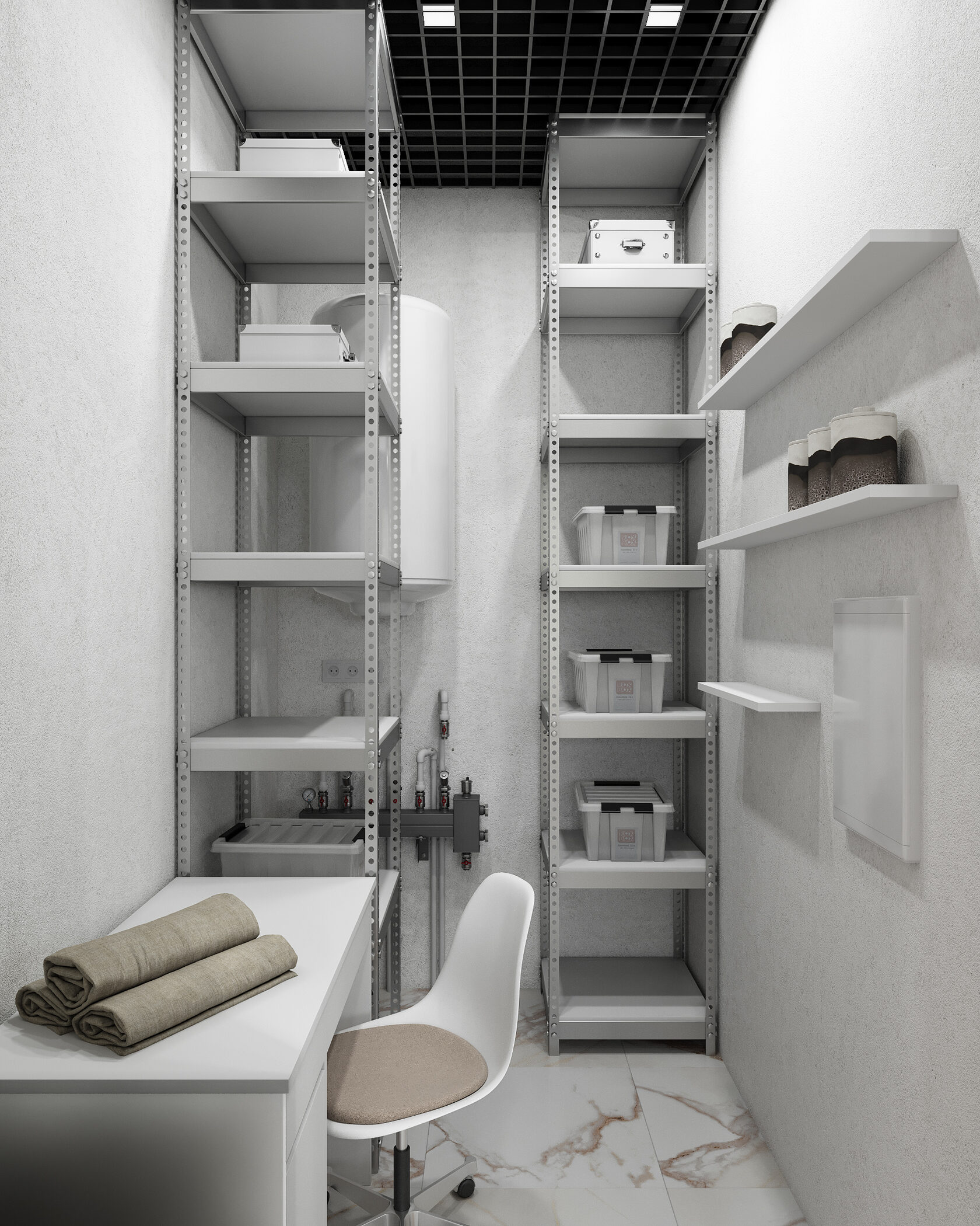 «Атлас еды» — это гибрид магазина и кафе, объединяющий удобство, стиль и заботу о посетителе. Ассортимент широк: от ингредиентов для дома до блюд, которые можно съесть здесь или взять с собой. Несмотря на ограниченную площадь, здесь нашлось место и для полноценной современной кухни, и для компактного склада, и для санузла для гостей.