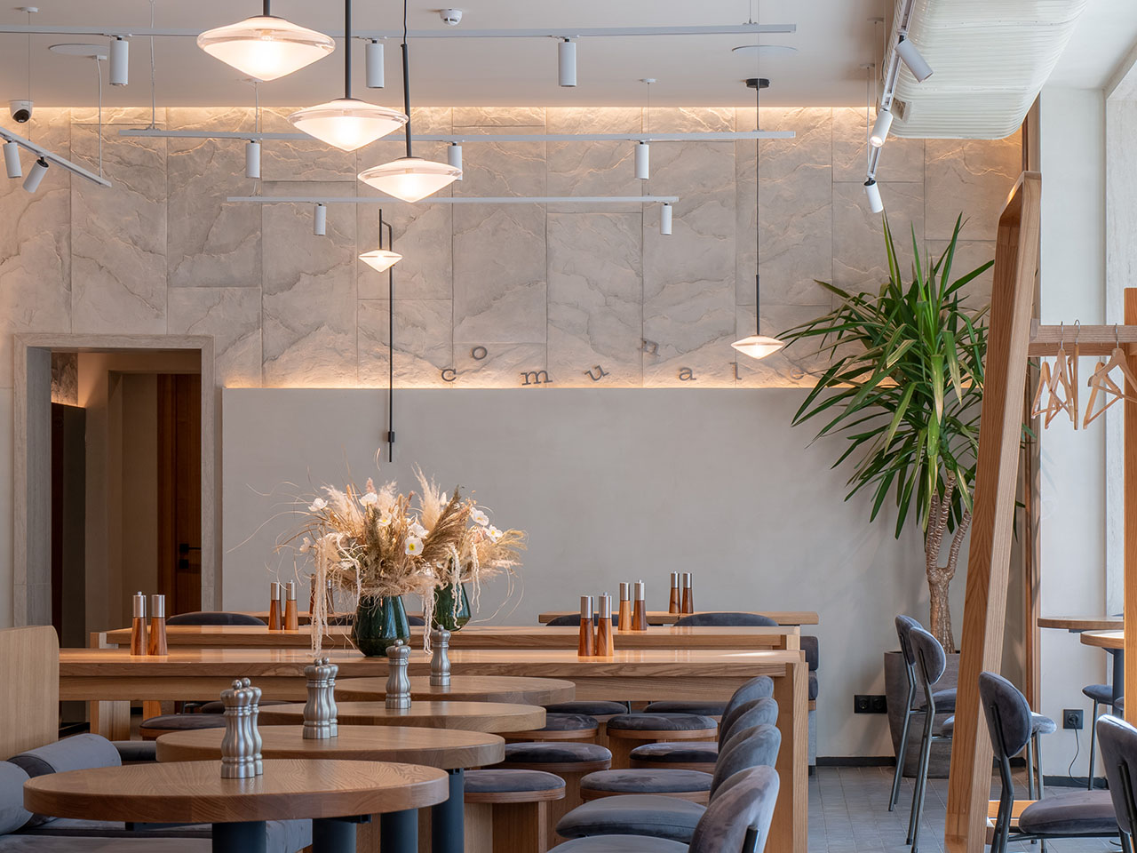 Итог: Проект Communale успешно реализовал идею современного городского ресторана, где комфорт, функциональность и изысканный дизайн создают уникальную атмосферу. Это место, где можно насладиться гастрономией в окружении продуманной эстетики, идеально подходящее для тех, кто ценит время и не приемлет компромиссов в качестве.