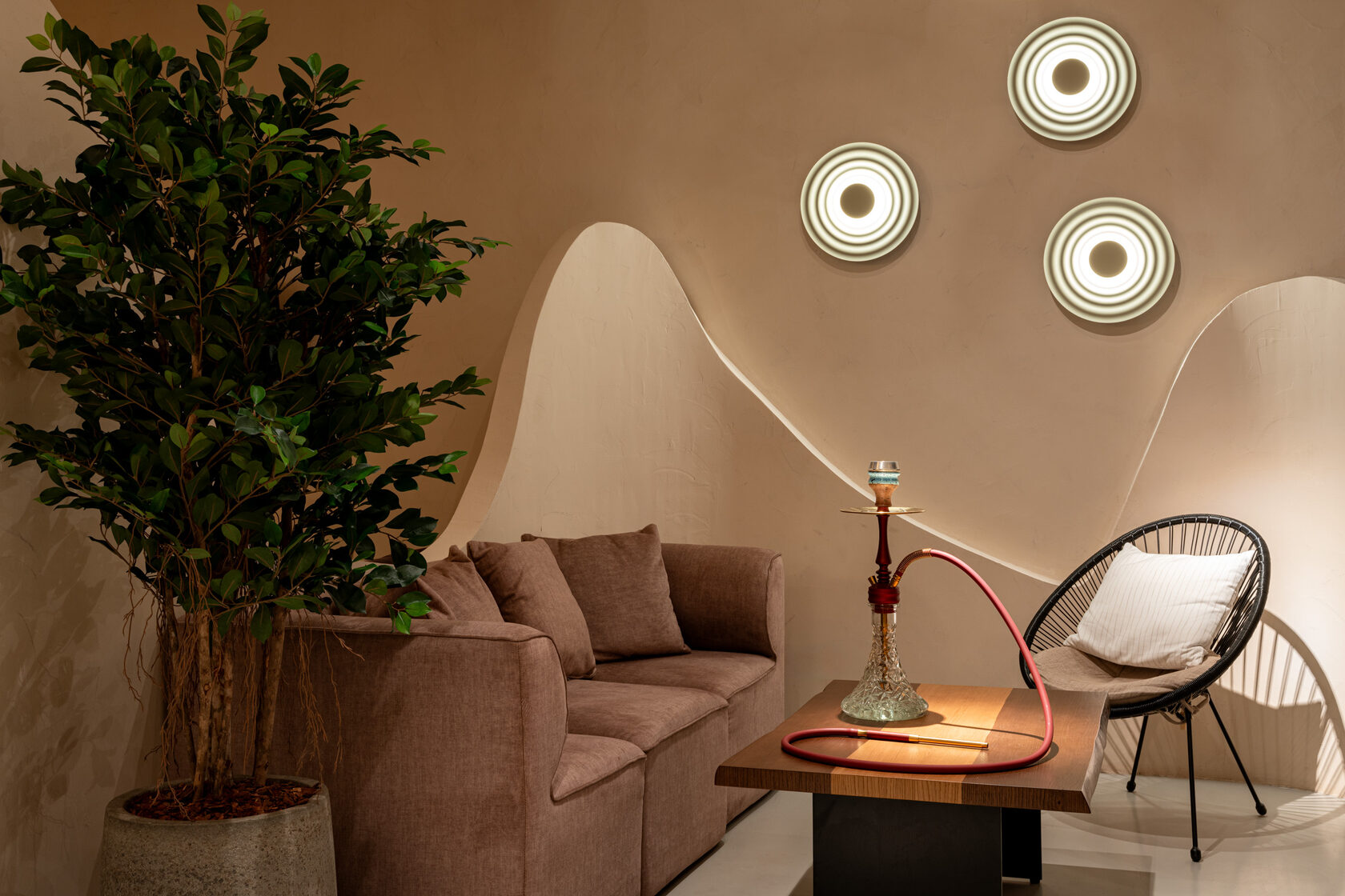 Итог: Результатом годовой работы стало создание уникального, индивидуального пространства, где каждая деталь продумана для комфорта и эстетического наслаждения гостей. Ресторан лаунж KAEF успешно функционирует, предлагая посетителям не просто место для отдыха, а полноценное атмосферное переживание, подчеркивающее его эксклюзивность и высокий уровень гостеприимства.