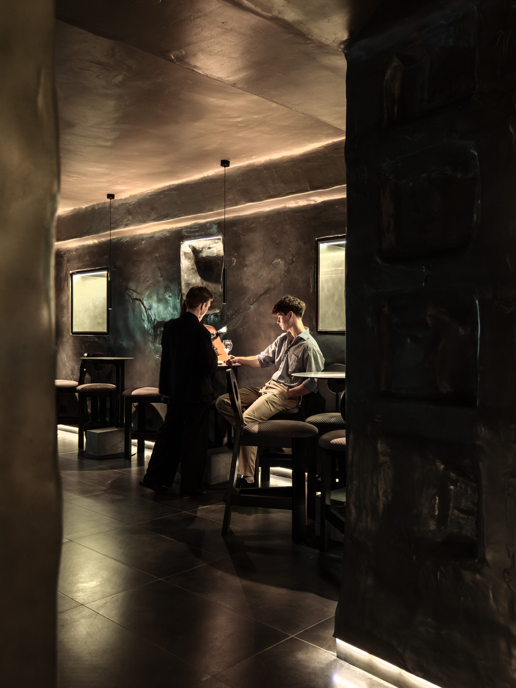 Интерьер этого бара — это не просто дизайн, а манифест. Пространство, в котором каждый изгиб, каждый штрих говорит о свободе, идентичности и памяти. Это бар, в котором материализована тоска по подлинному «я» — через камень, дерево и витражи.