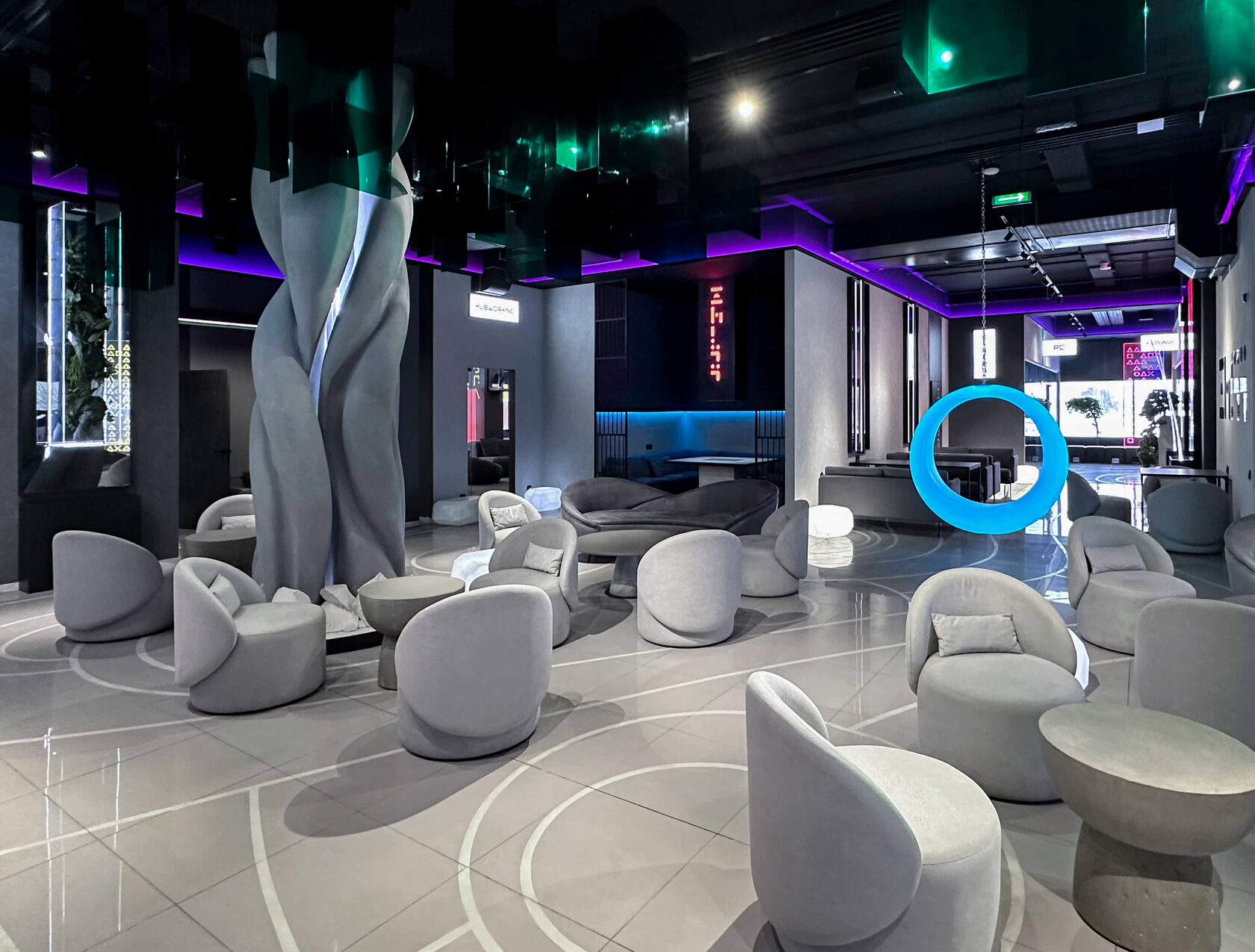 Итог: KUB становится новой точкой притяжения для молодежи и ценителей технологий: место, где можно играть, отдыхать, творить и погружаться в атмосферу футуристического мира. Дизайн SETUS Design обеспечивает технологичность, комфорт и уникальный опыт для всех посетителей.