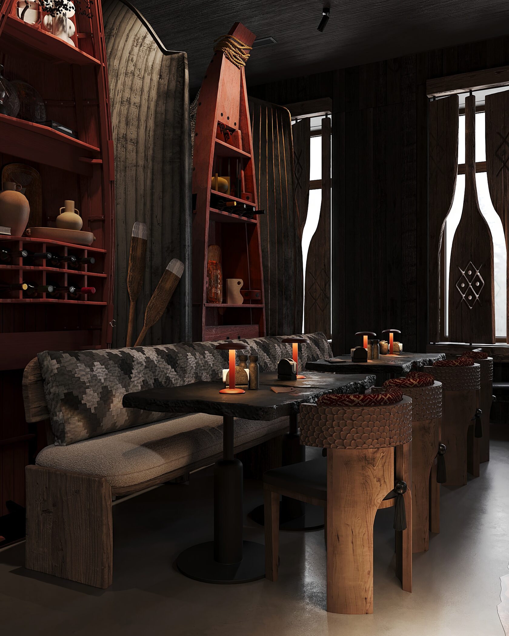 Ресторан "Сундук" — это уникальный проект, где старо-русский стиль переосмыслен через призму современного дизайна. Основной концепцией стало создание пространства, которое отражает богатство русских традиций, но при этом остается актуальным и привлекательным для современного гостя.