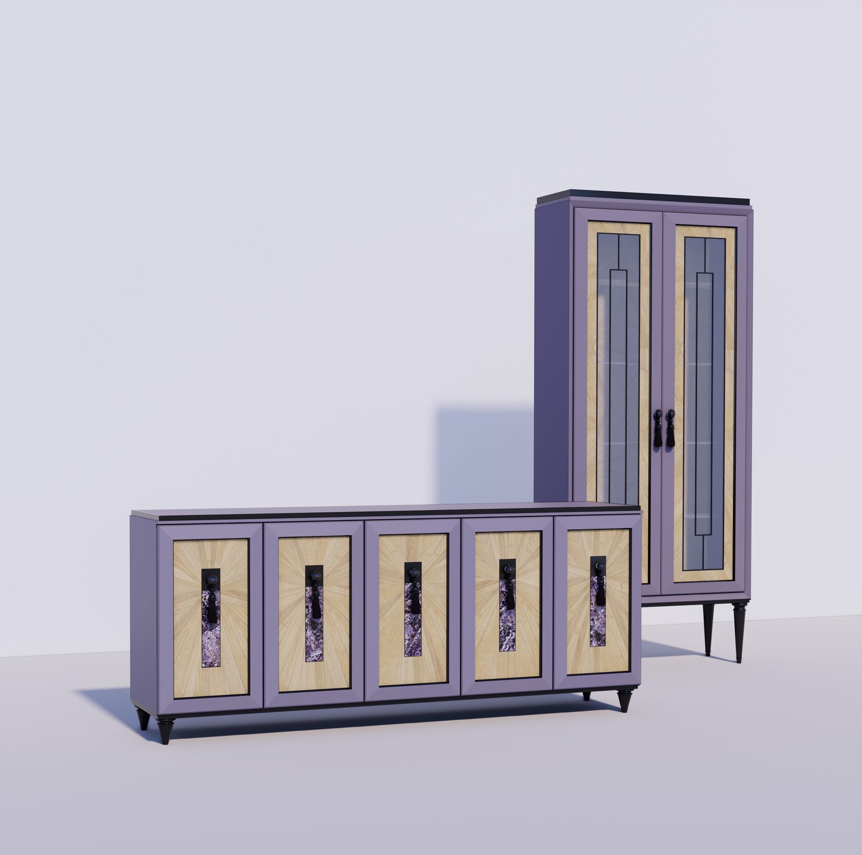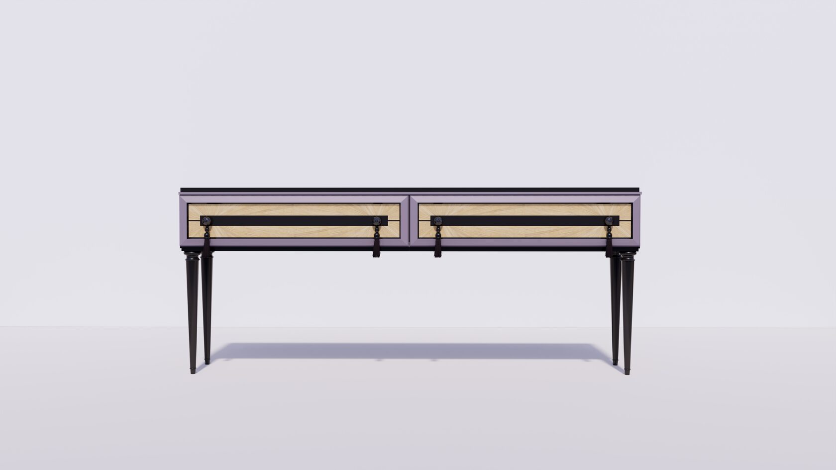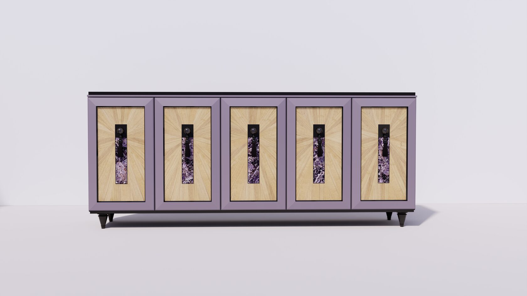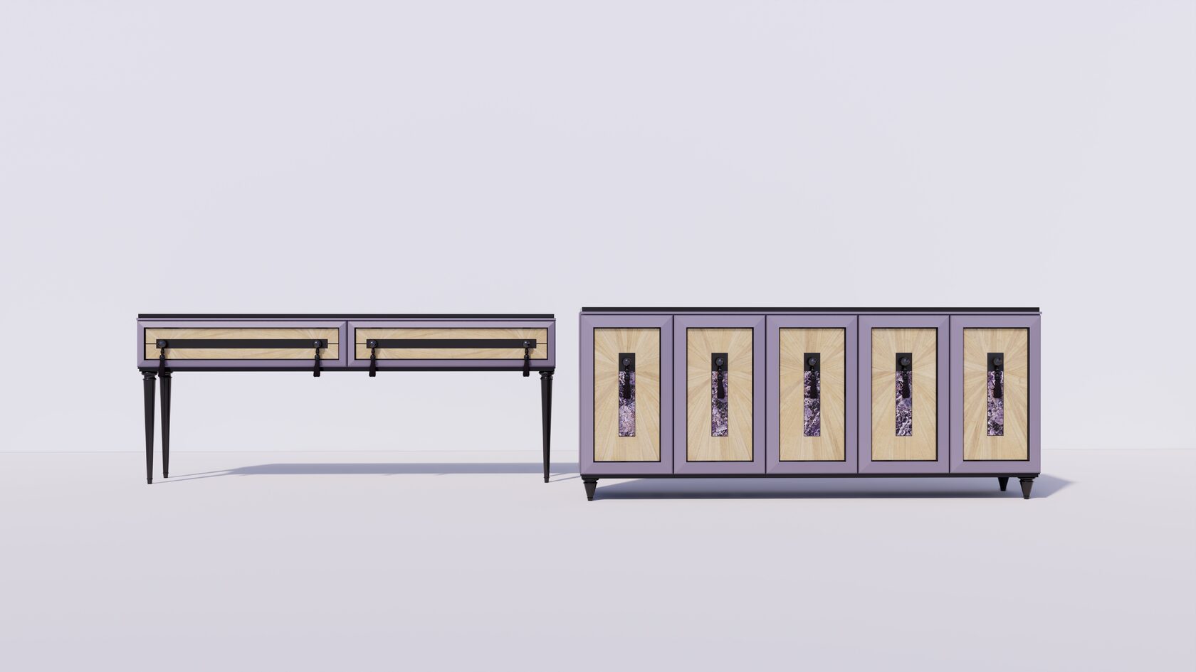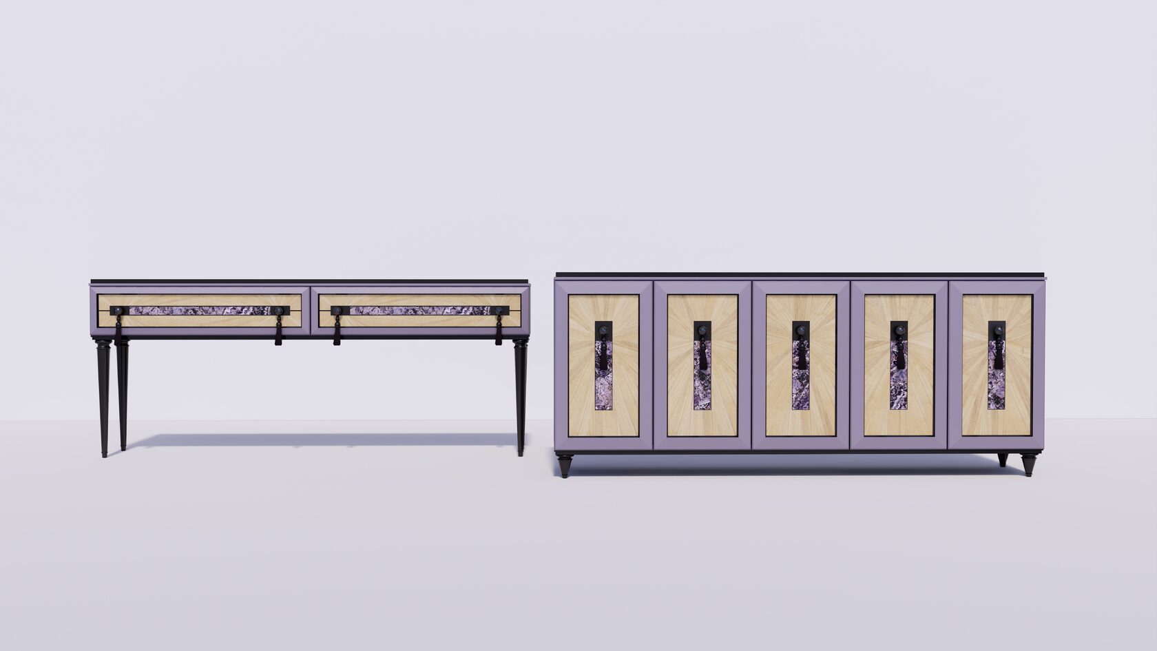 Концепция: Основная идея проекта — передача необъятности и динамики вселенной через авторские дизайнерские решения. Центральным элементом является инновационная радиальная раскладка шпона «солнышко» со смещенным центром, символизирующая вспышку света в космической пустоте. Дополнительное измерение коллекции придают инкрустации аметиста, служащие метафорой бесконечной глубины космоса и притягивающие взгляд своим таинственным мерцанием. Каждый предмет коллекции — это тщательно продуманный арт-объект, филигранно объединяющий земную геометрию с космической энергией.