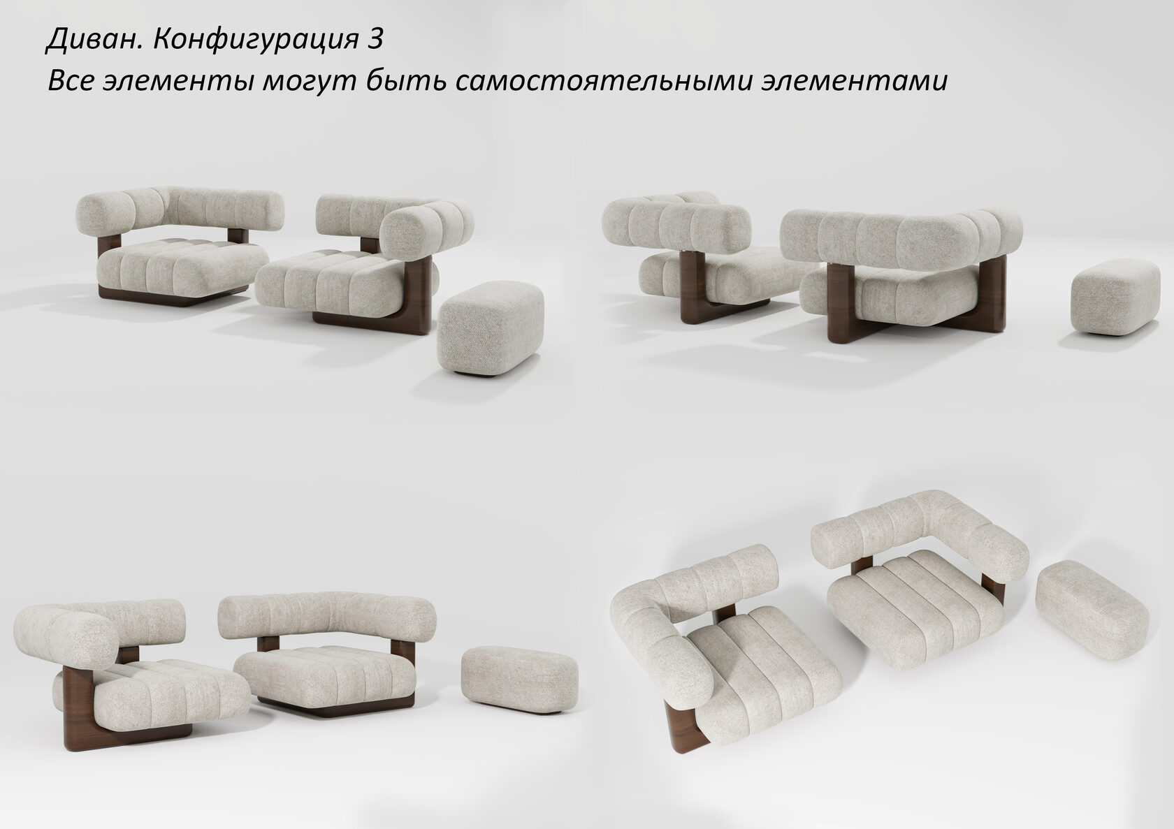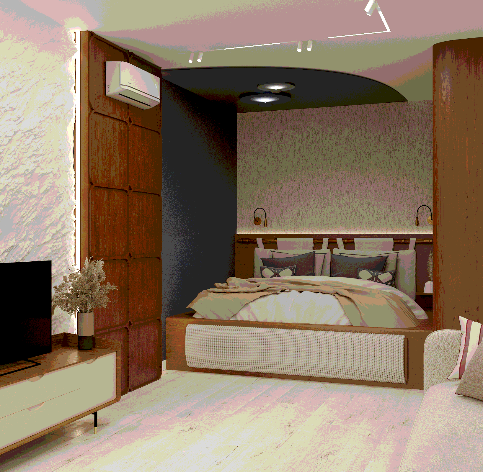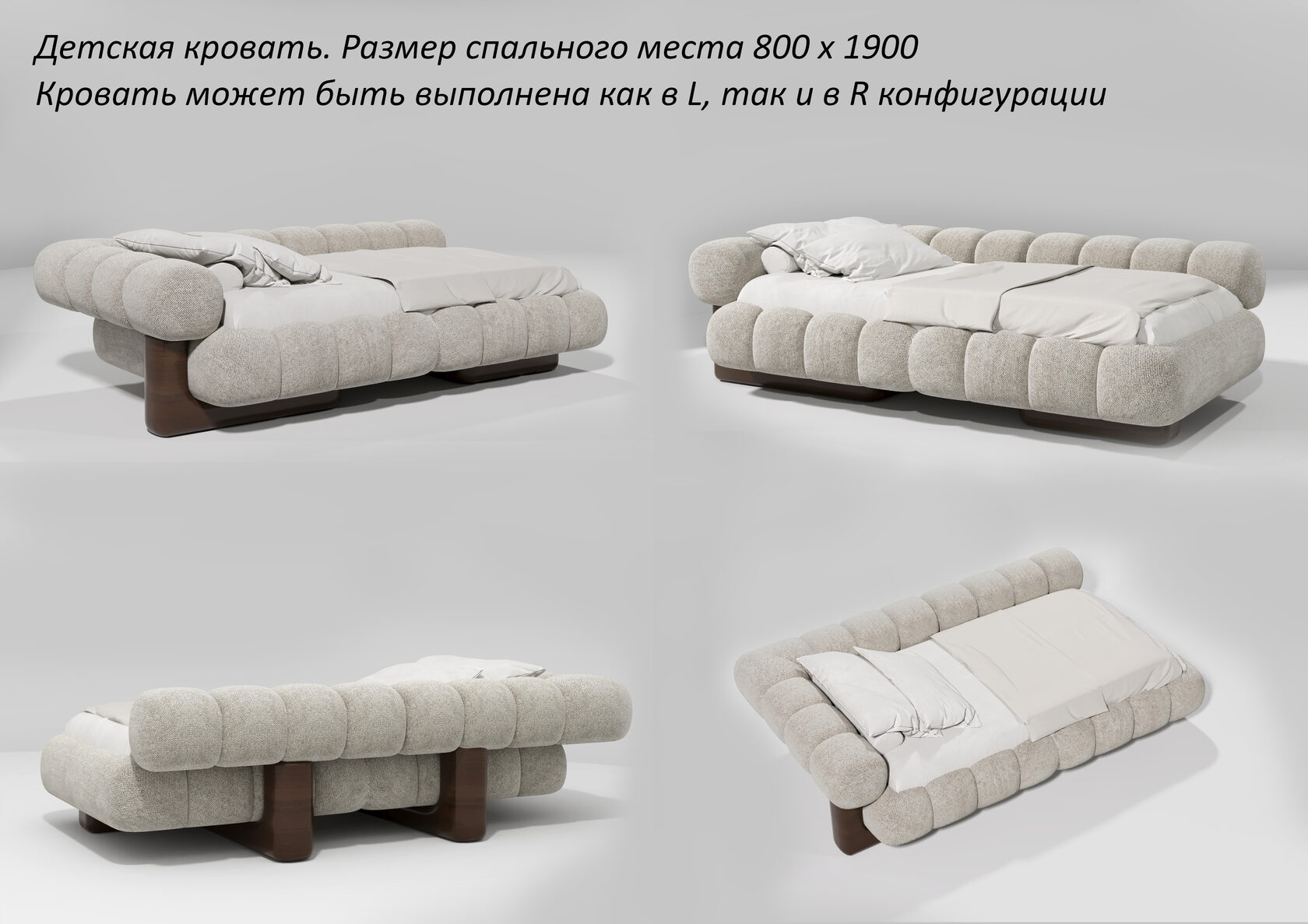 Концепция: Концепция 'YOUR BLISS' базируется на философии создания пространства, где каждая деталь способствует полному расслаблению и вдохновению. Дизайн акцентирует тактильный комфорт и визуальную мягкость, используя богатые текстильные обивки и органичные линии, дополненные элементами из натурального дерева со сложной геометрией. Инновационная модульность дивана предлагает беспрецедентную гибкость, позволяя легко трансформировать пространство, а кровати выполнены с акцентом на эффект "кокона", обеспечивая ощущение защищенности и тепла. Это слияние эстетики, функциональности и заботы о каждом члене семьи.