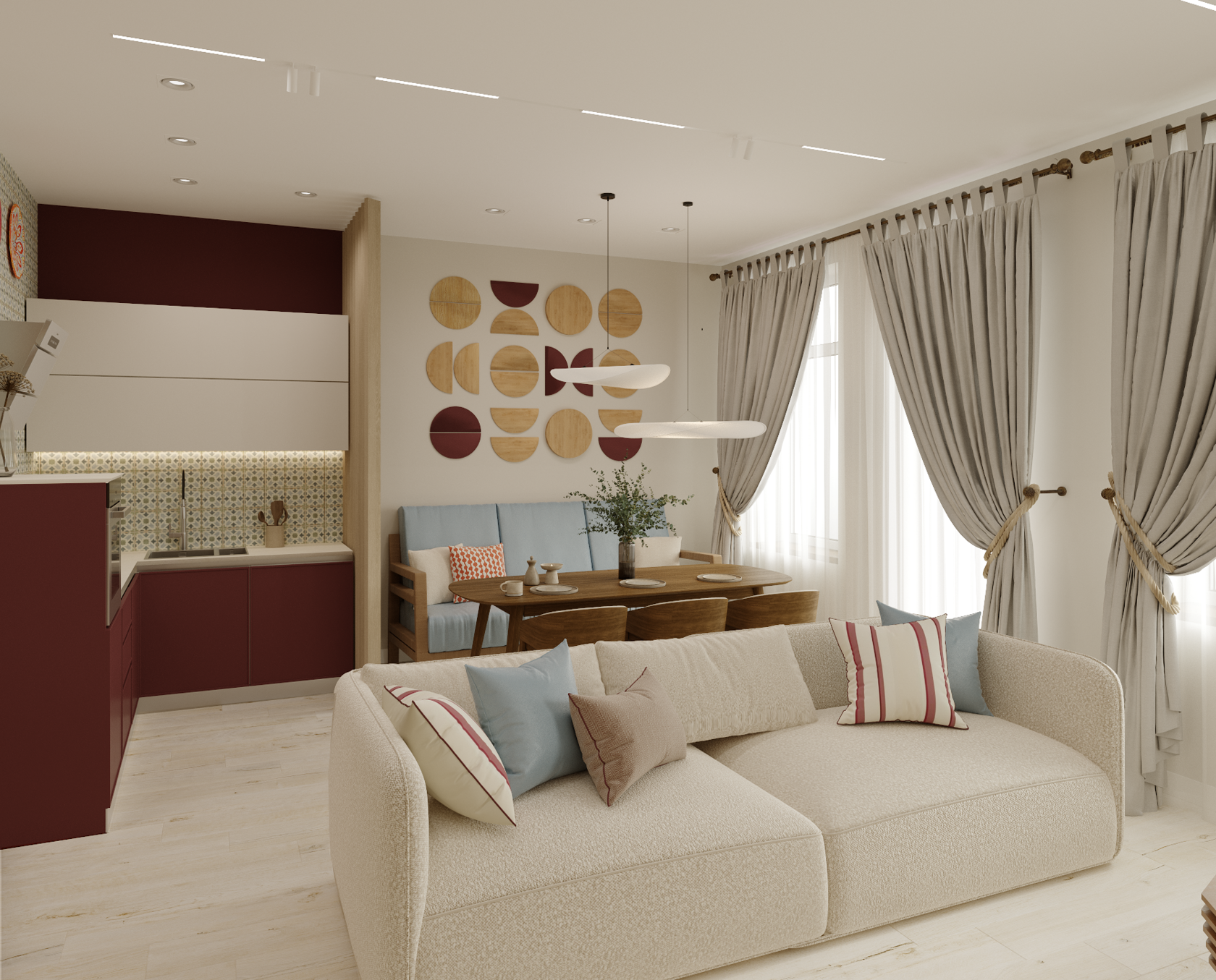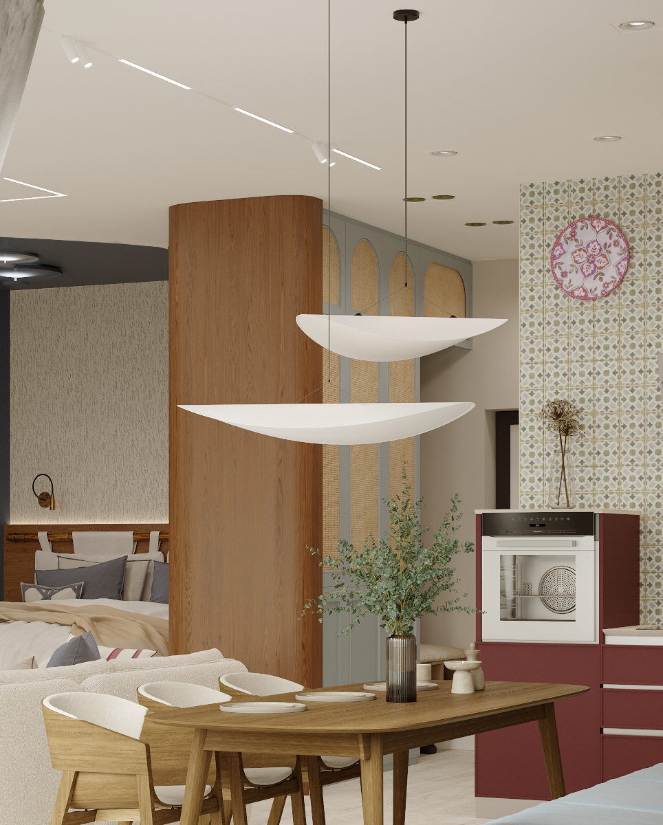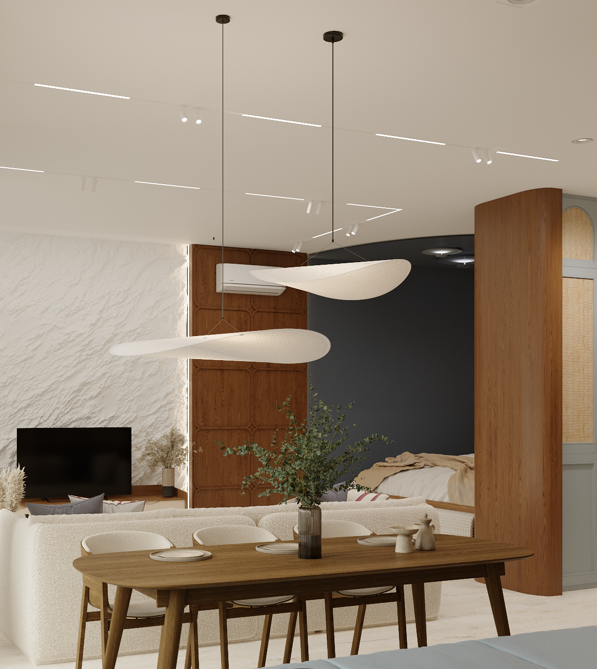 Концепция: Концепция 'YOUR BLISS' базируется на философии создания пространства, где каждая деталь способствует полному расслаблению и вдохновению. Дизайн акцентирует тактильный комфорт и визуальную мягкость, используя богатые текстильные обивки и органичные линии, дополненные элементами из натурального дерева со сложной геометрией. Инновационная модульность дивана предлагает беспрецедентную гибкость, позволяя легко трансформировать пространство, а кровати выполнены с акцентом на эффект "кокона", обеспечивая ощущение защищенности и тепла. Это слияние эстетики, функциональности и заботы о каждом члене семьи.