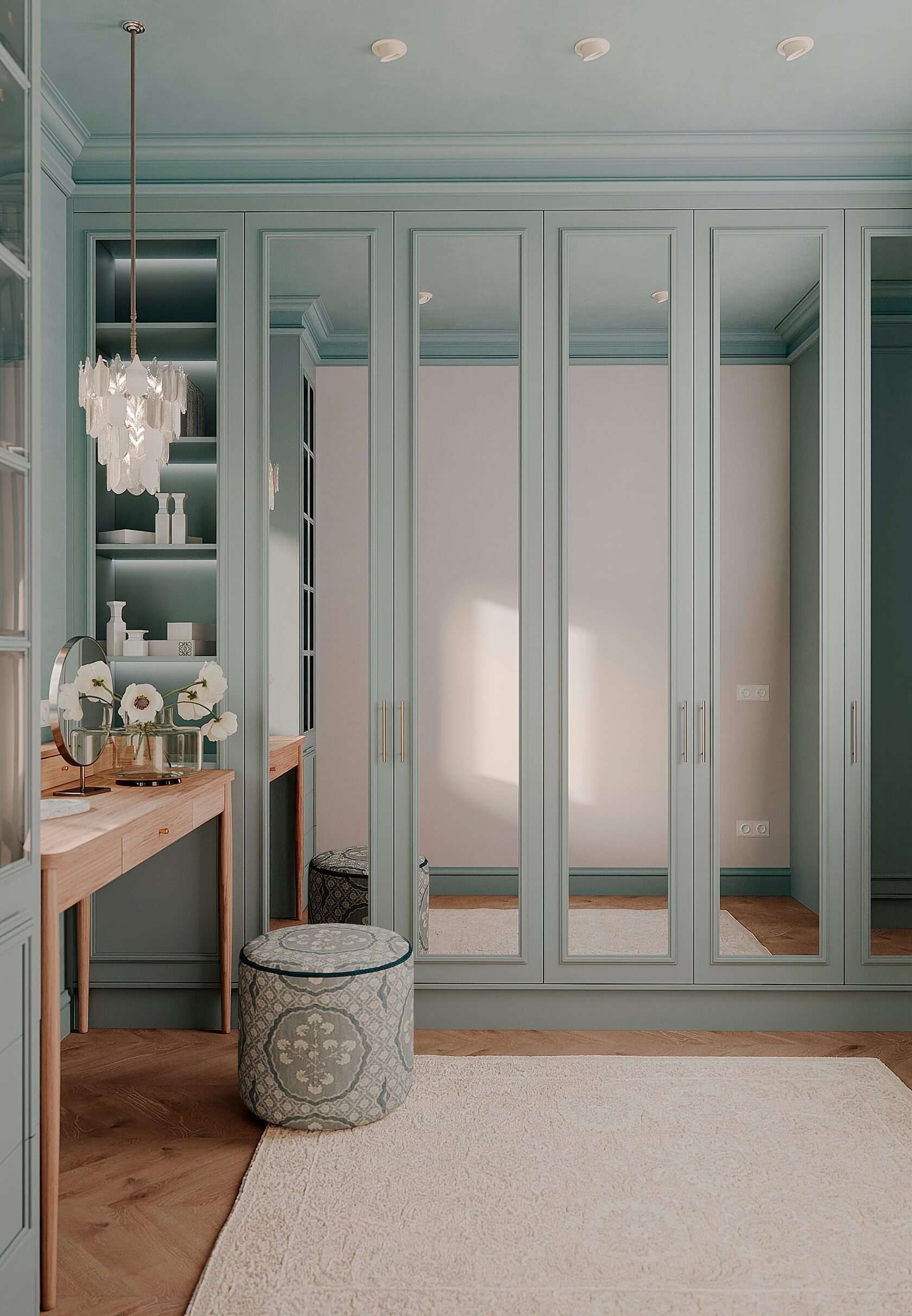 Нежная гардеробная в голубом цвете с французскими мотивами