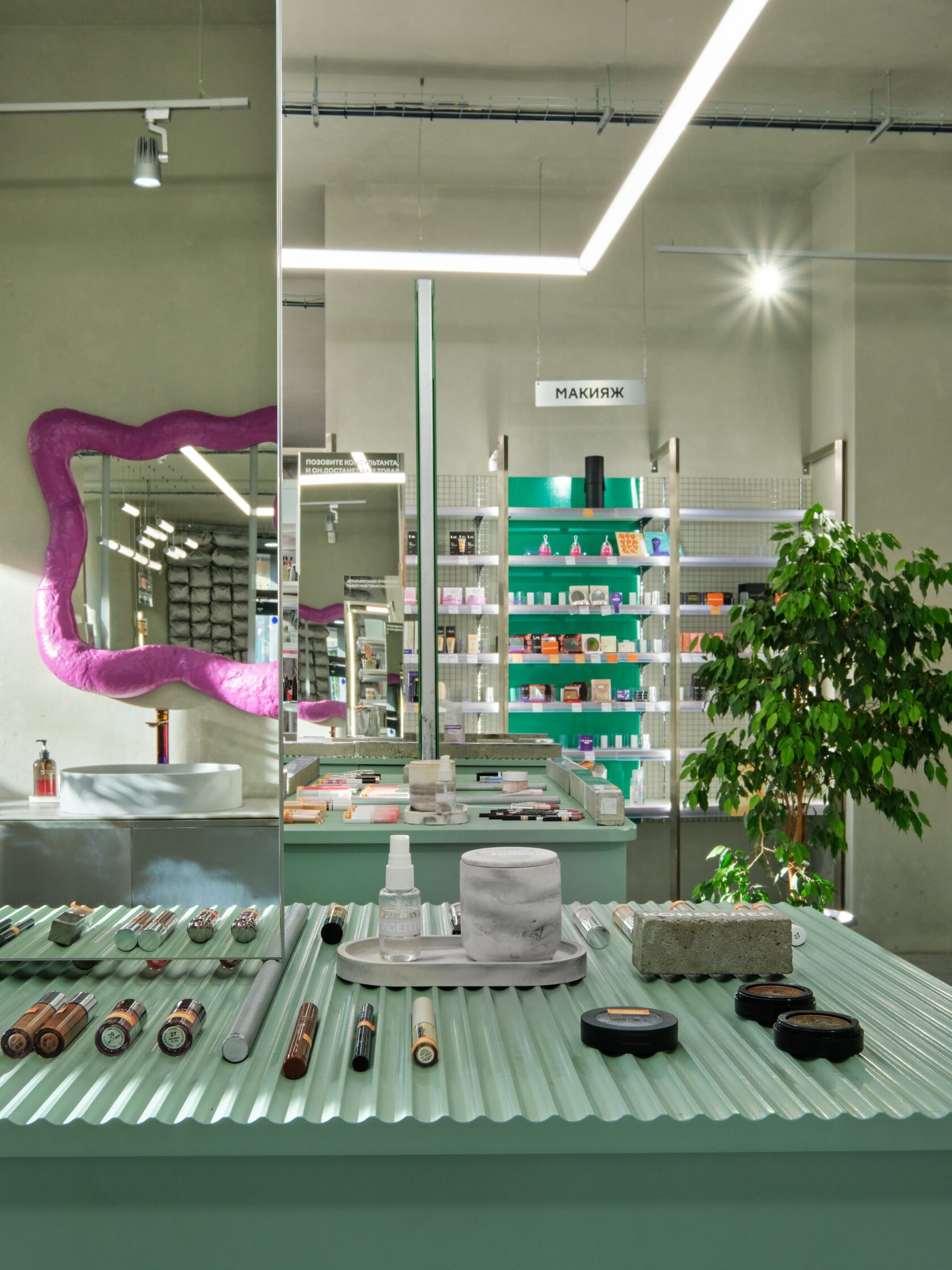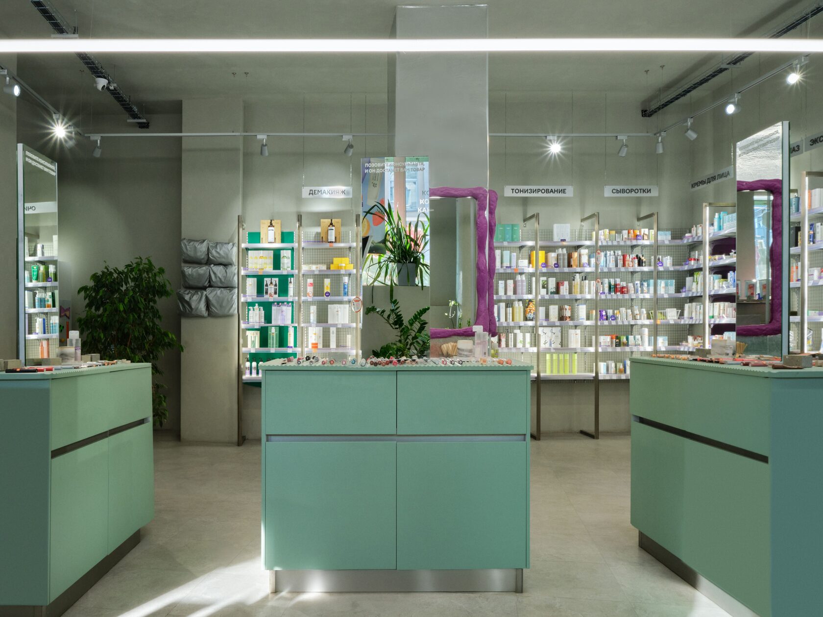 Итог: Результатом стал эргономичный и эстетически привлекательный ритейл-интерьер, который не только эффективно демонстрирует косметическую продукцию, но и предлагает полноценный, комфортный сценарий шопинга. Созданная «капсула» максимально удобна как для покупателей, так и для персонала, обеспечивая высокий уровень взаимодействия с брендом.