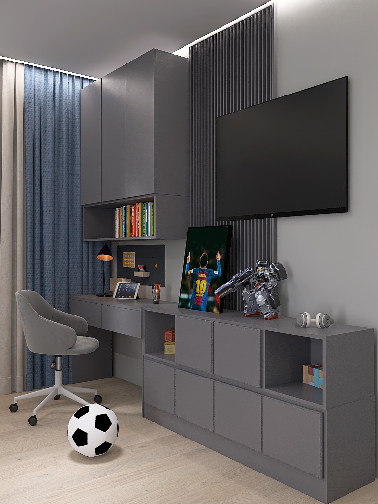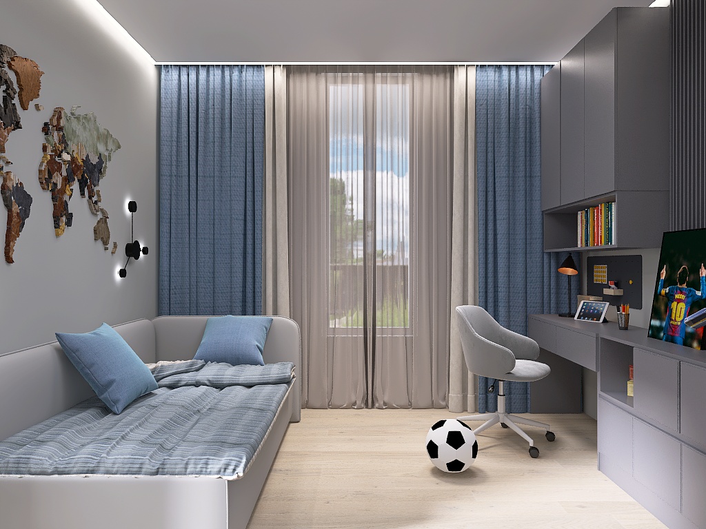 Проект посвящен созданию функционального и эстетически выверенного жилого пространства, адаптированного под нужды современной семьи с разновозрастными детьми. Дом спроектирован для двух молодых родителей, мальчика-дошкольника и девочки-подростка, предлагая индивидуальный комфорт для каждого.