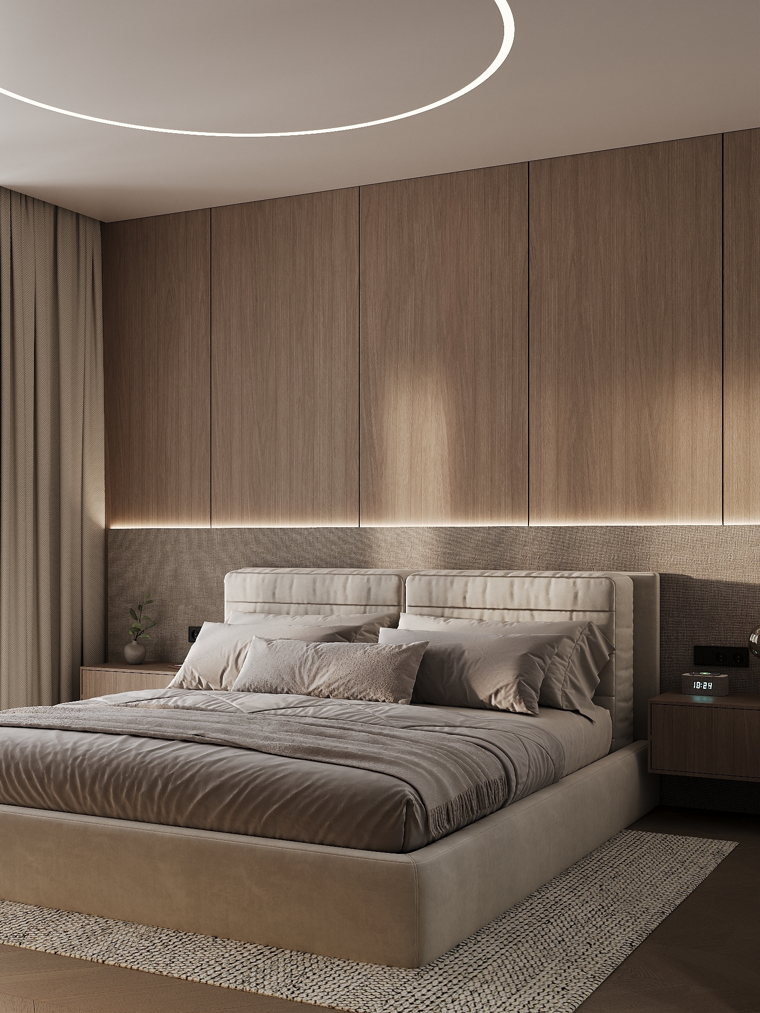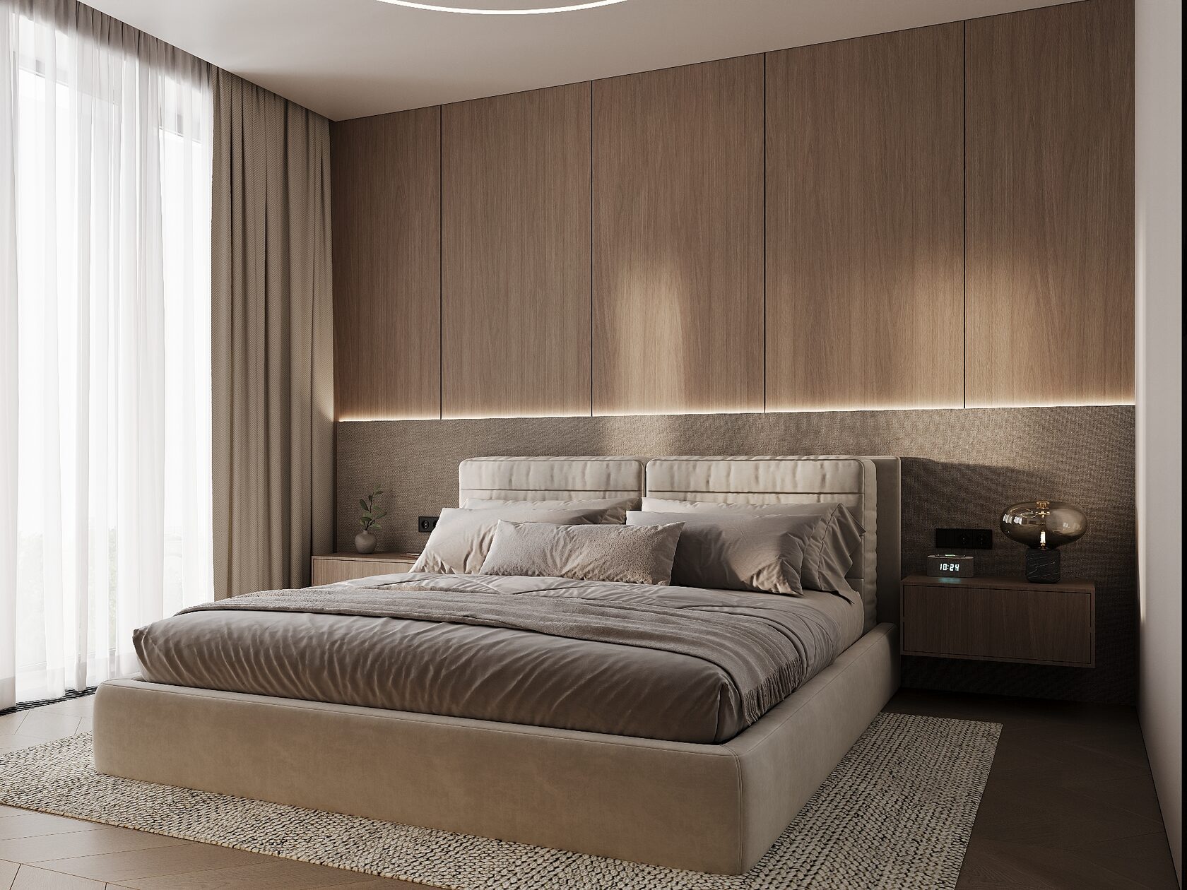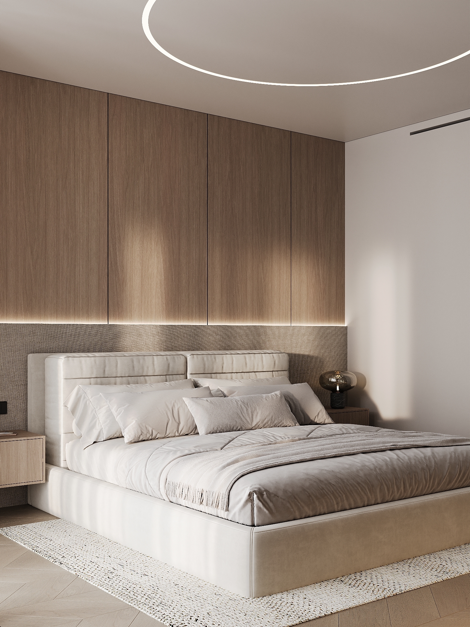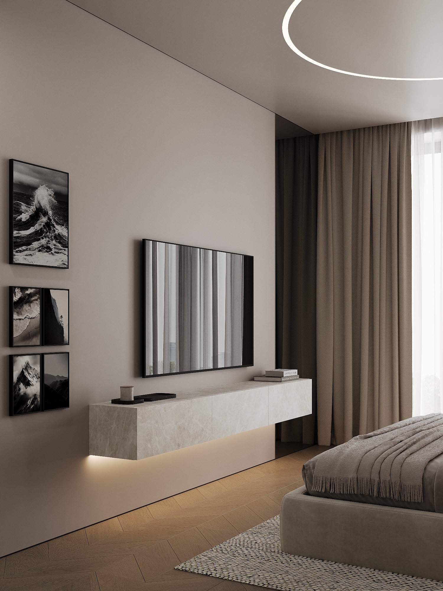 Итог: Результатом стало элегантное и высокофункциональное решение, которое эффективно решает проблему зонирования в компактной спальной зоне. Оно обеспечивает необходимую приватность, сохраняет целостность интерьера, минимизирует количество дверей и предлагает беспрецедентную гибкость в использовании пространства, воплощая принципы современного и продуманного дизайна.