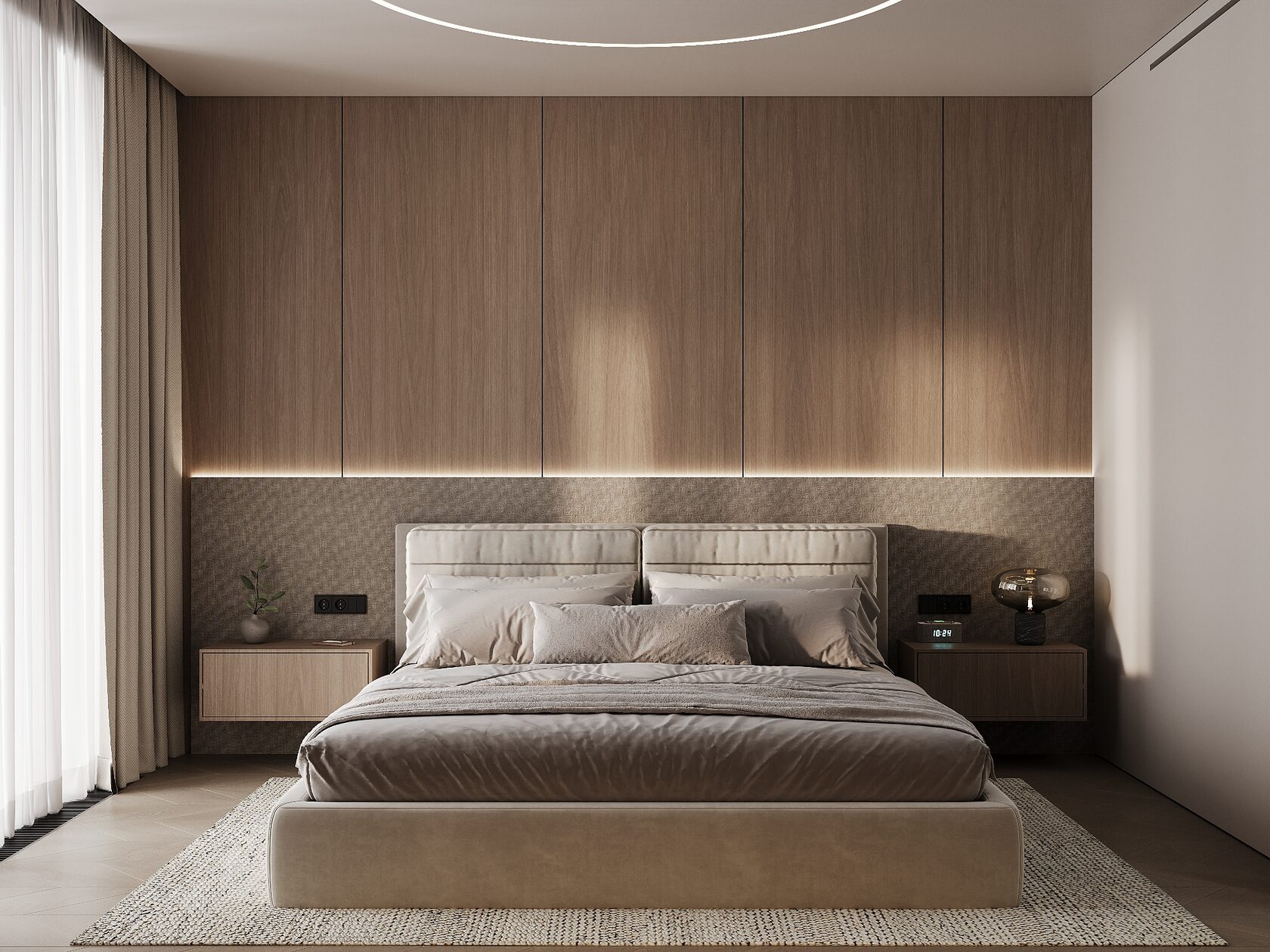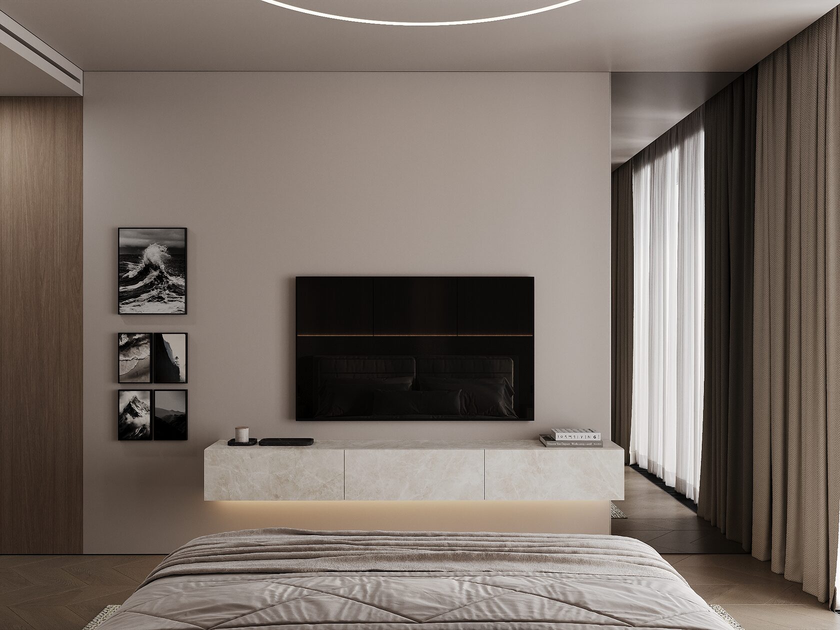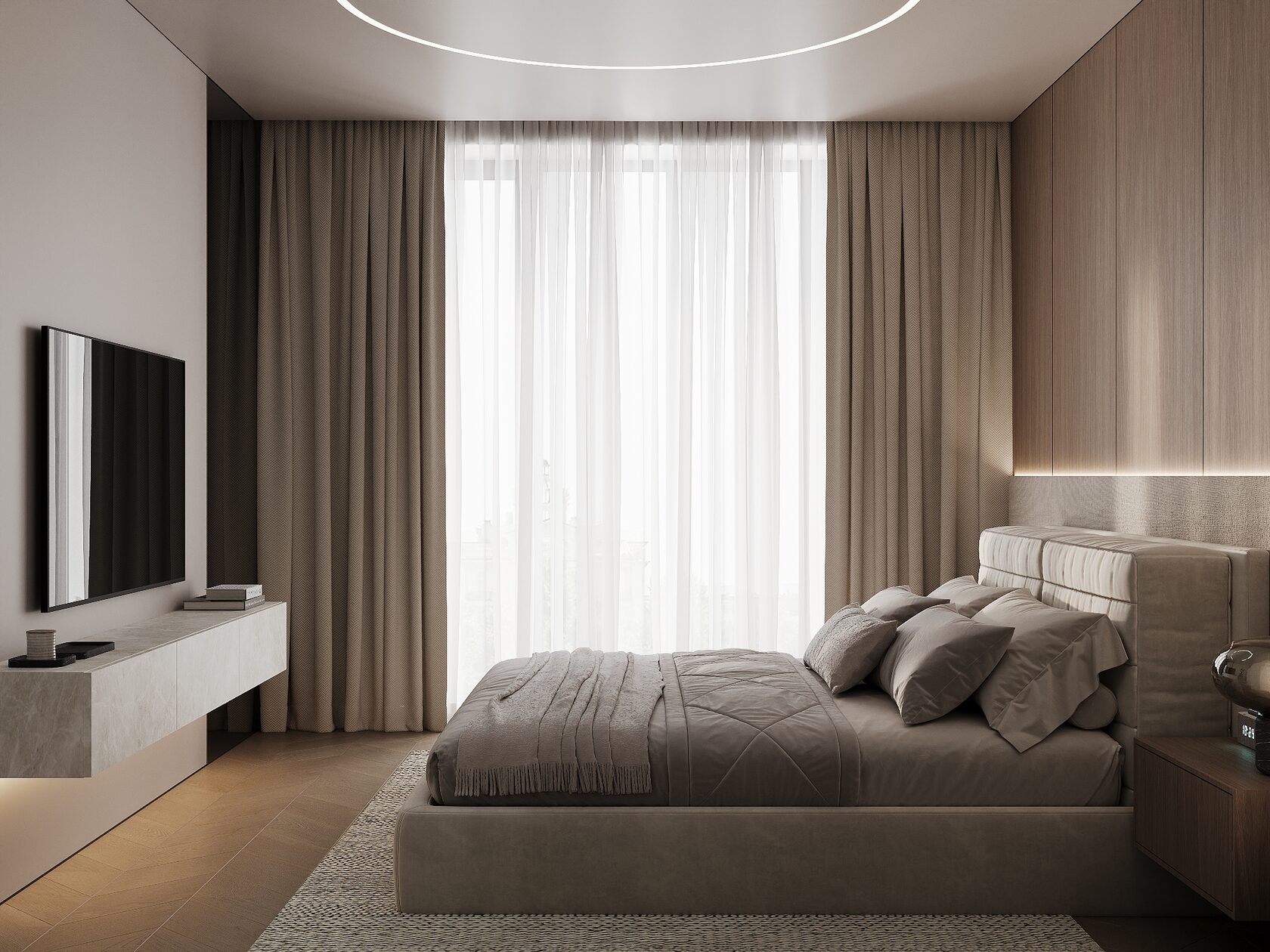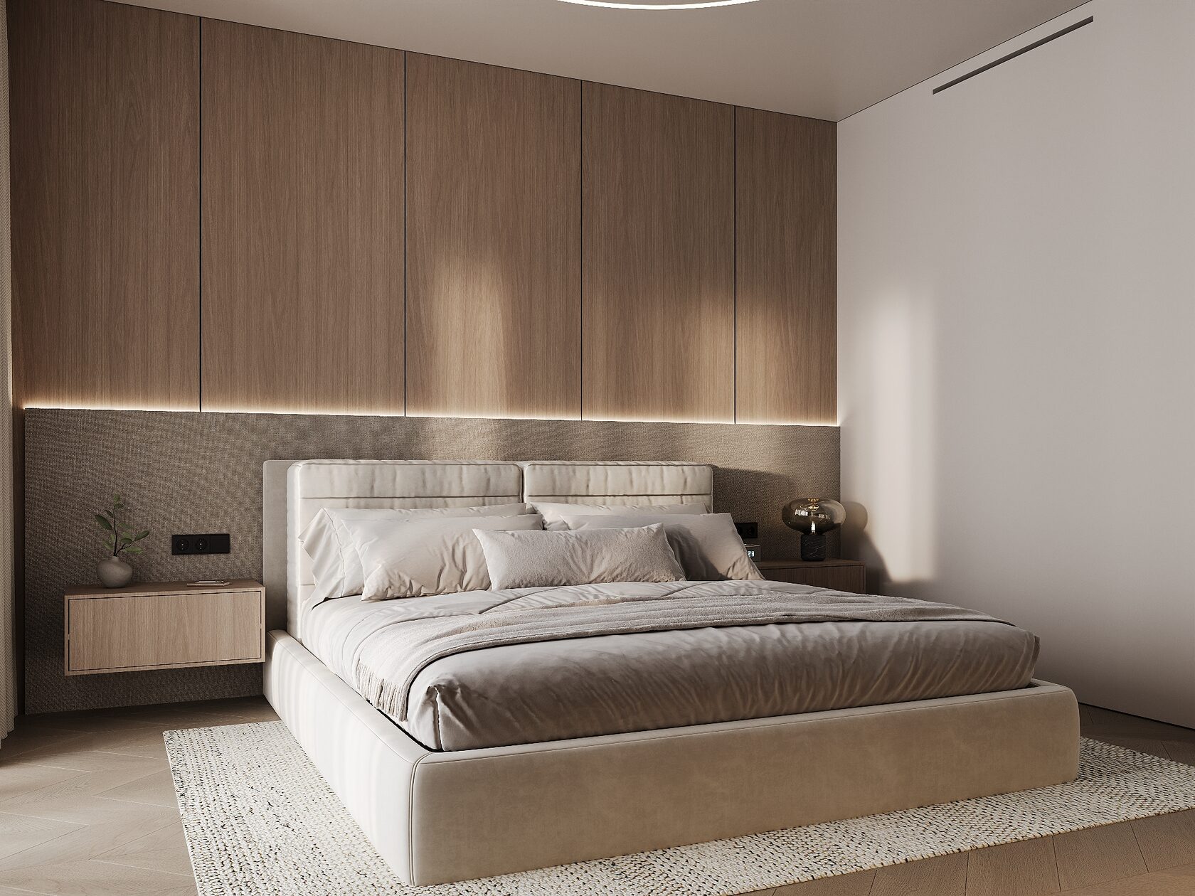 Итог: Результатом стало элегантное и высокофункциональное решение, которое эффективно решает проблему зонирования в компактной спальной зоне. Оно обеспечивает необходимую приватность, сохраняет целостность интерьера, минимизирует количество дверей и предлагает беспрецедентную гибкость в использовании пространства, воплощая принципы современного и продуманного дизайна.