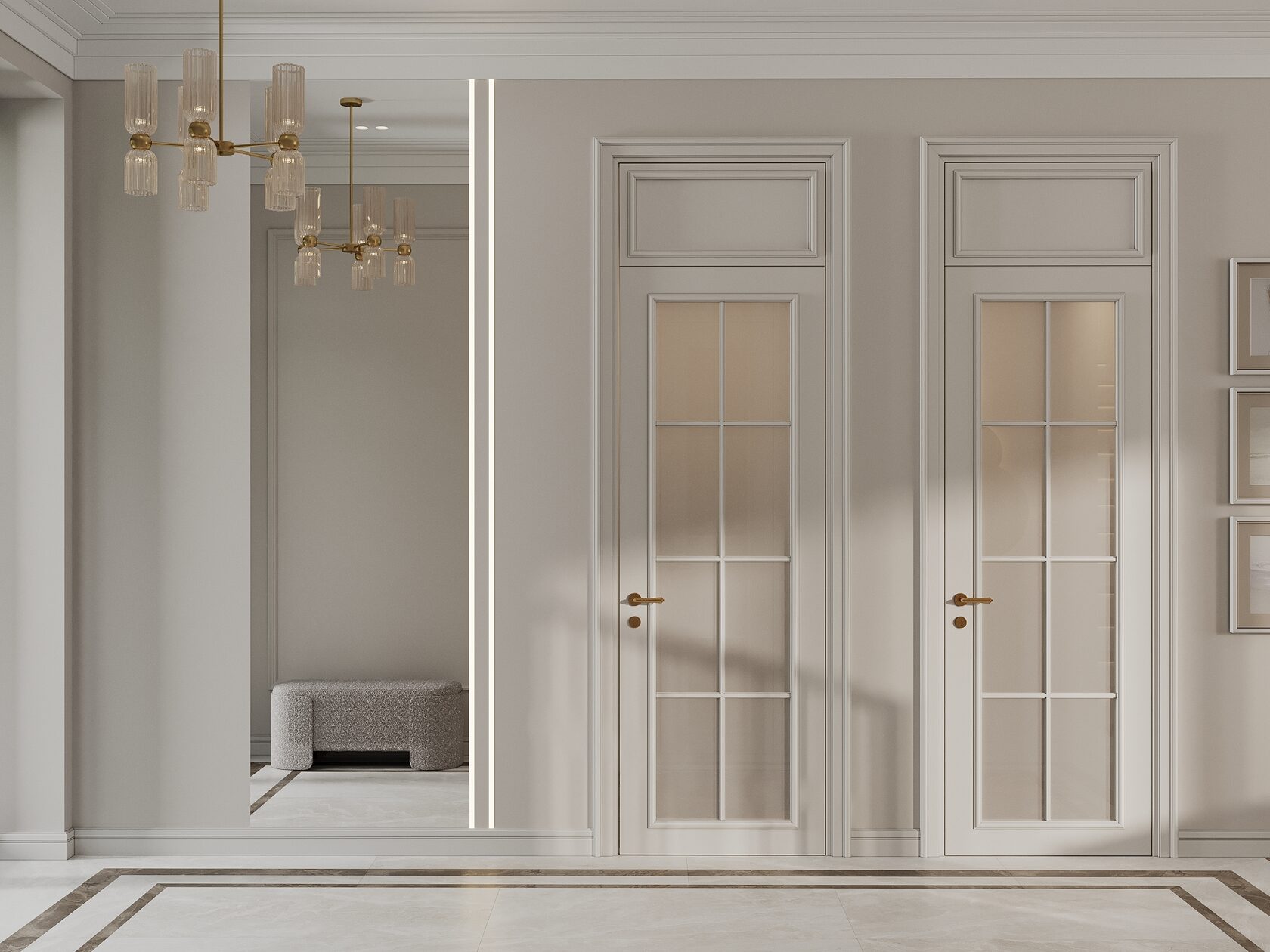 Итог: Результатом стало создание интерьера, демонстрирующего безупречный баланс между эстетикой и практичностью. Использование раздвижных дверей из рифленого стекла не только решило задачи зонирования и оптимизации, но и превратило функциональный элемент в ключевой архитектурный акцент. Проект успешно реализовал идею создания светлого, просторного и комфортного пространства, отвечающего высоким стандартам современного дизайна и потребностям активной семейной жизни, с учетом легкости в эксплуатации и долговечности.