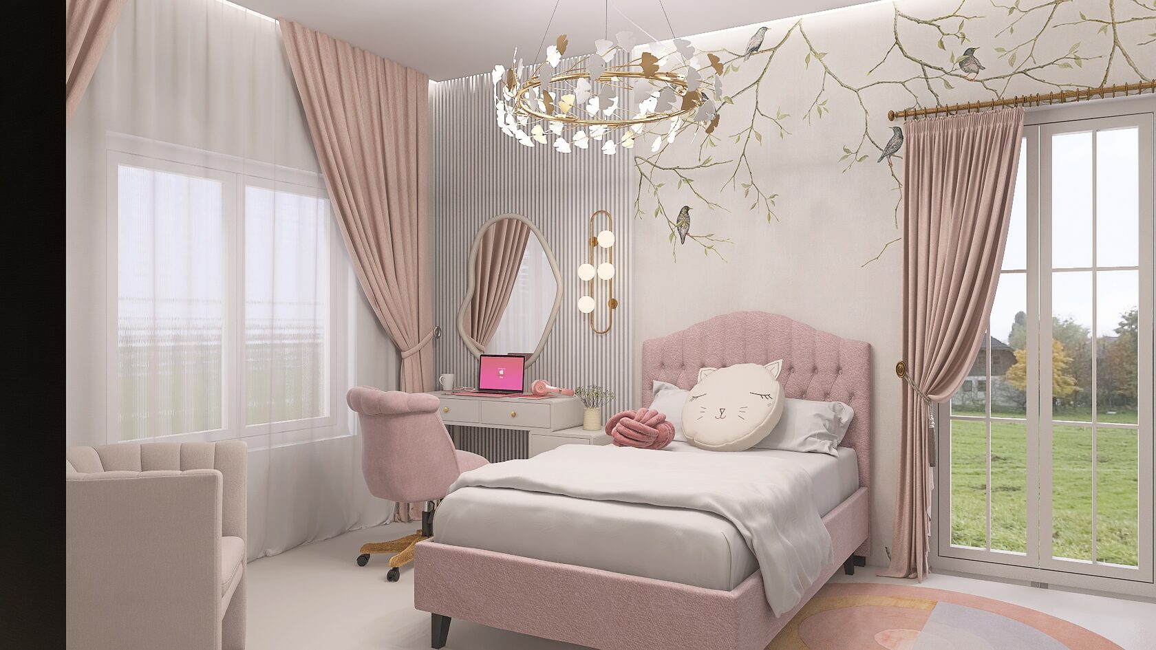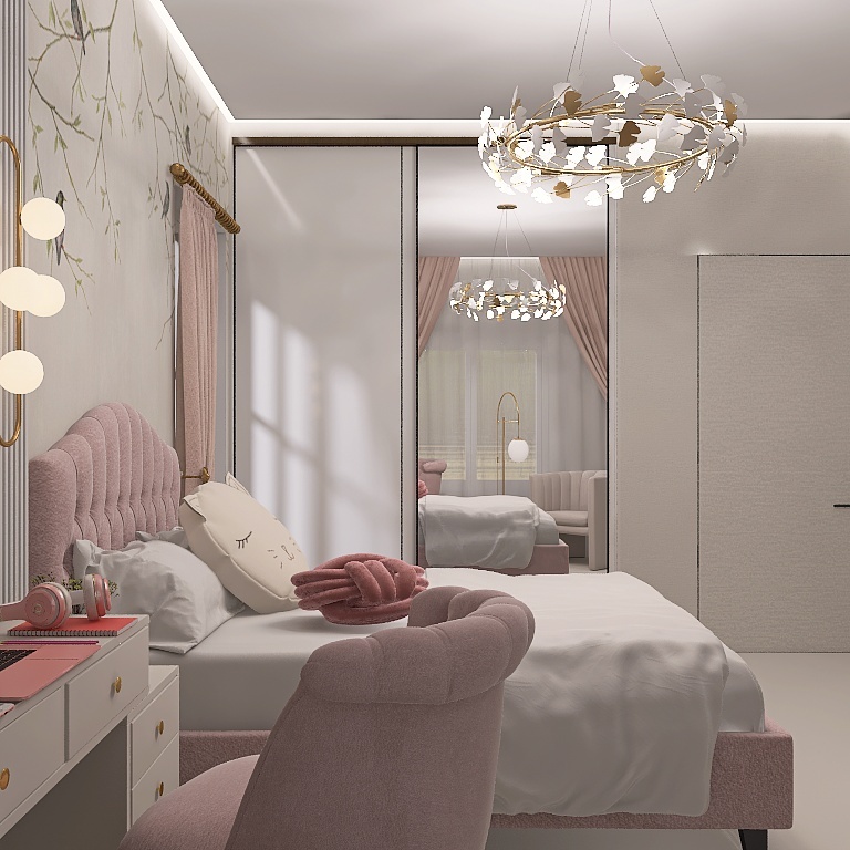 Итог В результате получился интерьер, где природа и классика обрели современную форму. Сложная цветовая палитра — глубокие винные акценты, изумруд, пудровый розовый и беж — дополнена богатой текстильной фактурой. Пространство излучает мягкую роскошь, оно наполнено светом, глубиной цвета и художественными деталями. Это интерьер-сказка — комфортный, утончённый и живой.